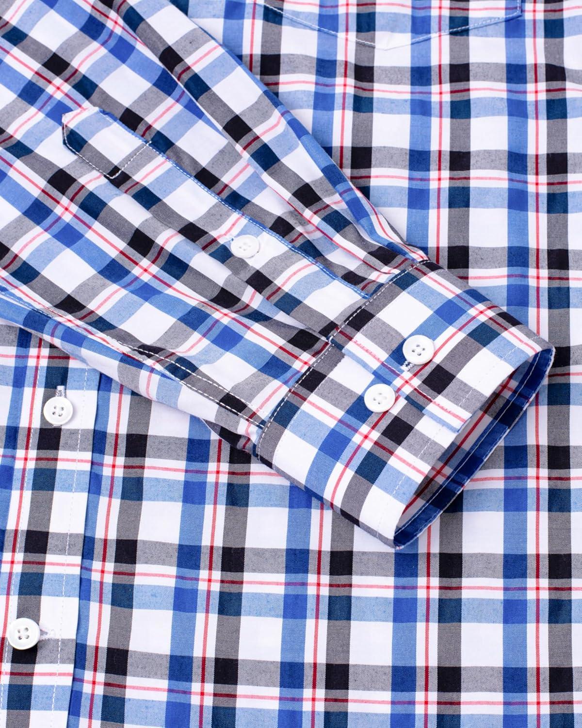 Alimens & Gentle Men’s Plaid Button Down Shirts Cotton Long Sleeve Dress Shirts Regular Fit Gingham Shirts(Blue Black Check)