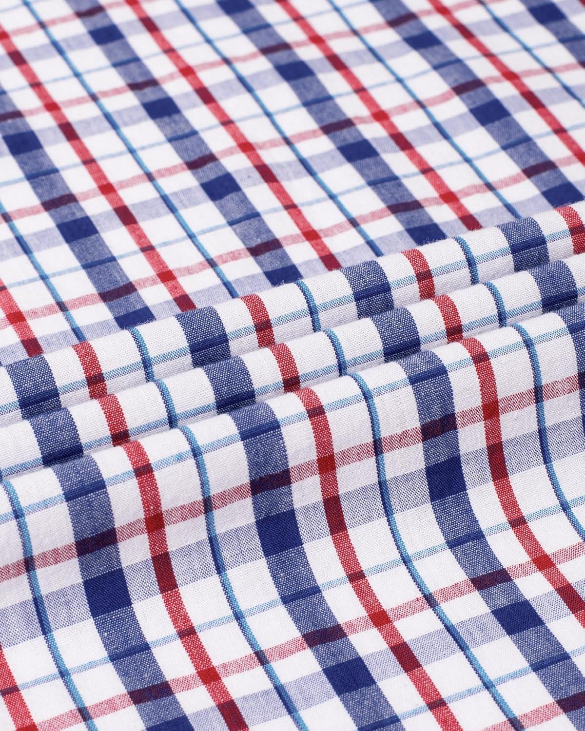 Alimens & Gentle Men’s Plaid Button Down Shirts Cotton Long Sleeve Dress Shirts Regular Fit Gingham Shirts(Navy Red Plaid 2)