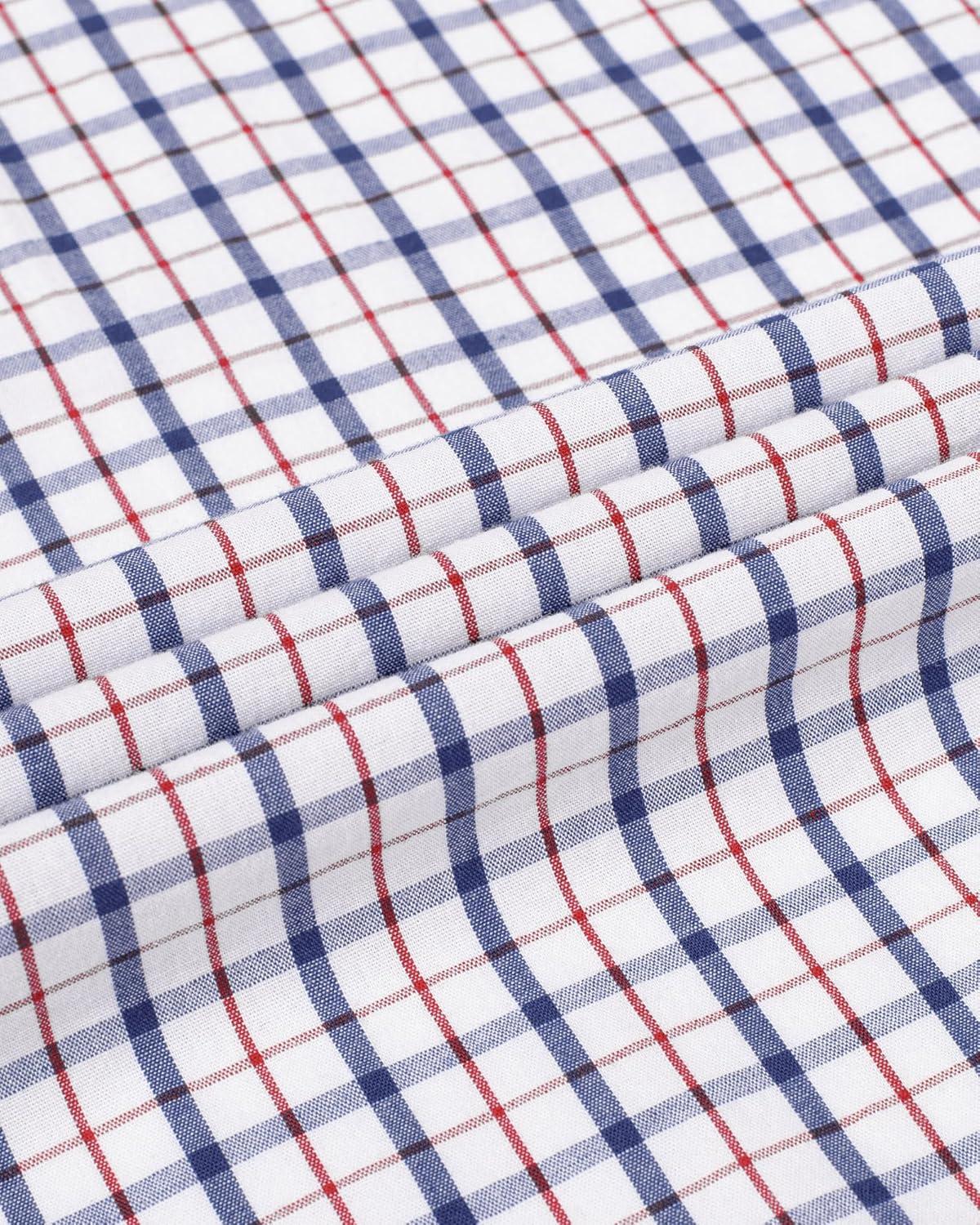 Alimens & Gentle Men’s Plaid Button Down Shirts Cotton Long Sleeve Dress Shirts Regular Fit Gingham Shirts(Navy Red Small Plaid)