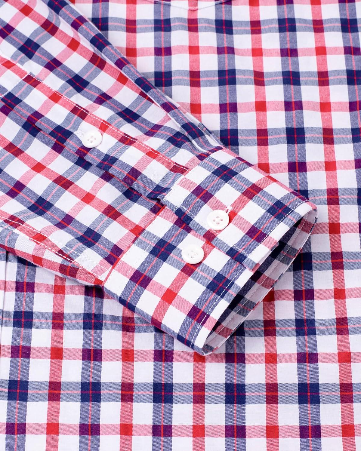 Alimens & Gentle Men’s Plaid Button Down Shirts Cotton Long Sleeve Dress Shirts Regular Fit Gingham Shirts(Red Check)