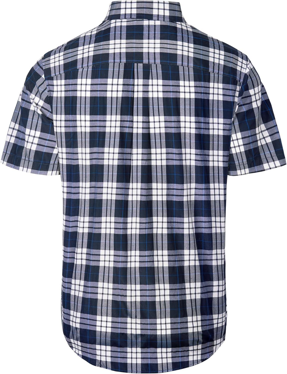 Alimens & Gentle Mens Plaid Short Sleeve Button Down Shirts Cotton Regular Fit Casual Gingham Shirts(Navy Blue Plaid)