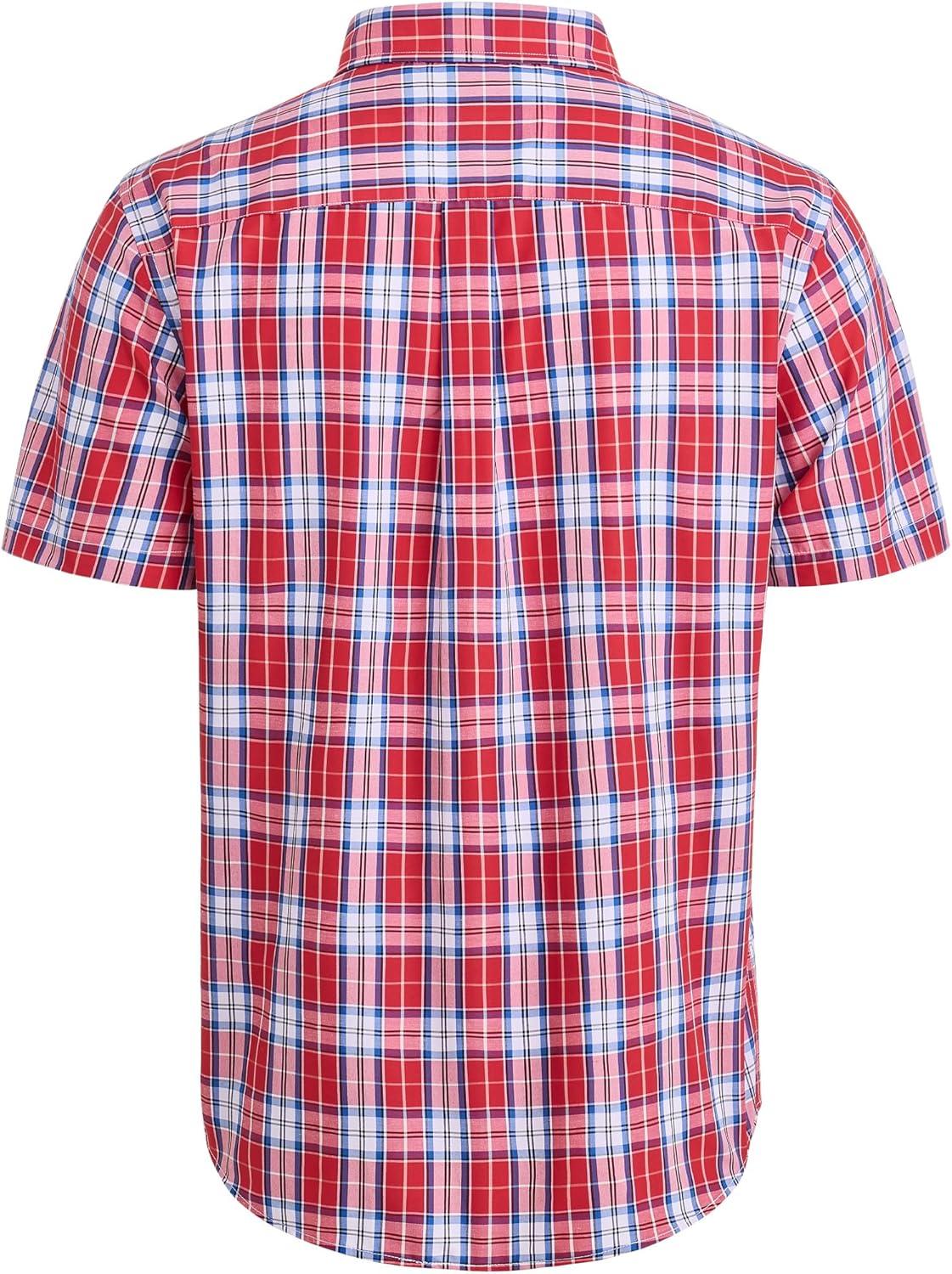 Alimens & Gentle Mens Plaid Short Sleeve Button Down Shirts Cotton Regular Fit Casual Gingham Shirts(Red Blue Plaid)
