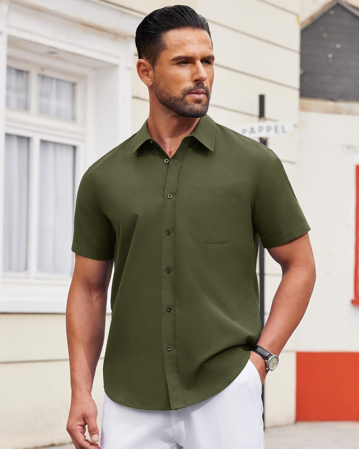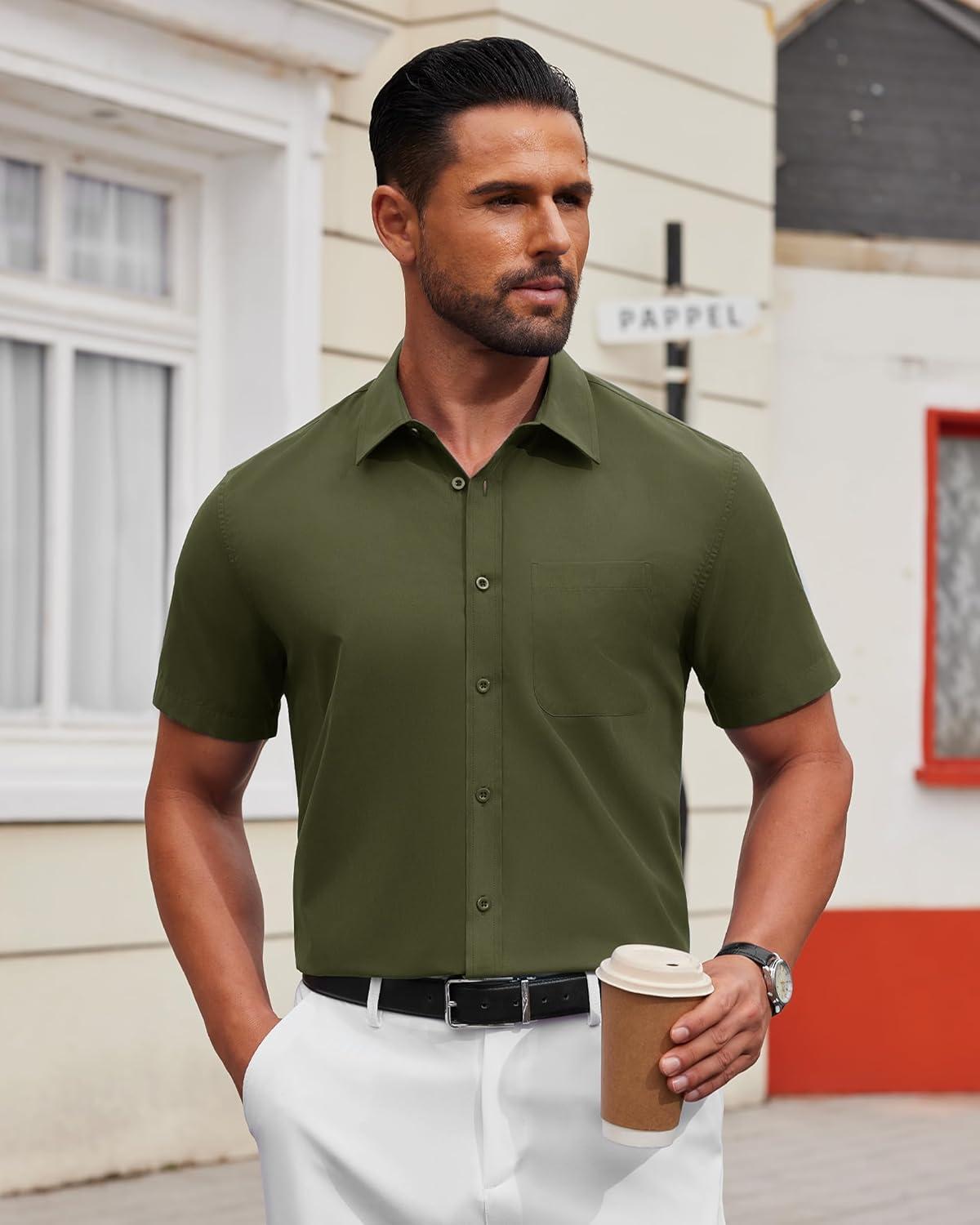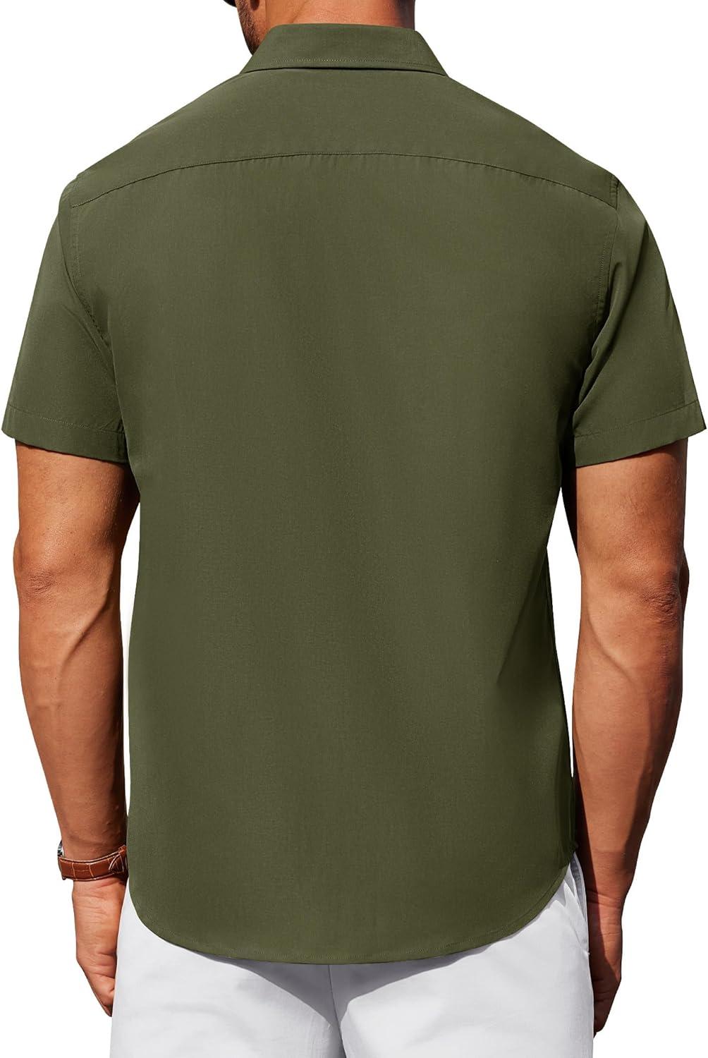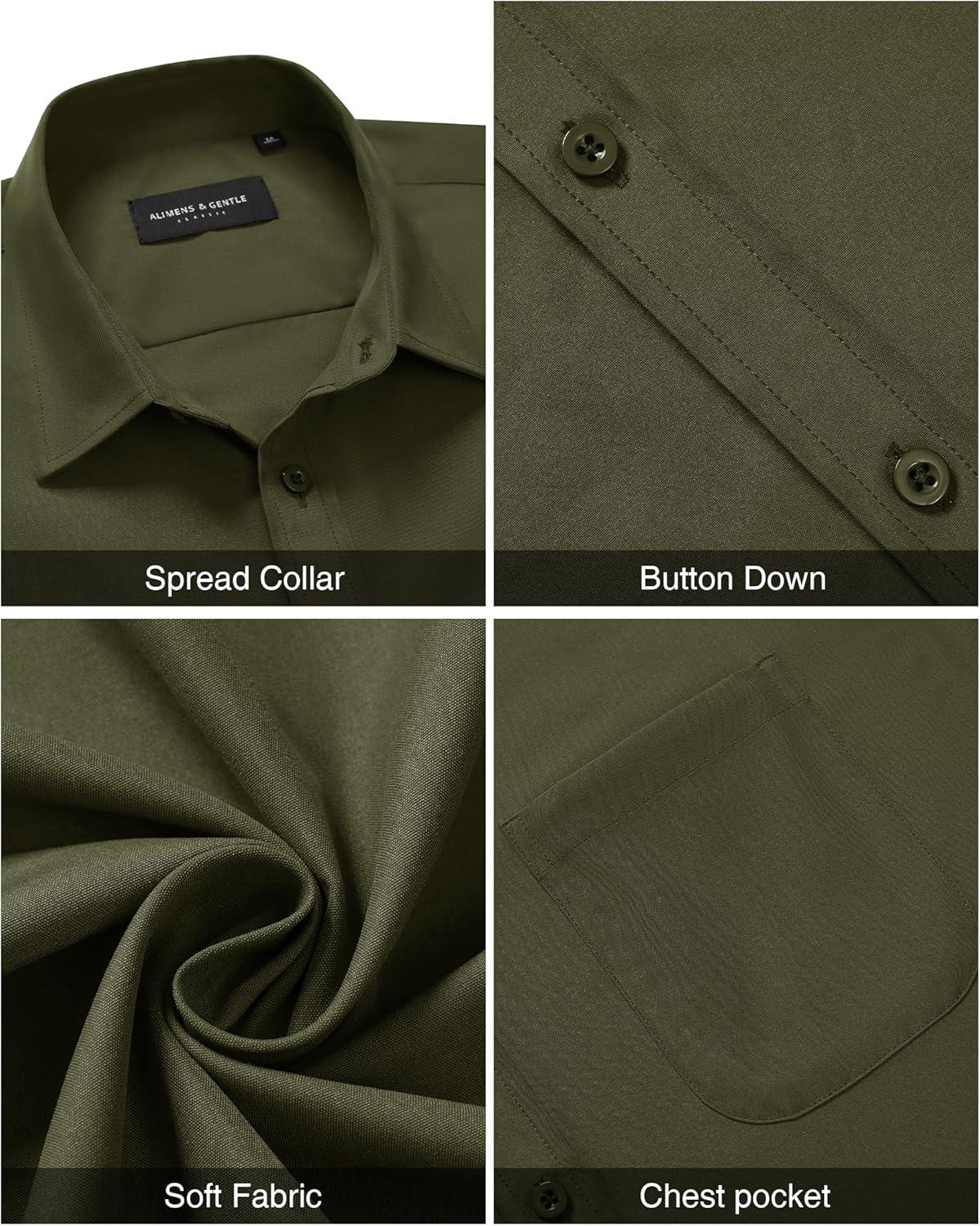 Alimens & Gentle Mens Short Sleeve Dress Shirt Wrinkle Free Solid Casual Button Down Shirts for Summer Business Wedding(Army Green)