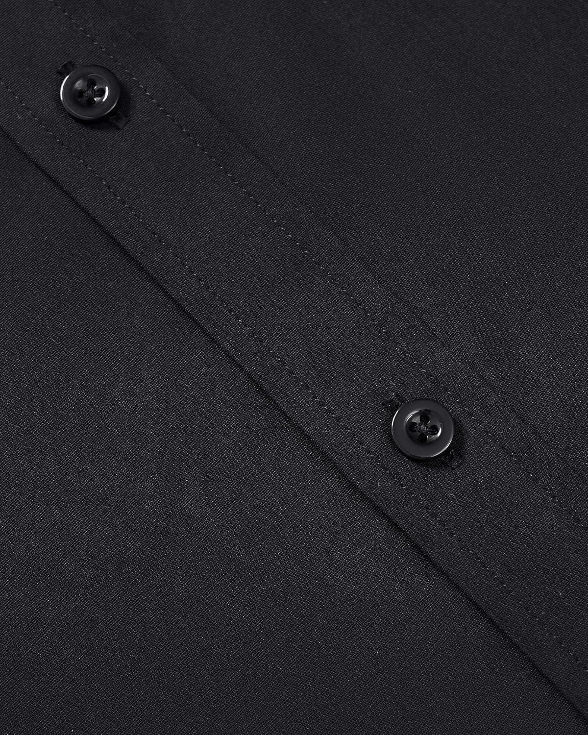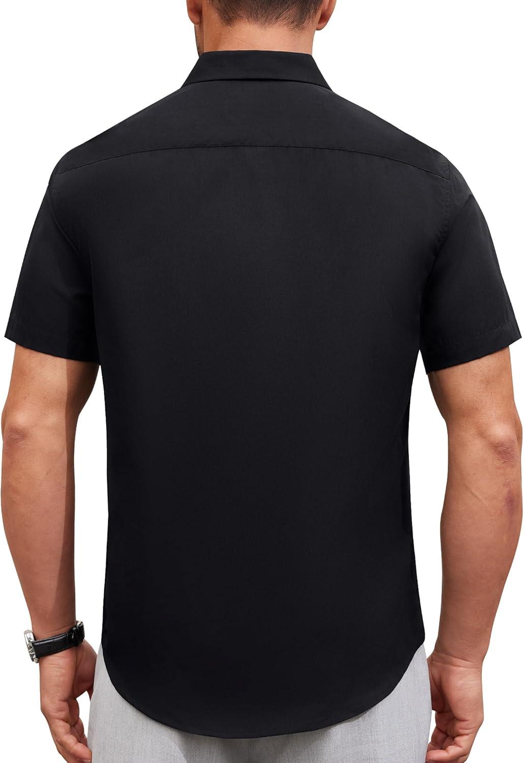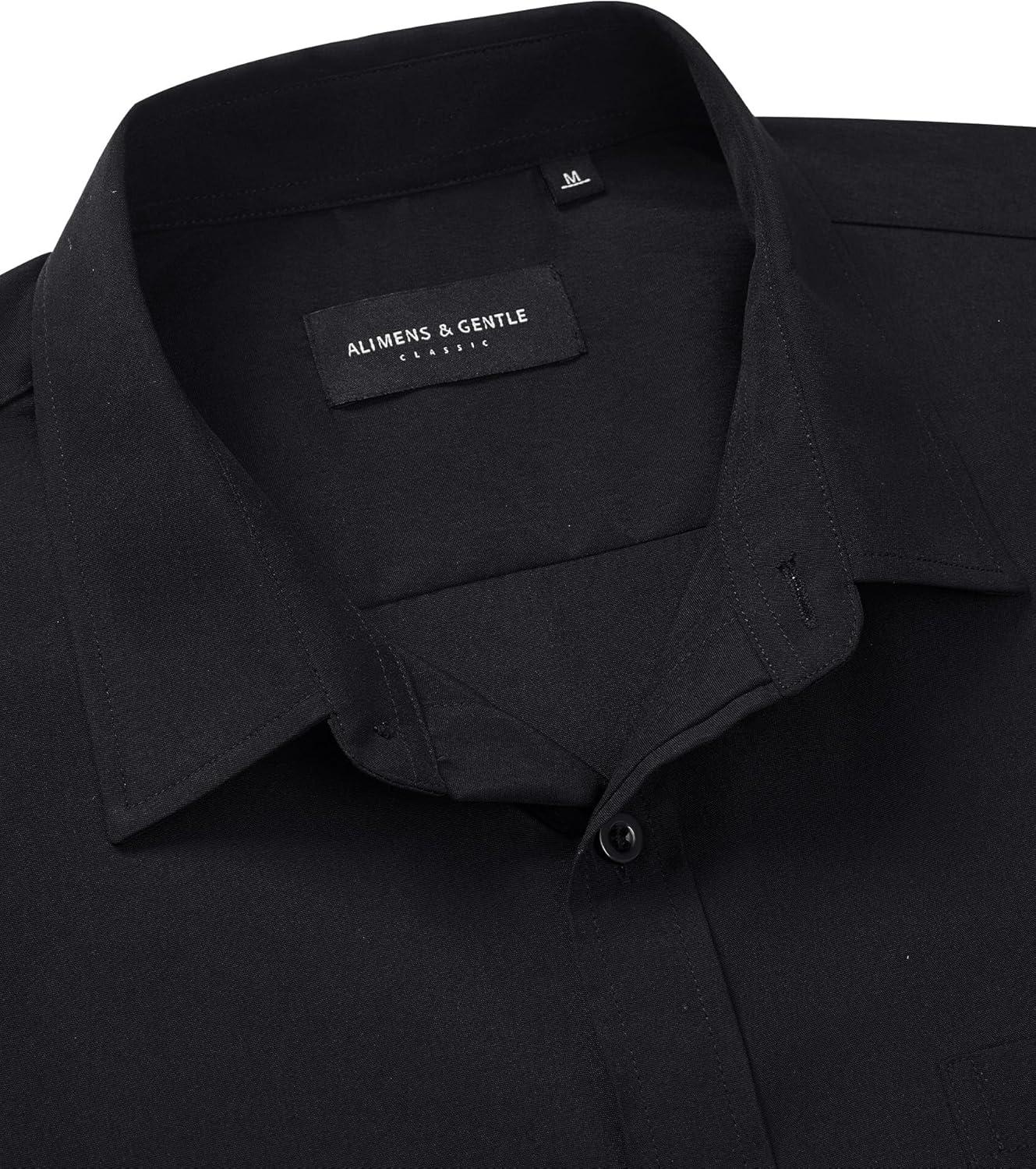 Alimens & Gentle Mens Short Sleeve Dress Shirt Wrinkle Free Solid Casual Button Down Shirts for Summer Business Wedding(Black)