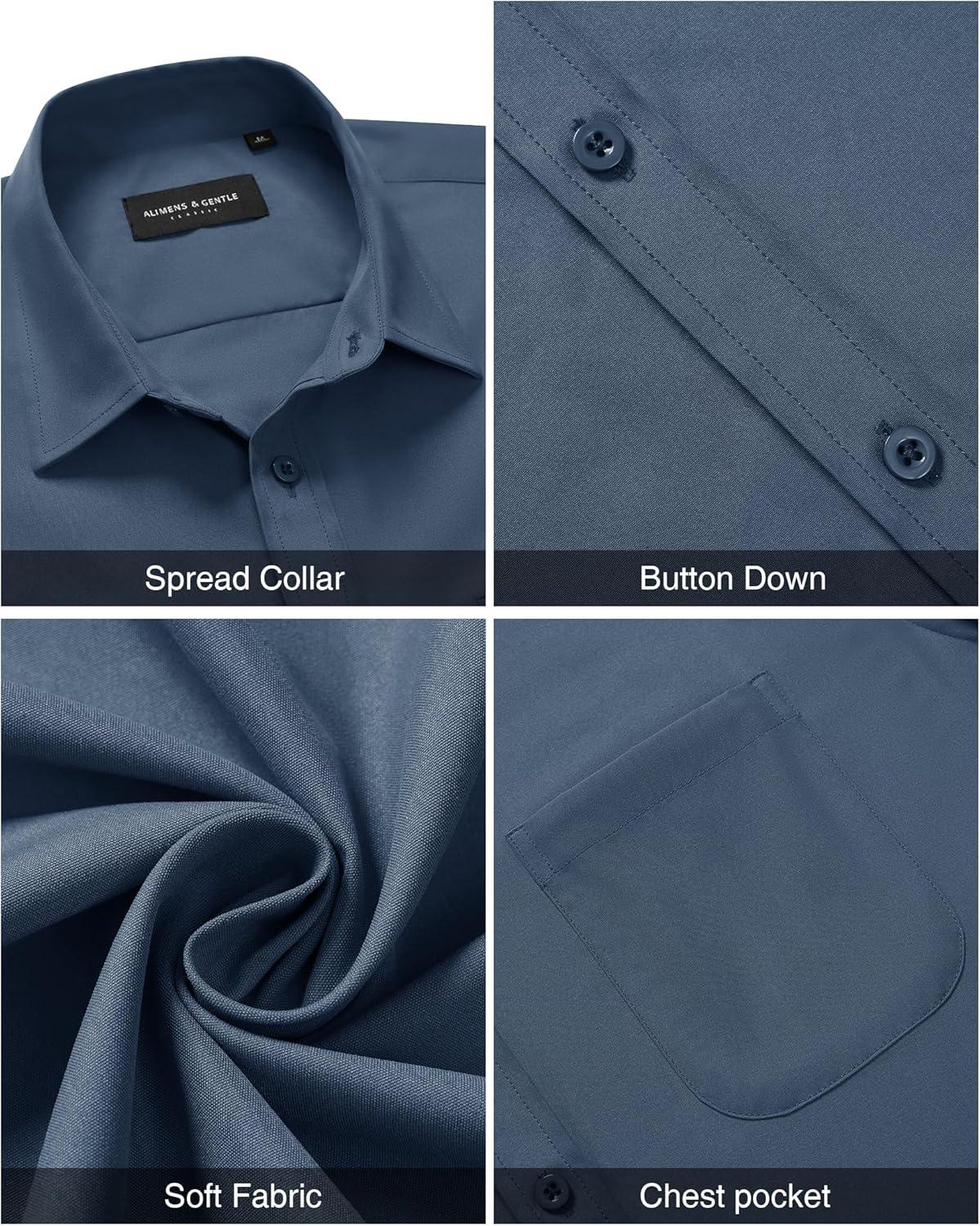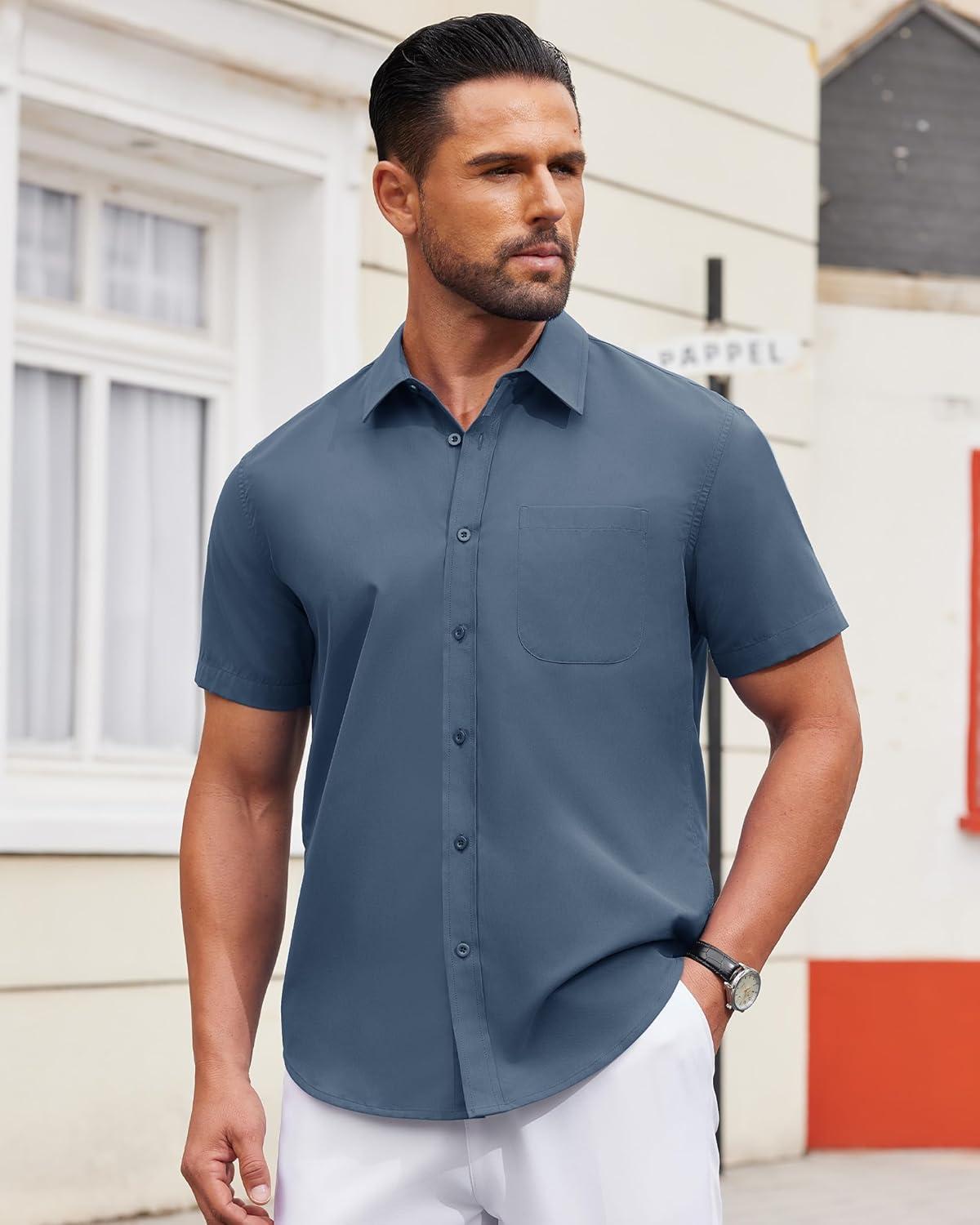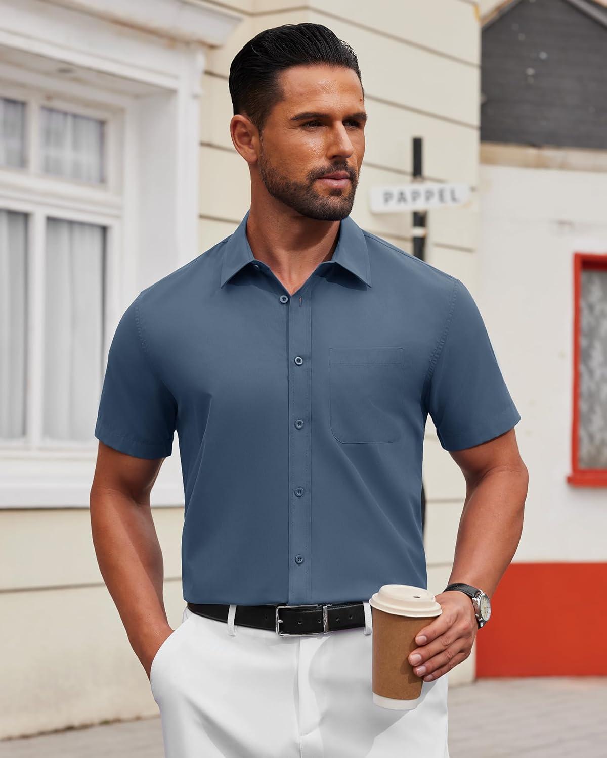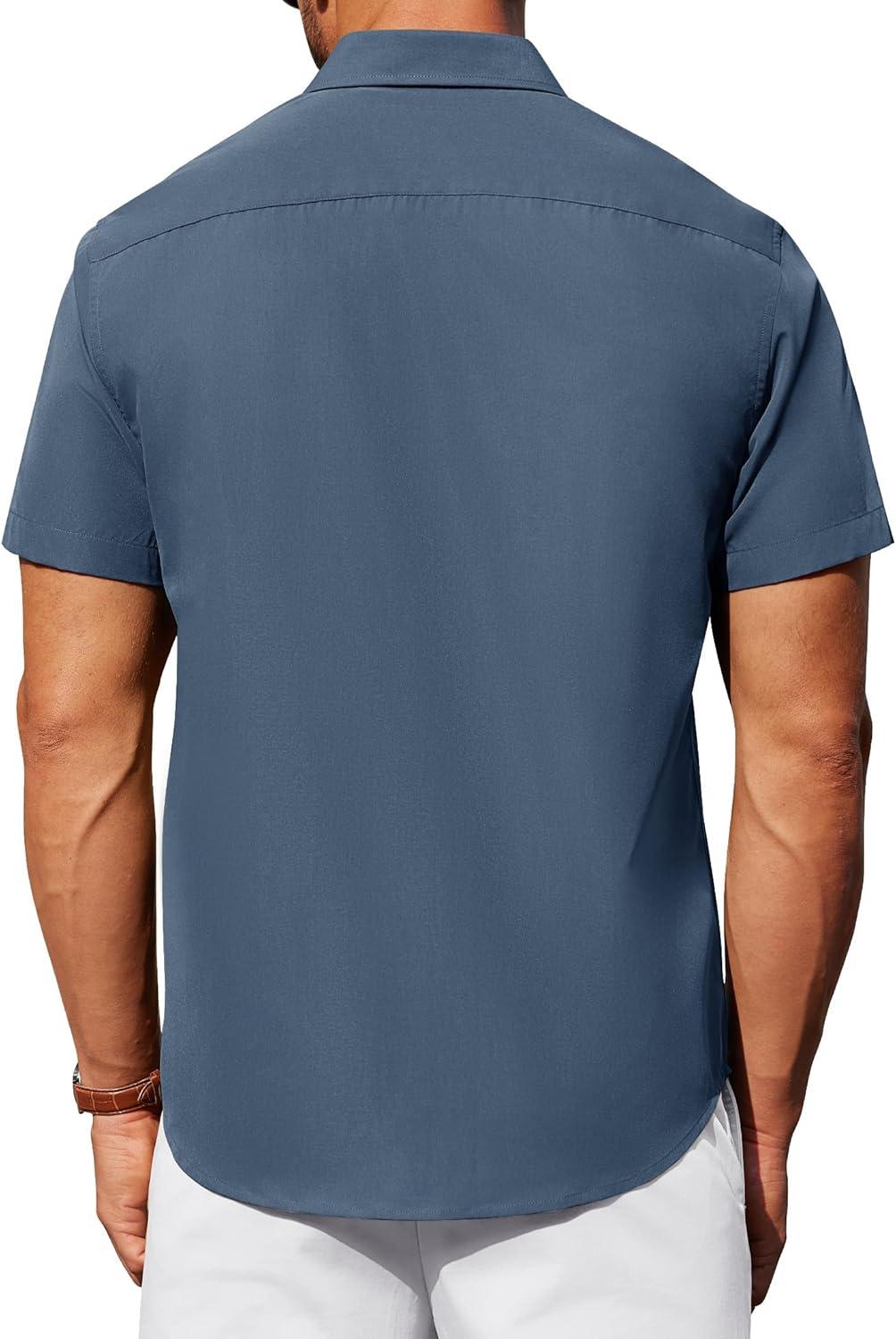 Alimens & Gentle Mens Short Sleeve Dress Shirt Wrinkle Free Solid Casual Button Down Shirts for Summer Business Wedding(Captain Blue)