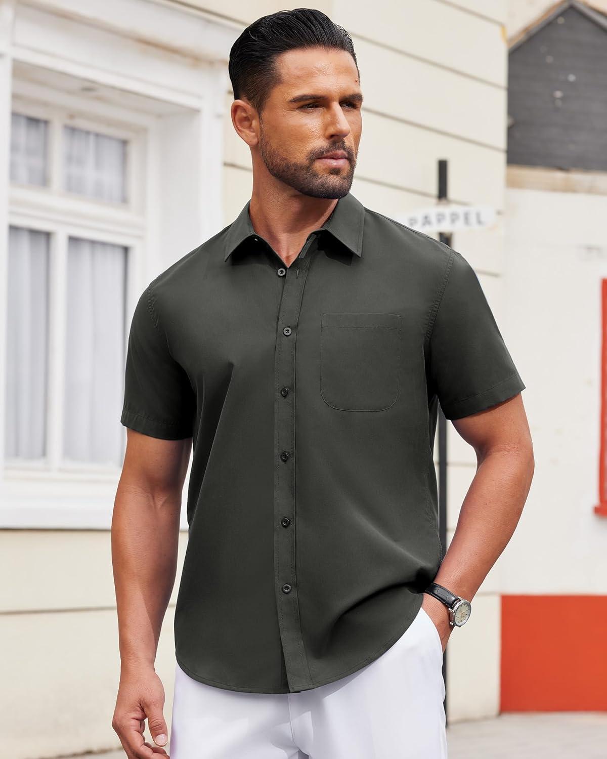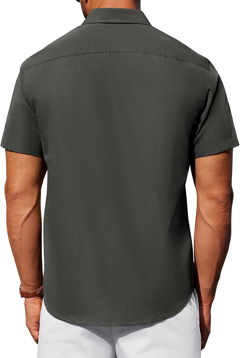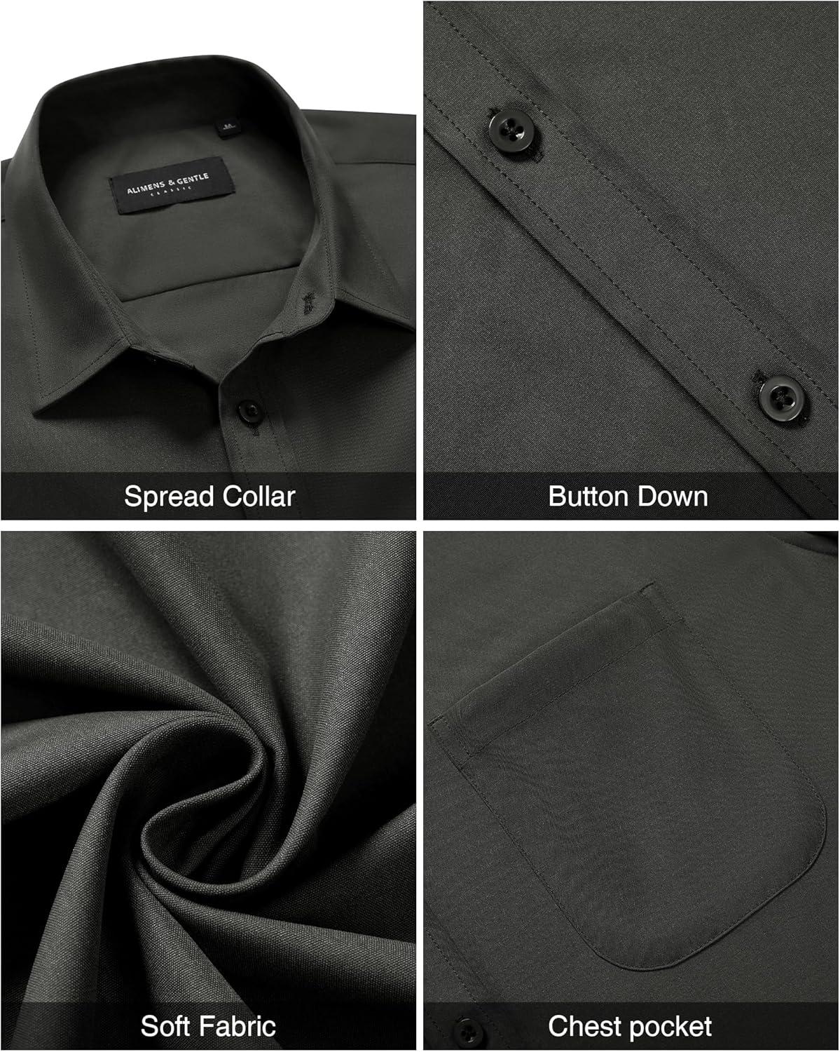 Alimens & Gentle Mens Short Sleeve Dress Shirt Wrinkle Free Solid Casual Button Down Shirts for Summer Business Wedding(Dark Grey)