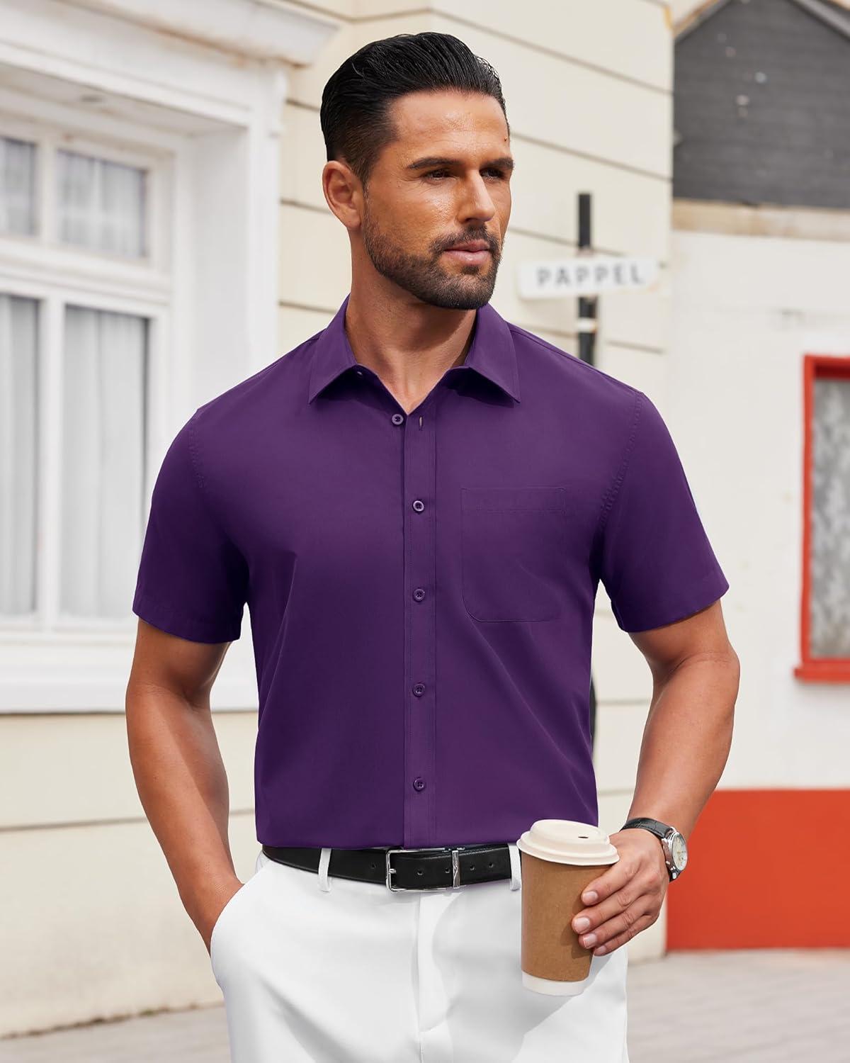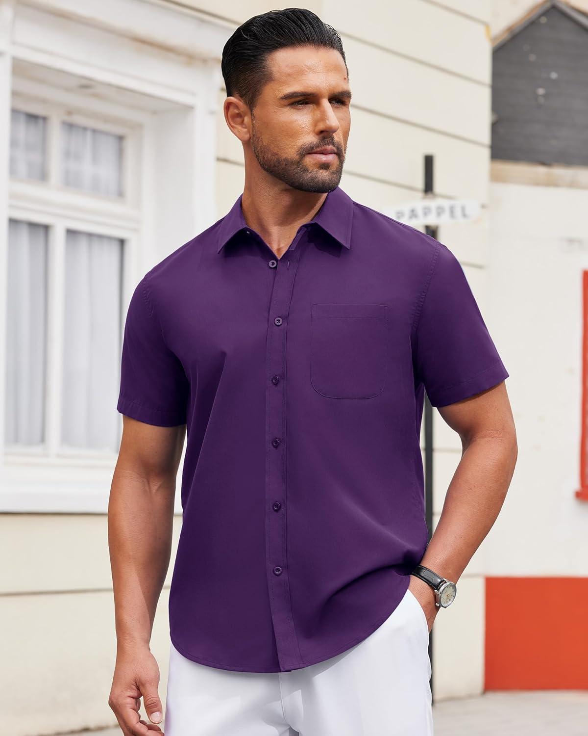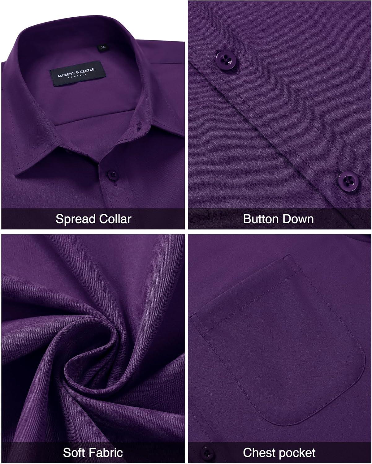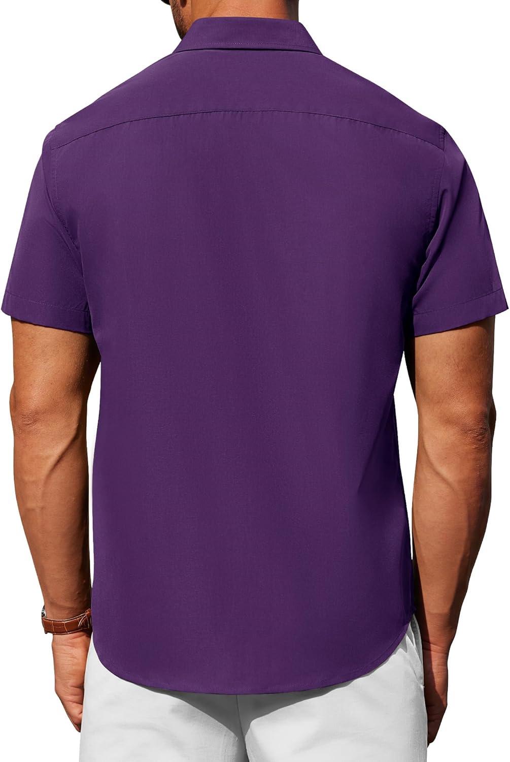 Alimens & Gentle Mens Short Sleeve Dress Shirt Wrinkle Free Solid Casual Button Down Shirts for Summer Business Wedding(Dark Purple)