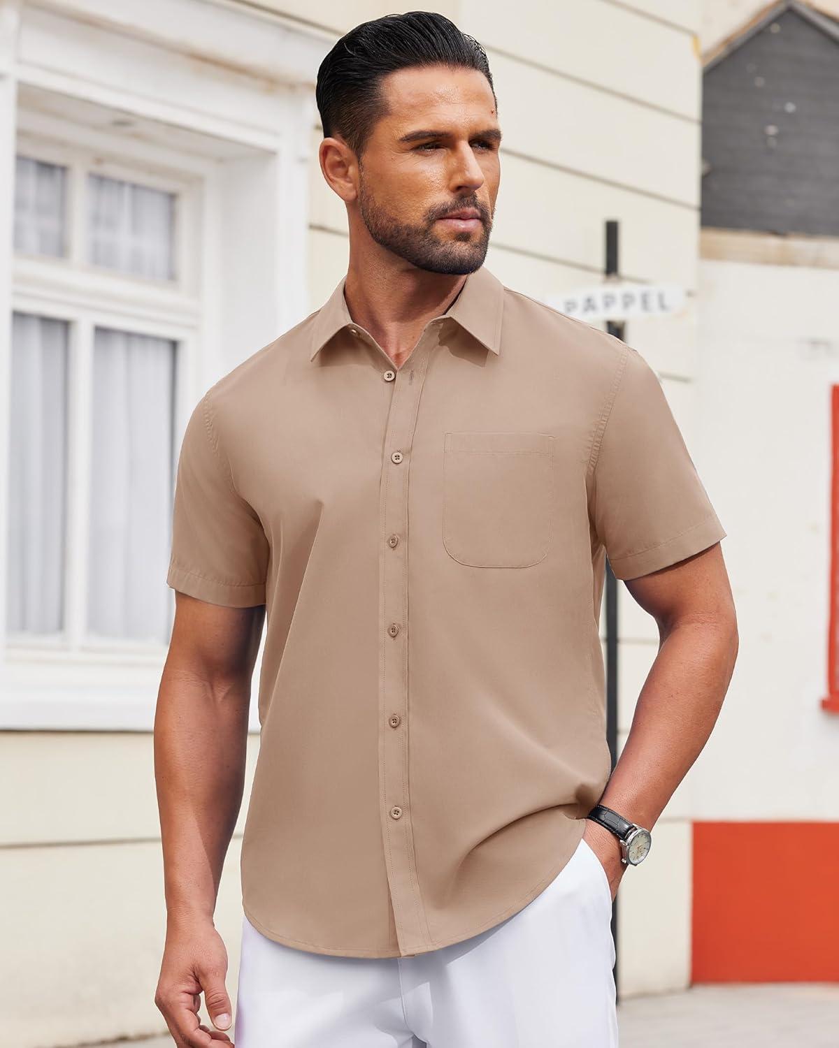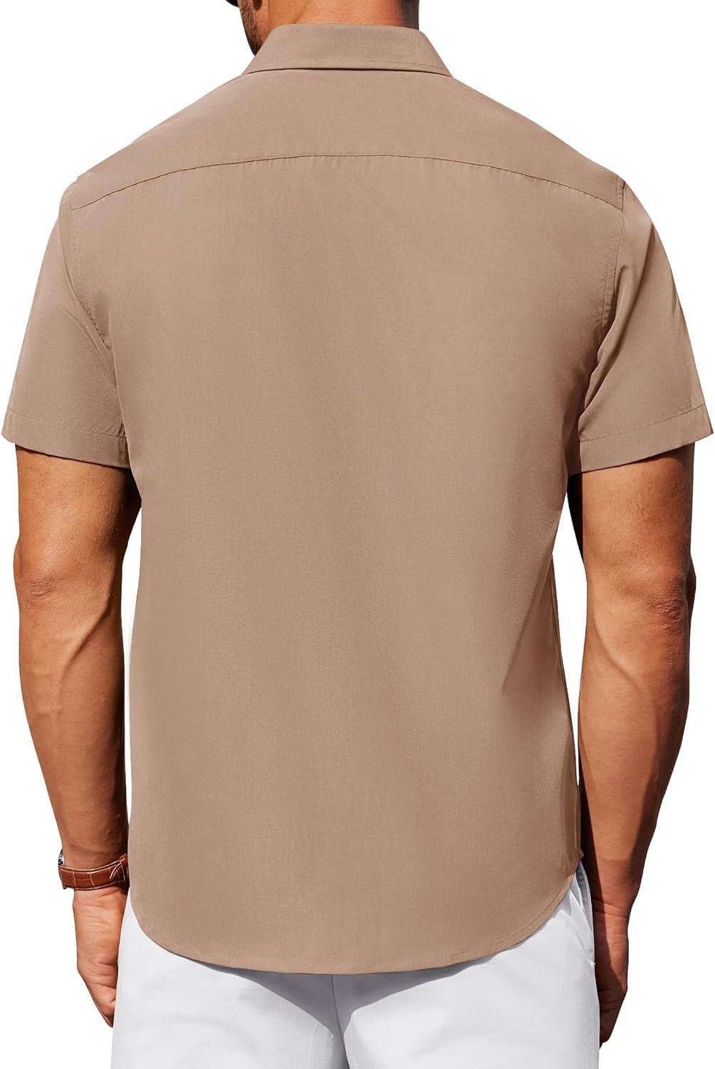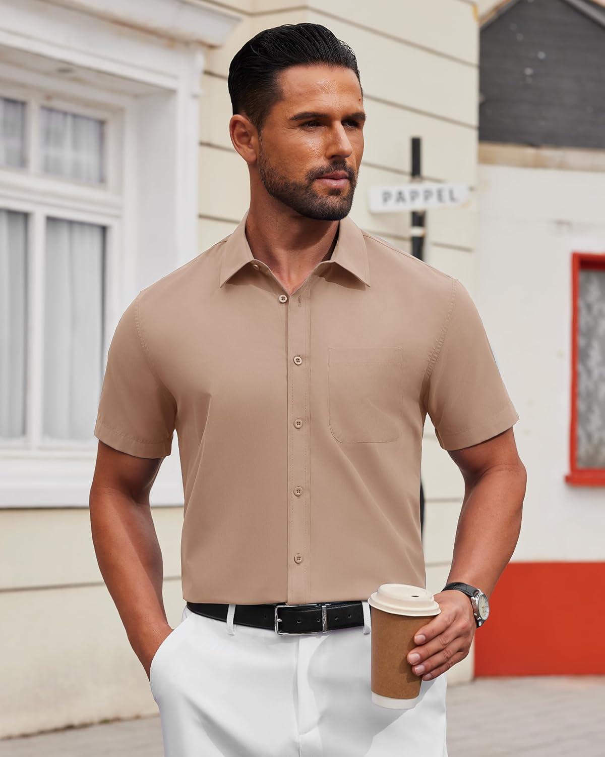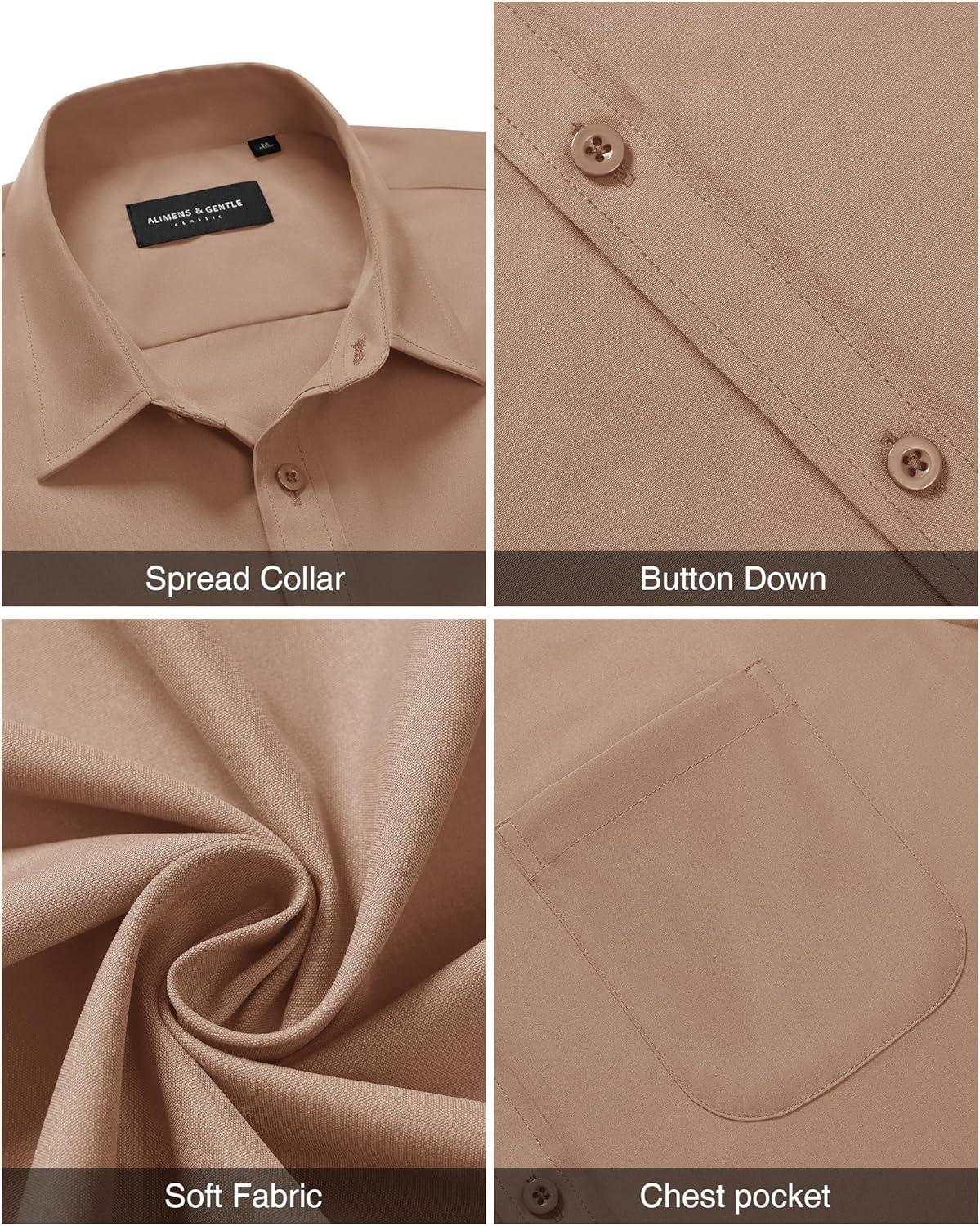 Alimens & Gentle Mens Short Sleeve Dress Shirt Wrinkle Free Solid Casual Button Down Shirts for Summer Business Wedding(Khaki)