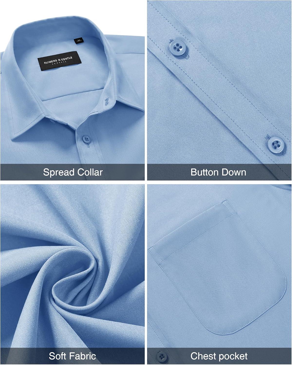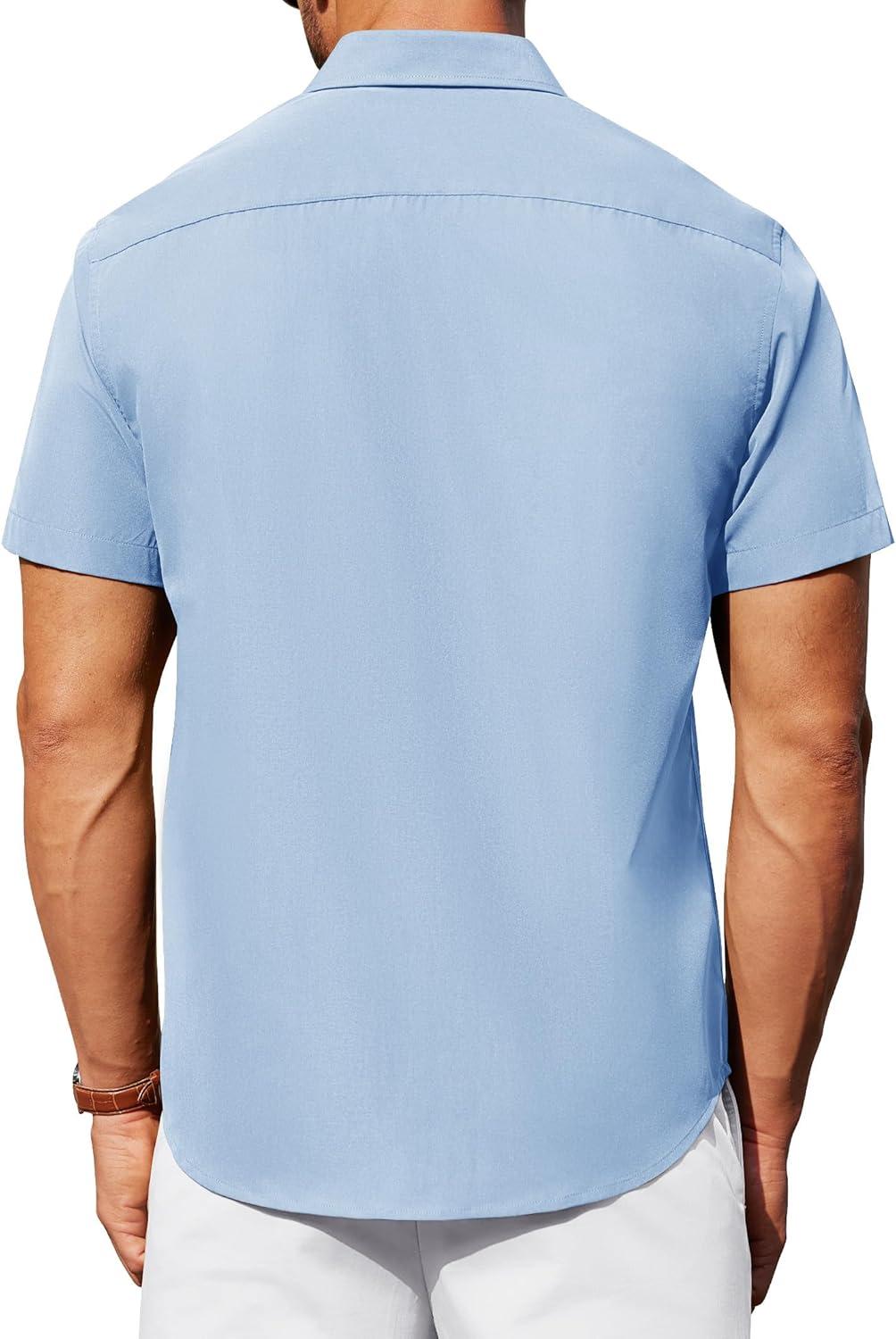 Alimens & Gentle Mens Short Sleeve Dress Shirt Wrinkle Free Solid Casual Button Down Shirts for Summer Business Wedding(Light Blue)