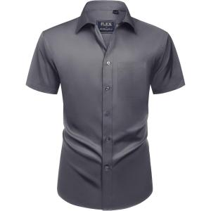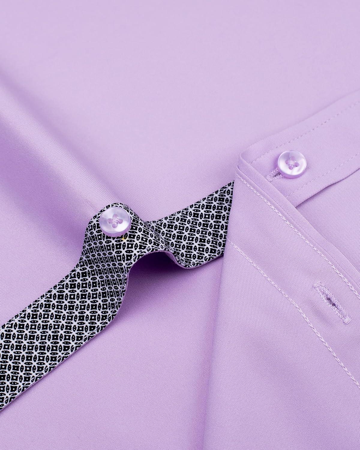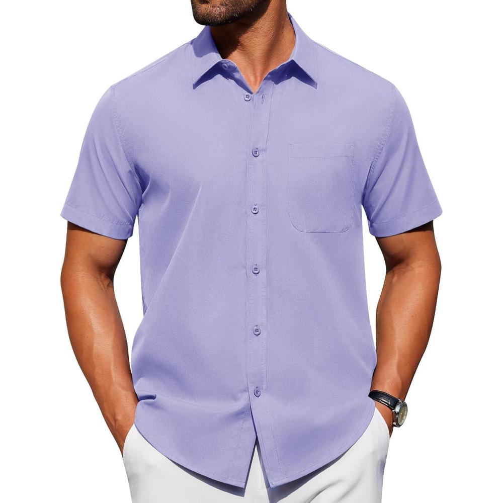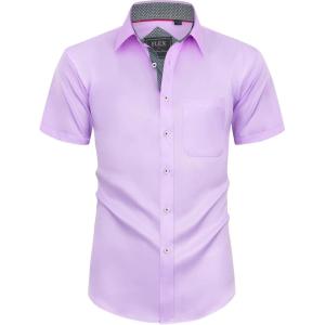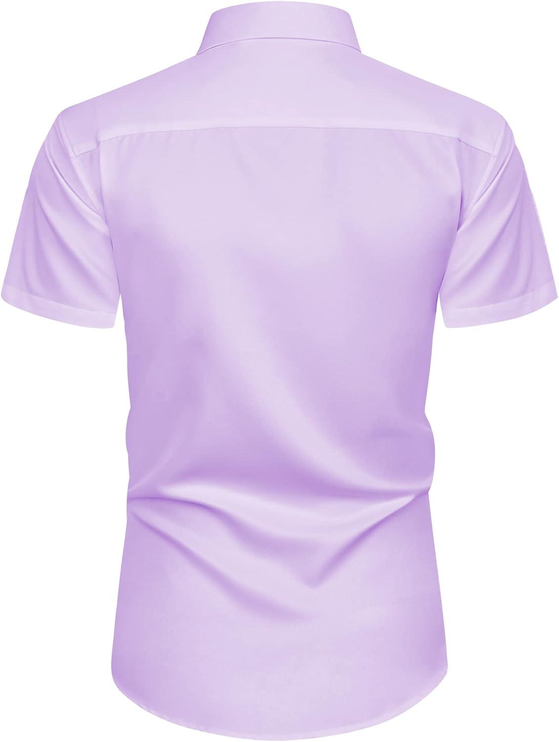 Alimens & Gentle Mens Short Sleeve Dress Shirt Wrinkle Free Solid Casual Button Down Shirts for Summer Business Wedding(Light Purple)