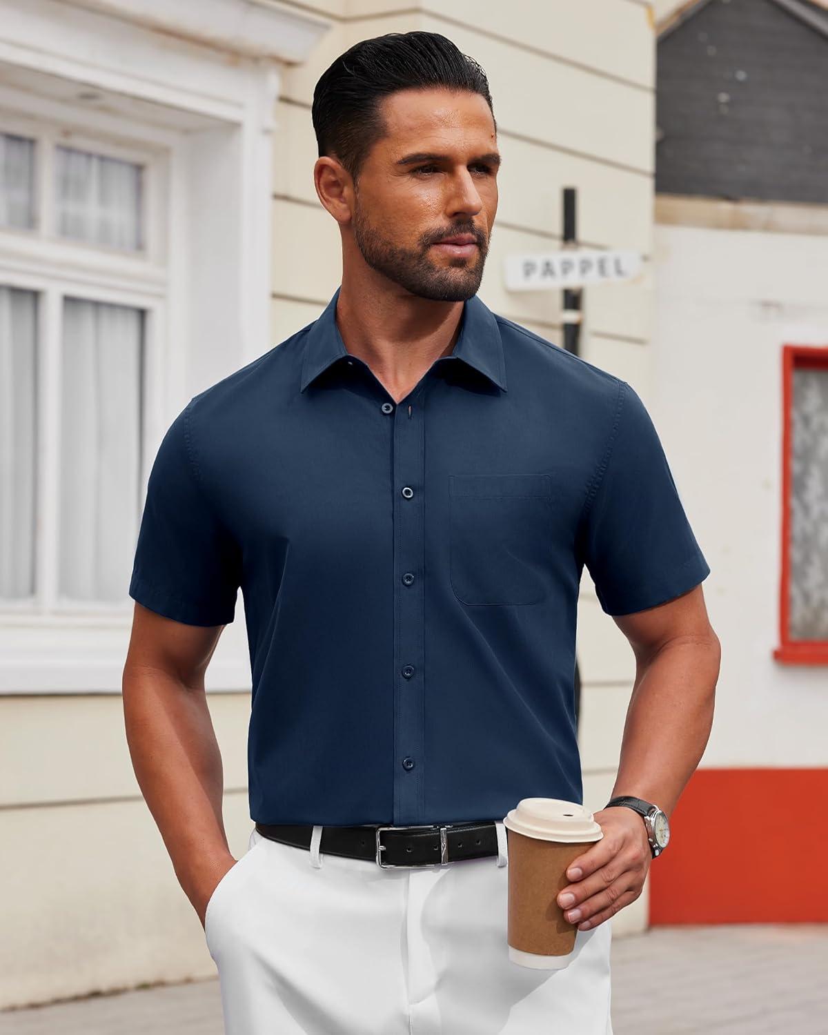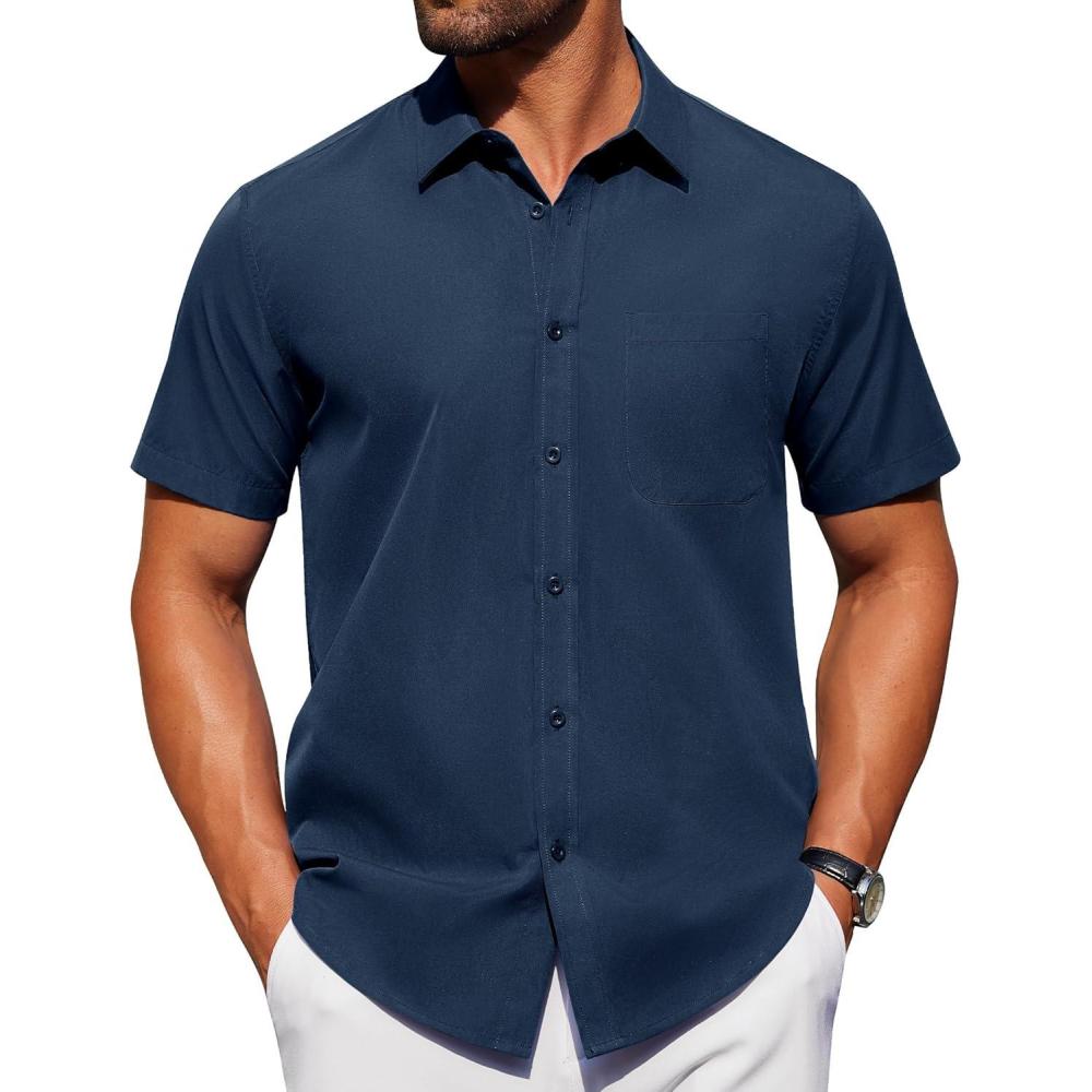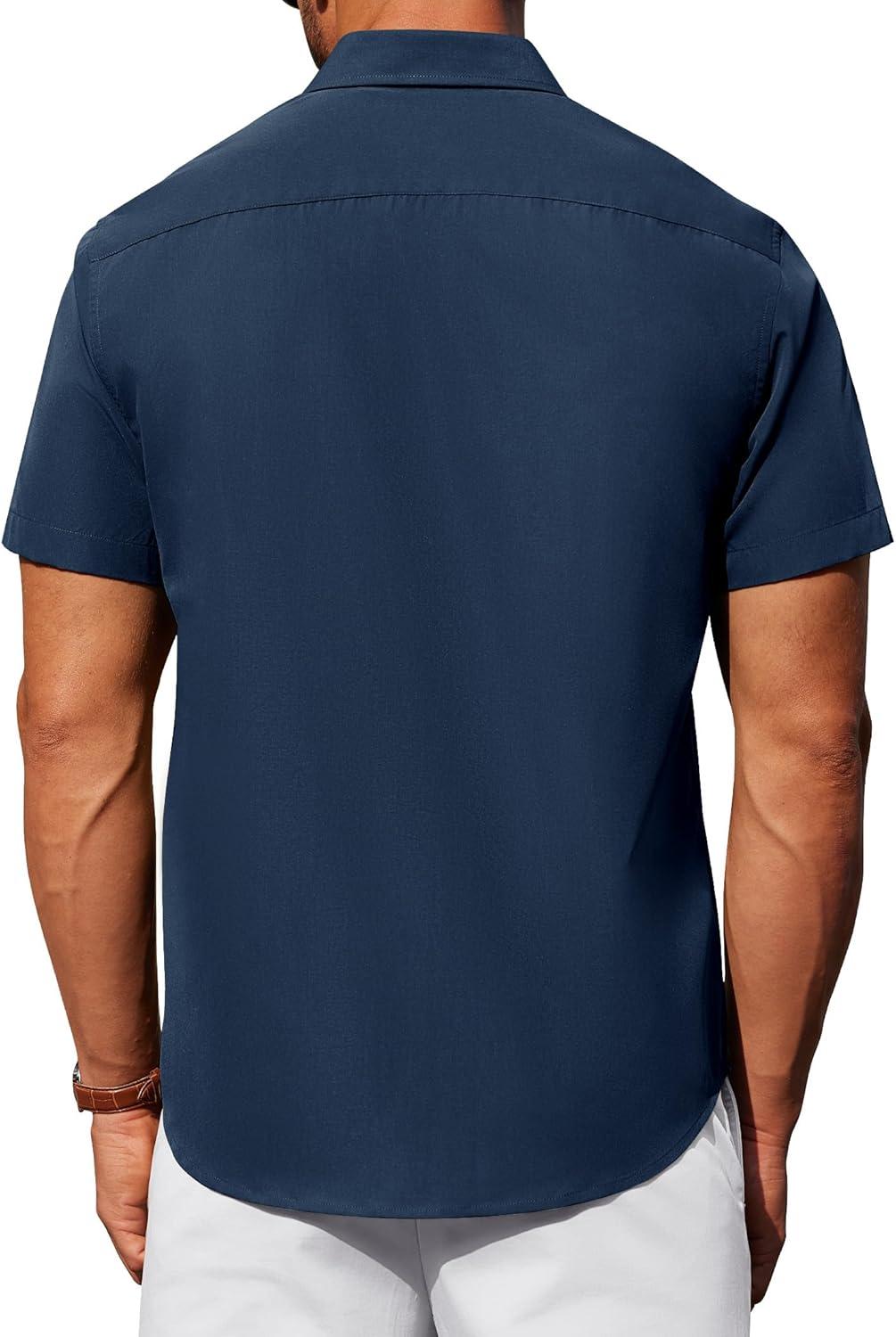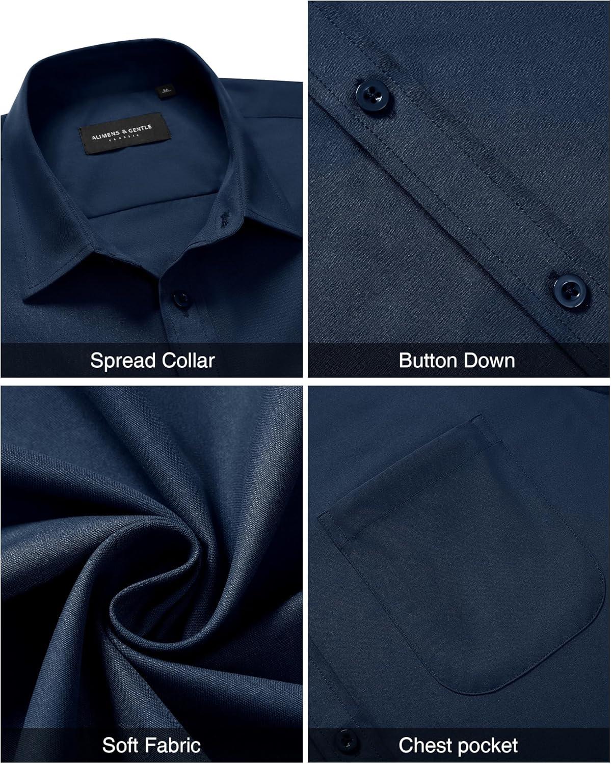 Alimens & Gentle Mens Short Sleeve Dress Shirt Wrinkle Free Solid Casual Button Down Shirts for Summer Business Wedding(Navy Blue)