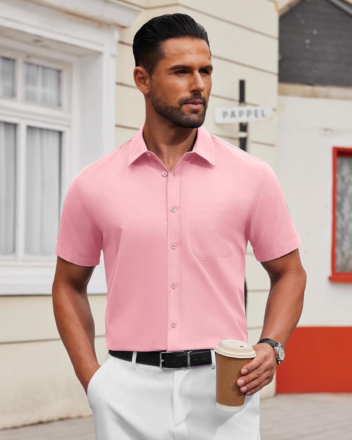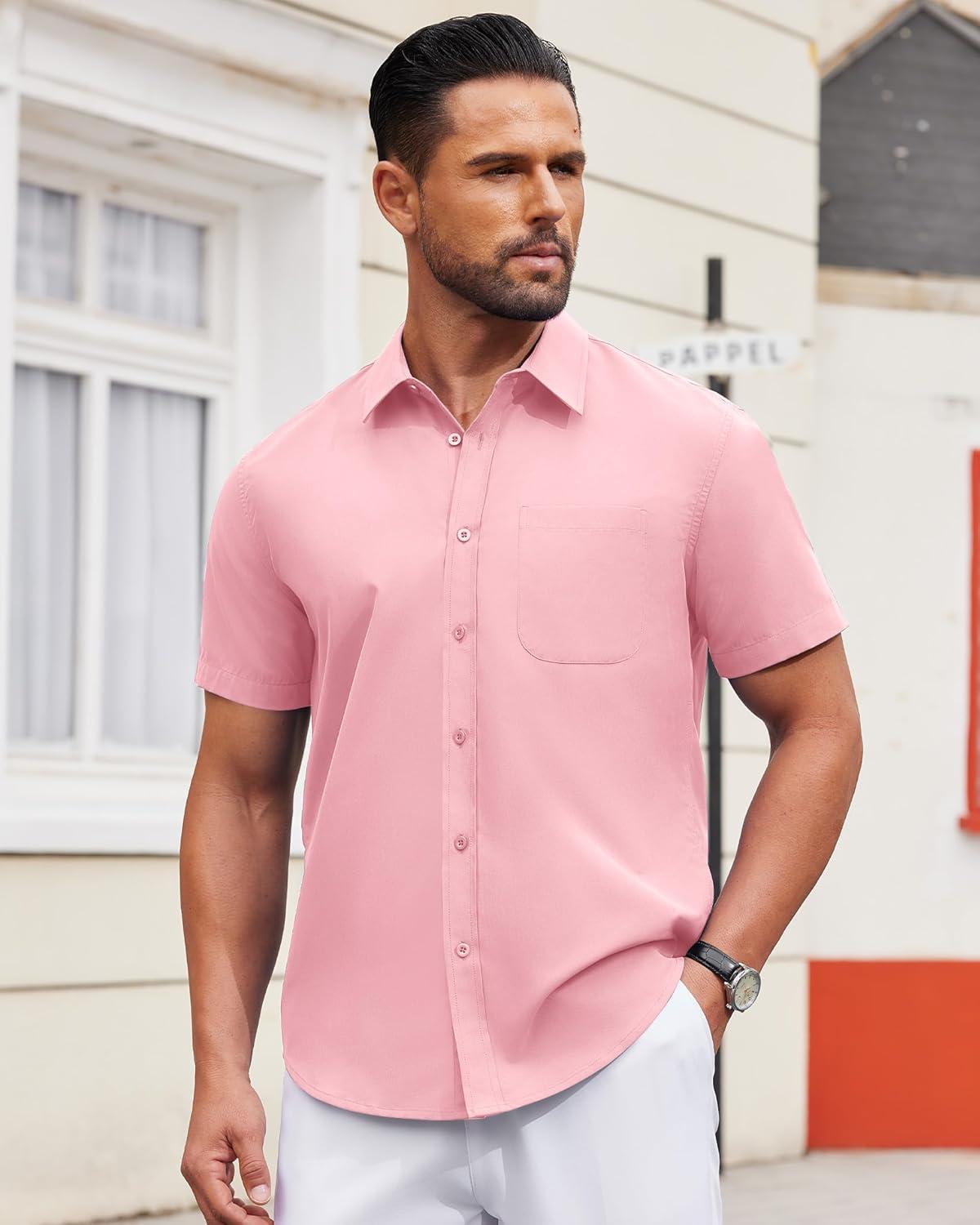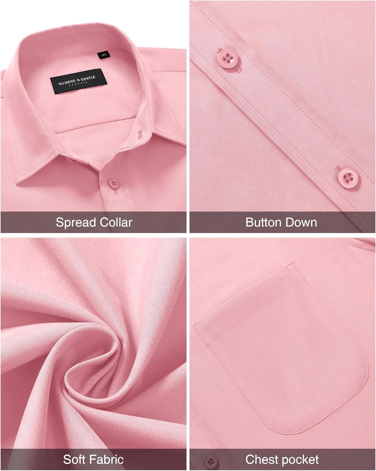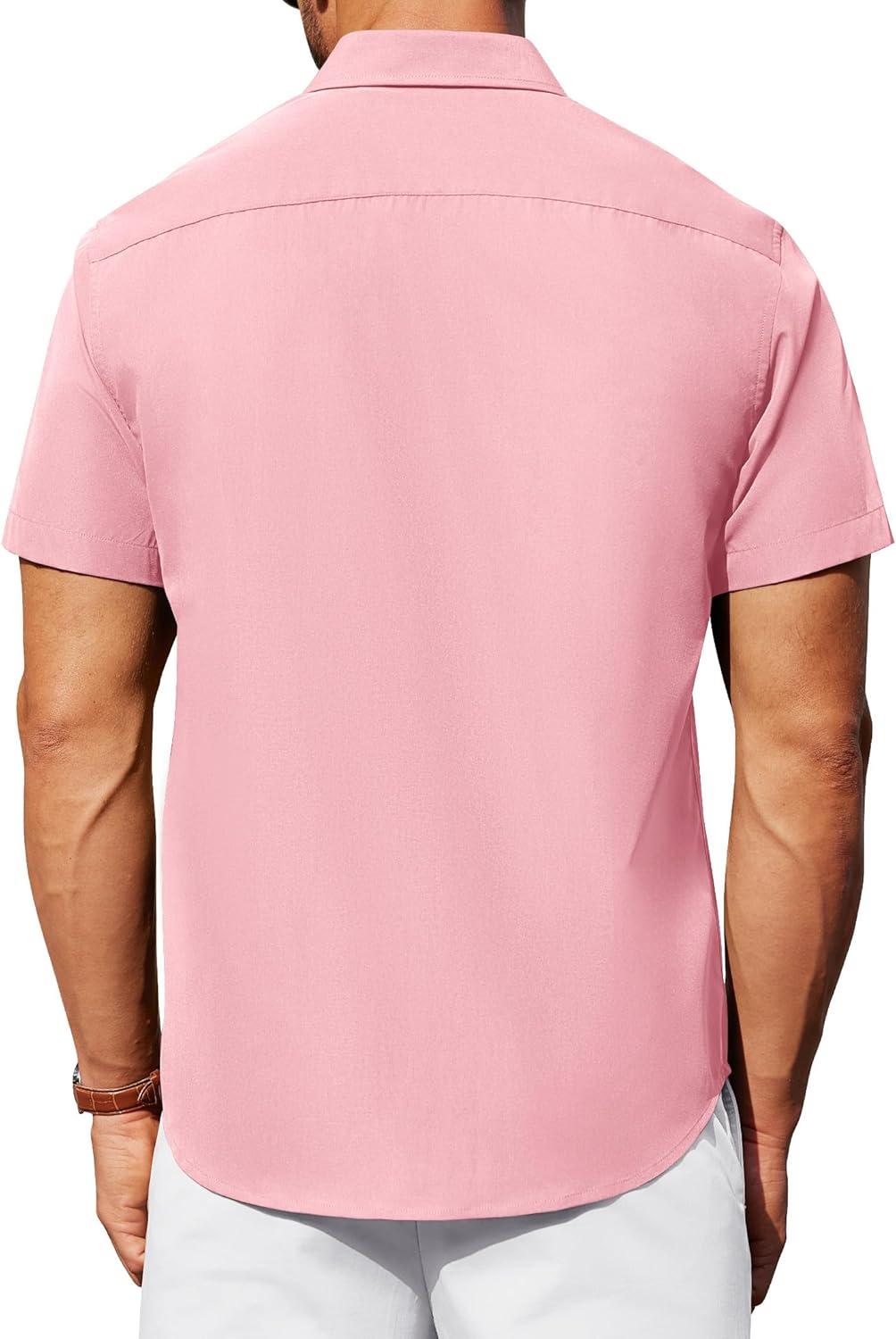 Alimens & Gentle Mens Short Sleeve Dress Shirt Wrinkle Free Solid Casual Button Down Shirts for Summer Business Wedding(Pink)
