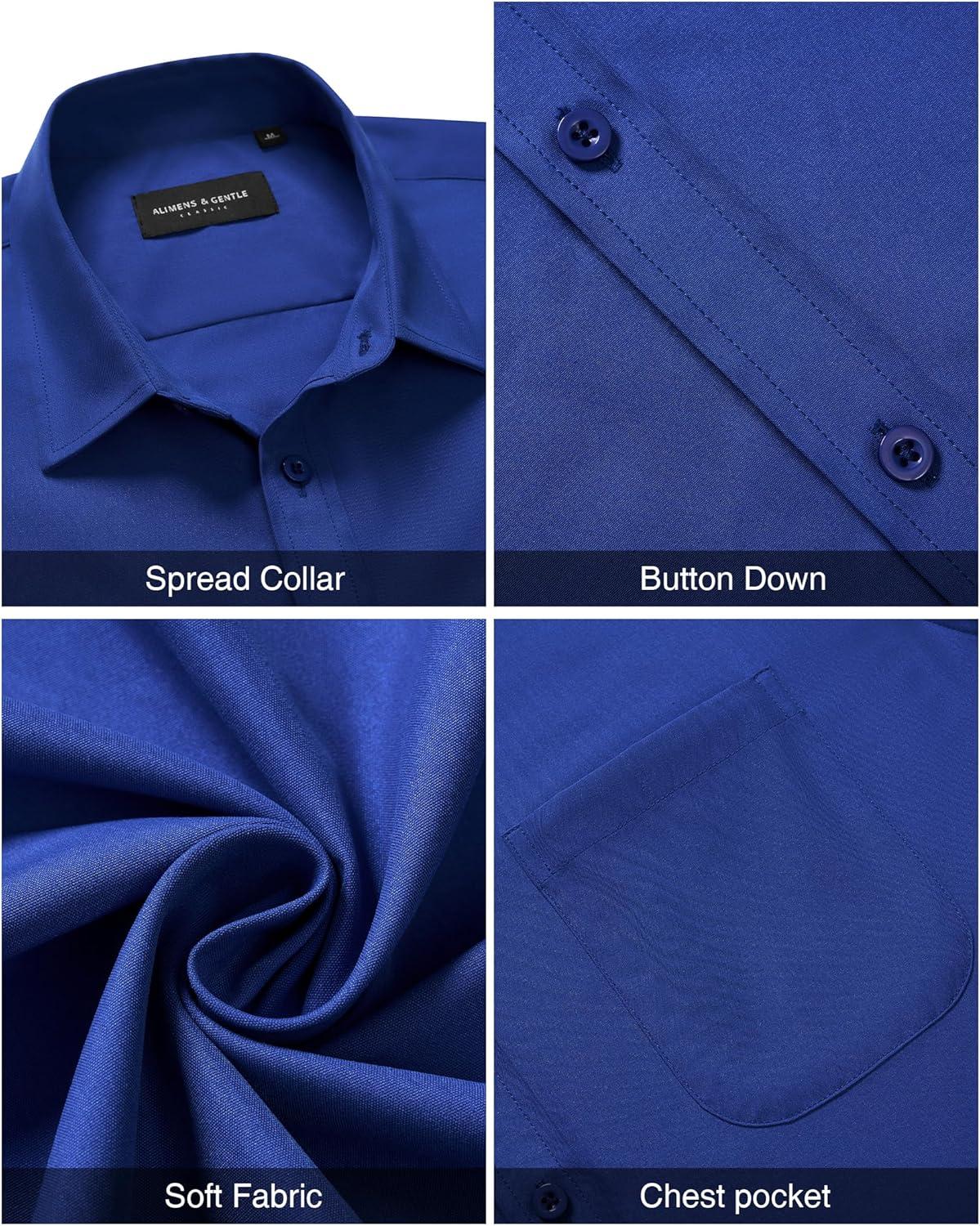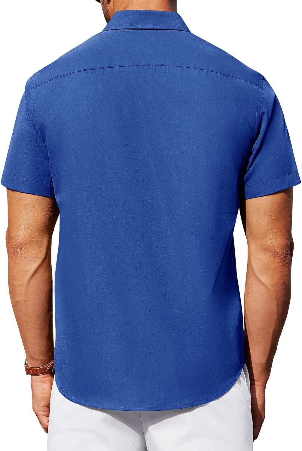 Alimens & Gentle Mens Short Sleeve Dress Shirt Wrinkle Free Solid Casual Button Down Shirts for Summer Business Wedding(Royal Blue)