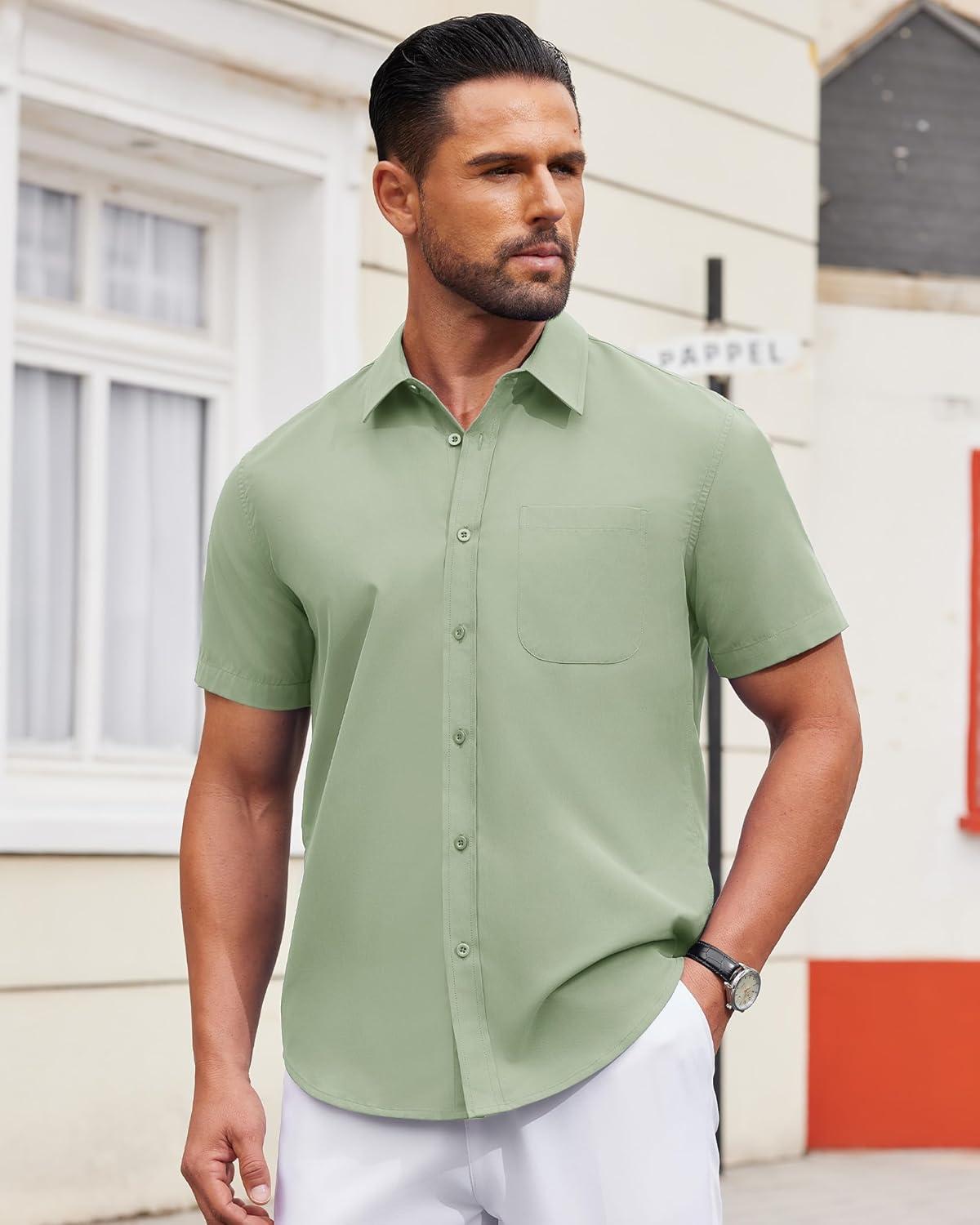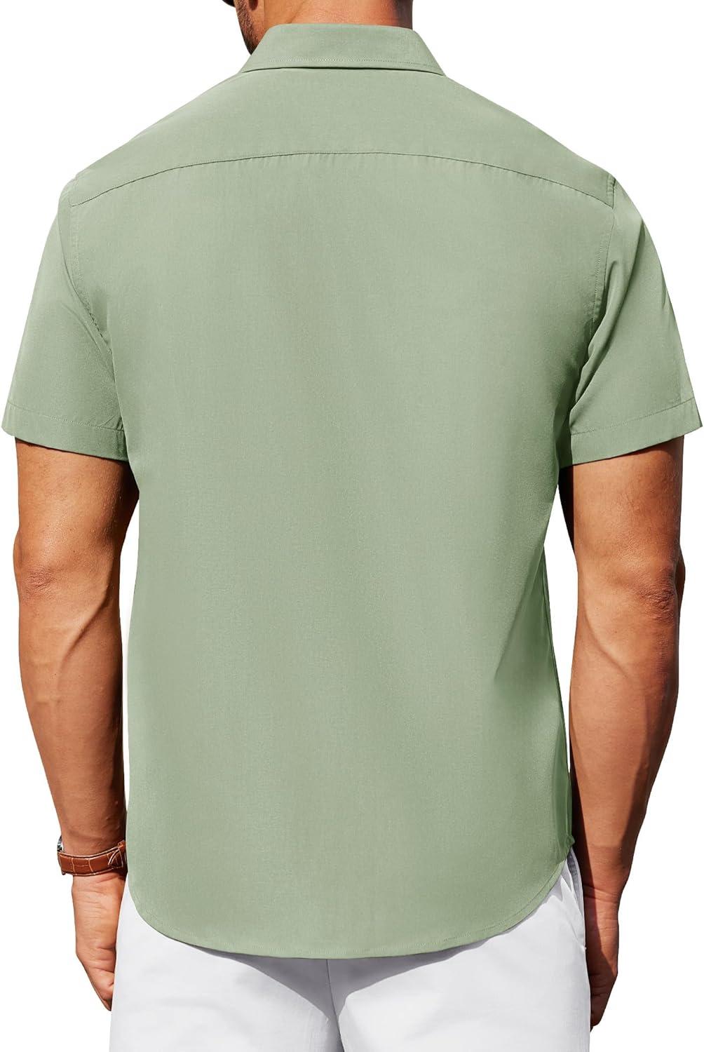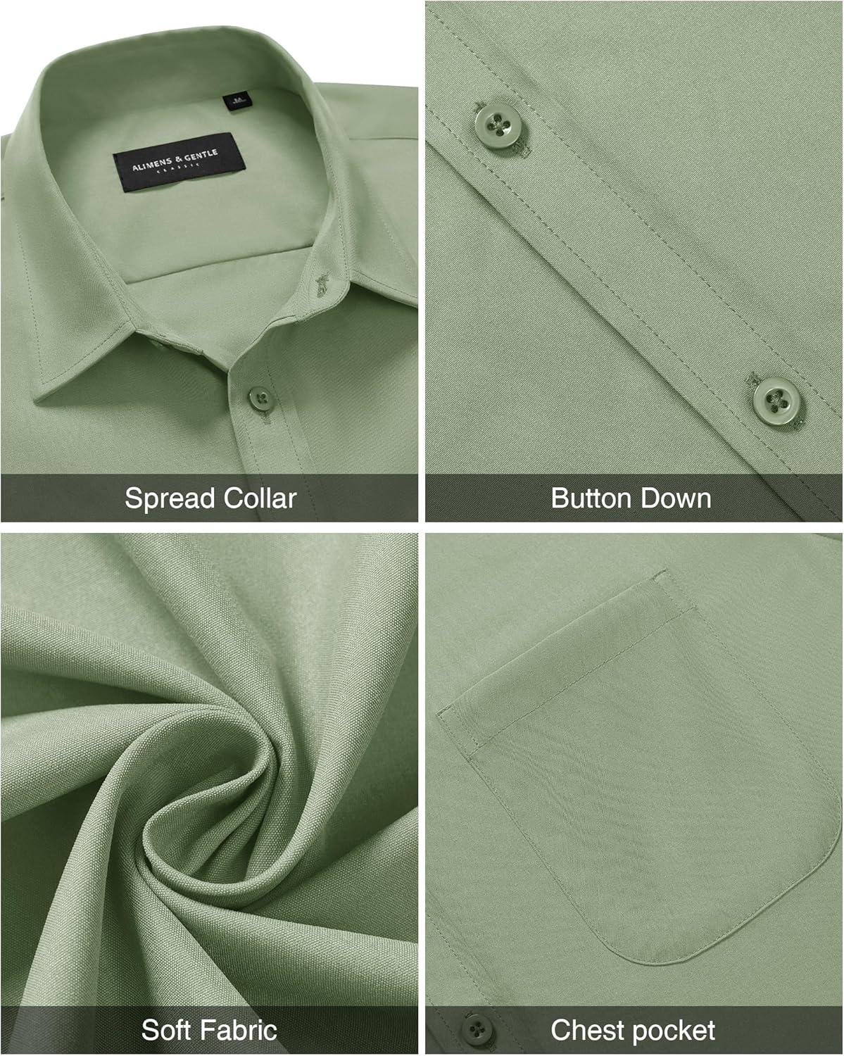 Alimens & Gentle Mens Short Sleeve Dress Shirt Wrinkle Free Solid Casual Button Down Shirts for Summer Business Wedding(Sage Green)