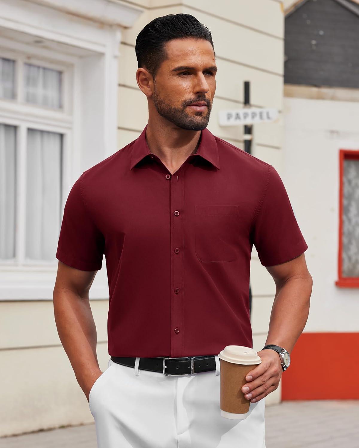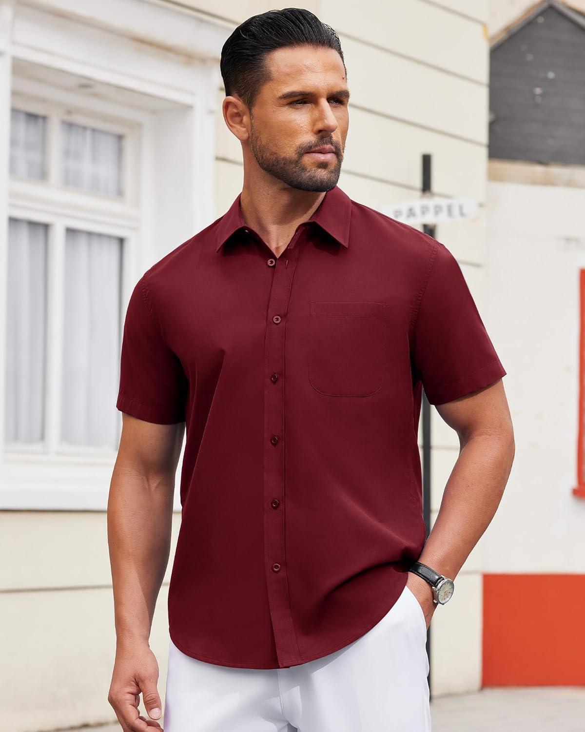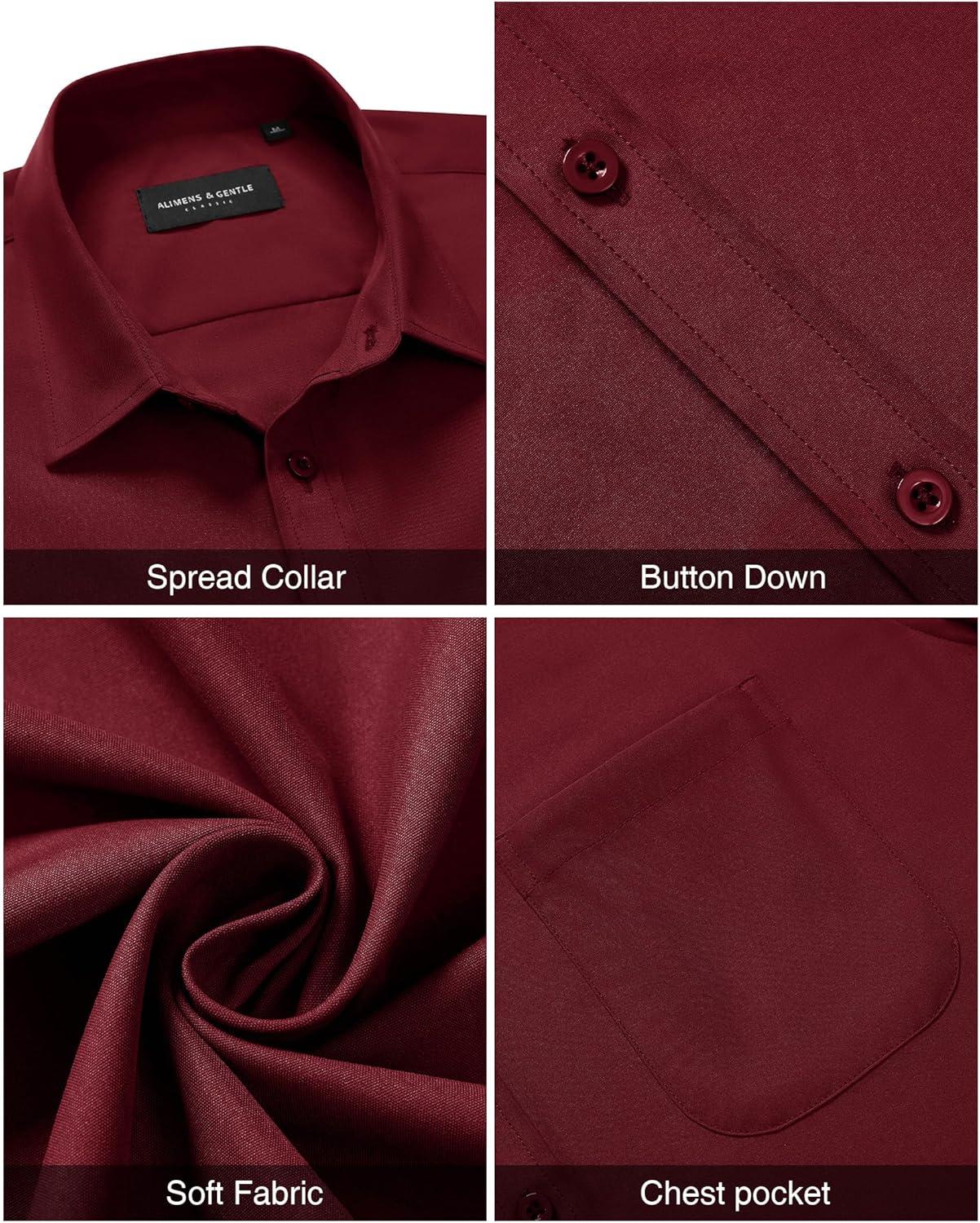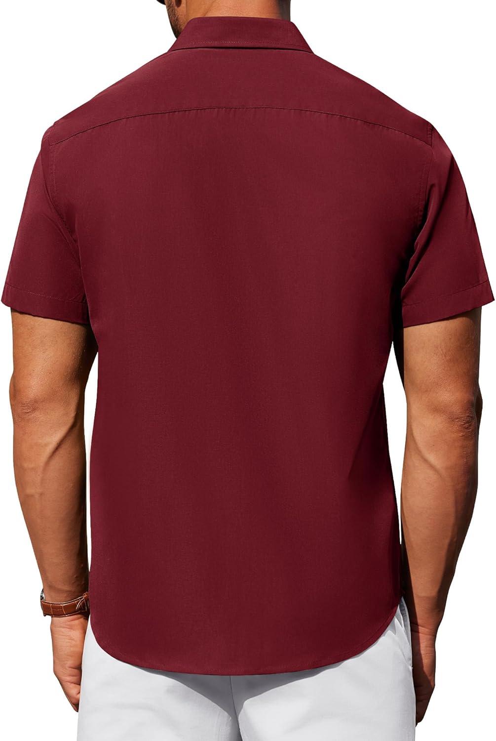 Alimens & Gentle Mens Short Sleeve Dress Shirt Wrinkle Free Solid Casual Button Down Shirts for Summer Business Wedding(Wine Red)
