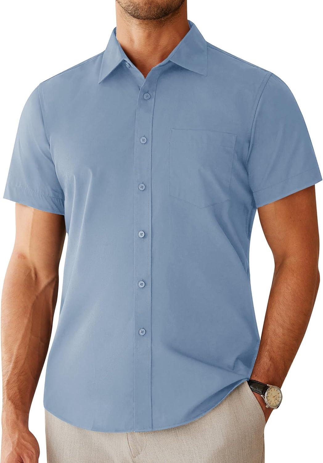 Alimens & Gentle Mens Short Sleeve Dress Shirts Regular Fit Stretch Wrinkle-Resistant Button Down Shirts(Blue Tempest)