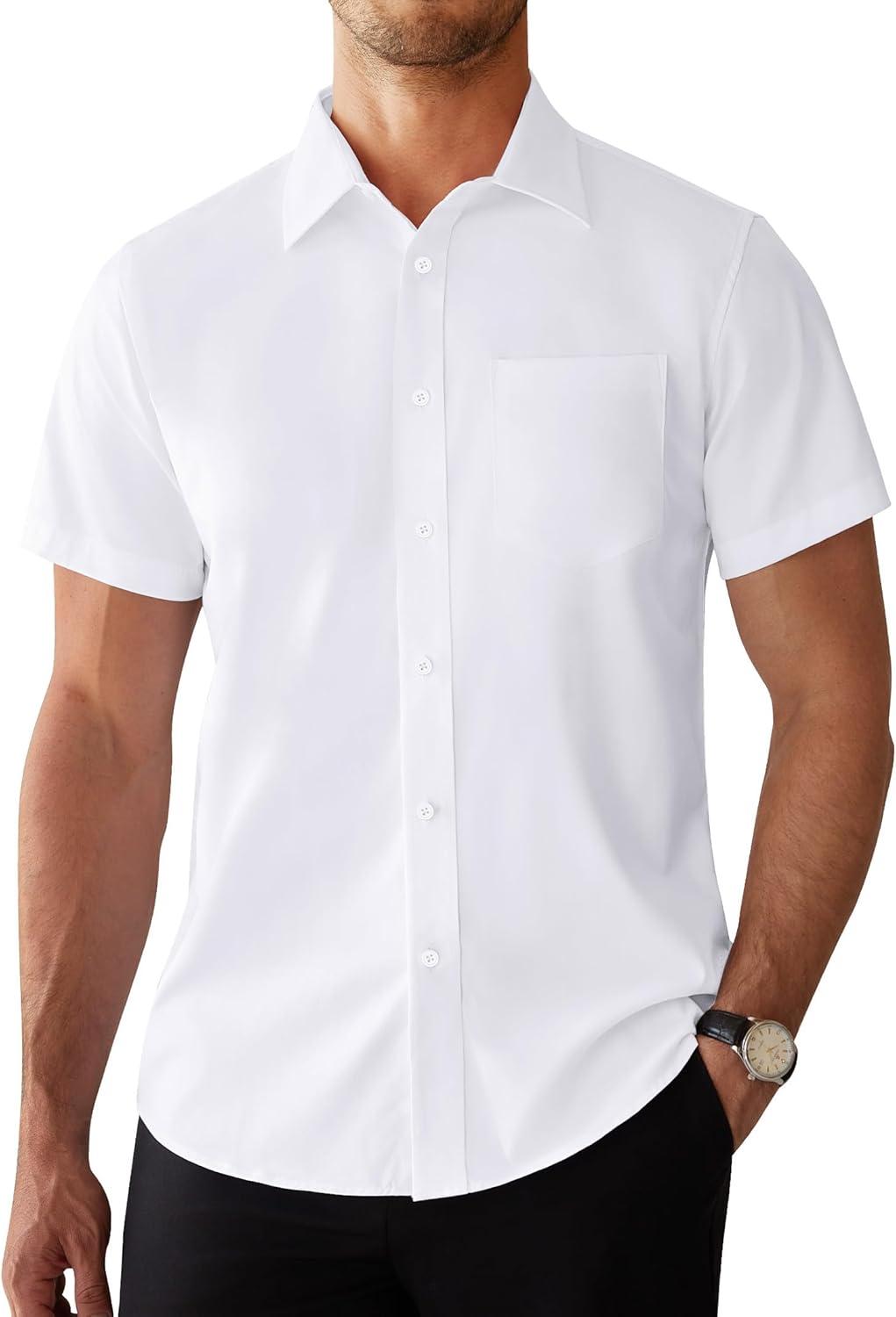 Alimens & Gentle Mens Short Sleeve Dress Shirts Regular Fit Stretch Wrinkle-Resistant Button Down Shirts(White)