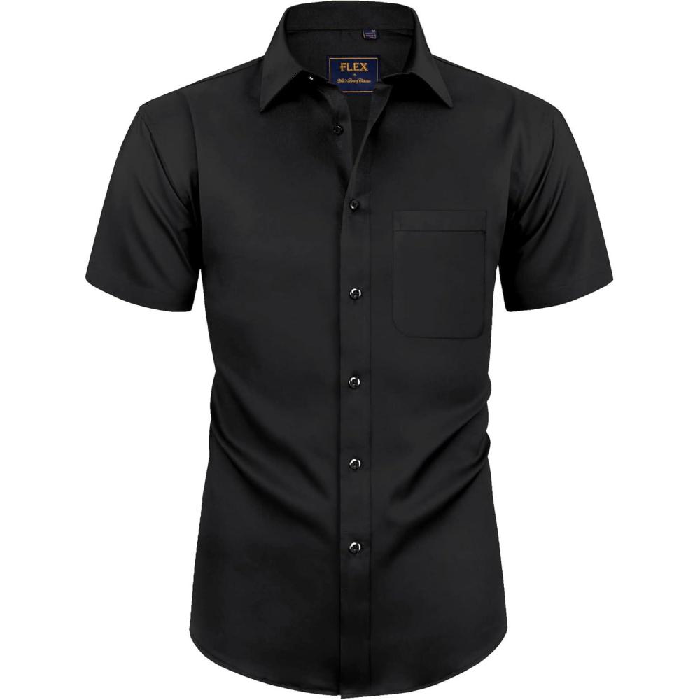 Alimens & Gentle Mens Short Sleeve Dress Shirts Wrinkle Free Solid Casual Button Down Shirts with Pocket(All Black)
