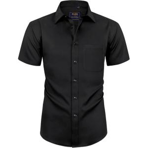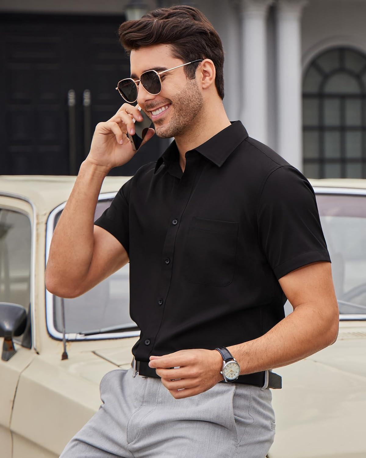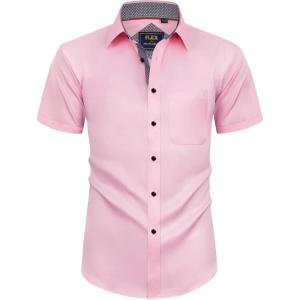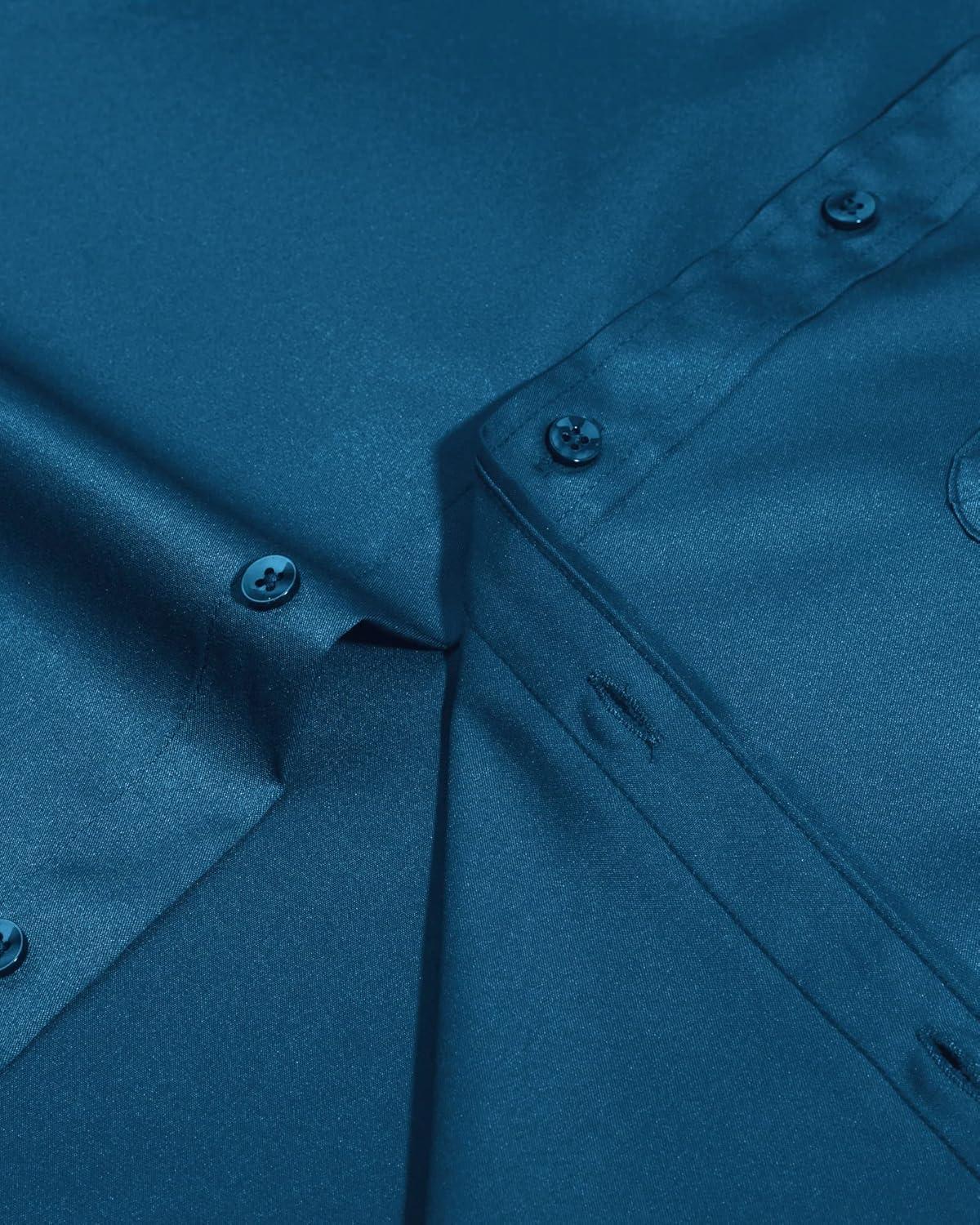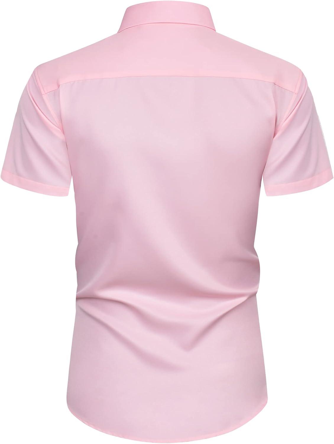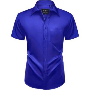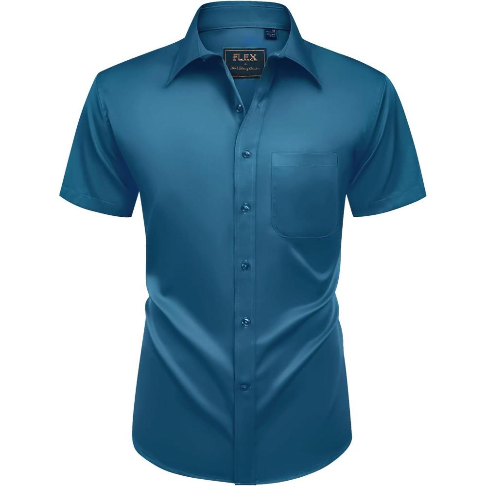 Alimens & Gentle Mens Short Sleeve Dress Shirts Wrinkle Free Solid Casual Button Down Shirts with Pocket(Azure Blue)