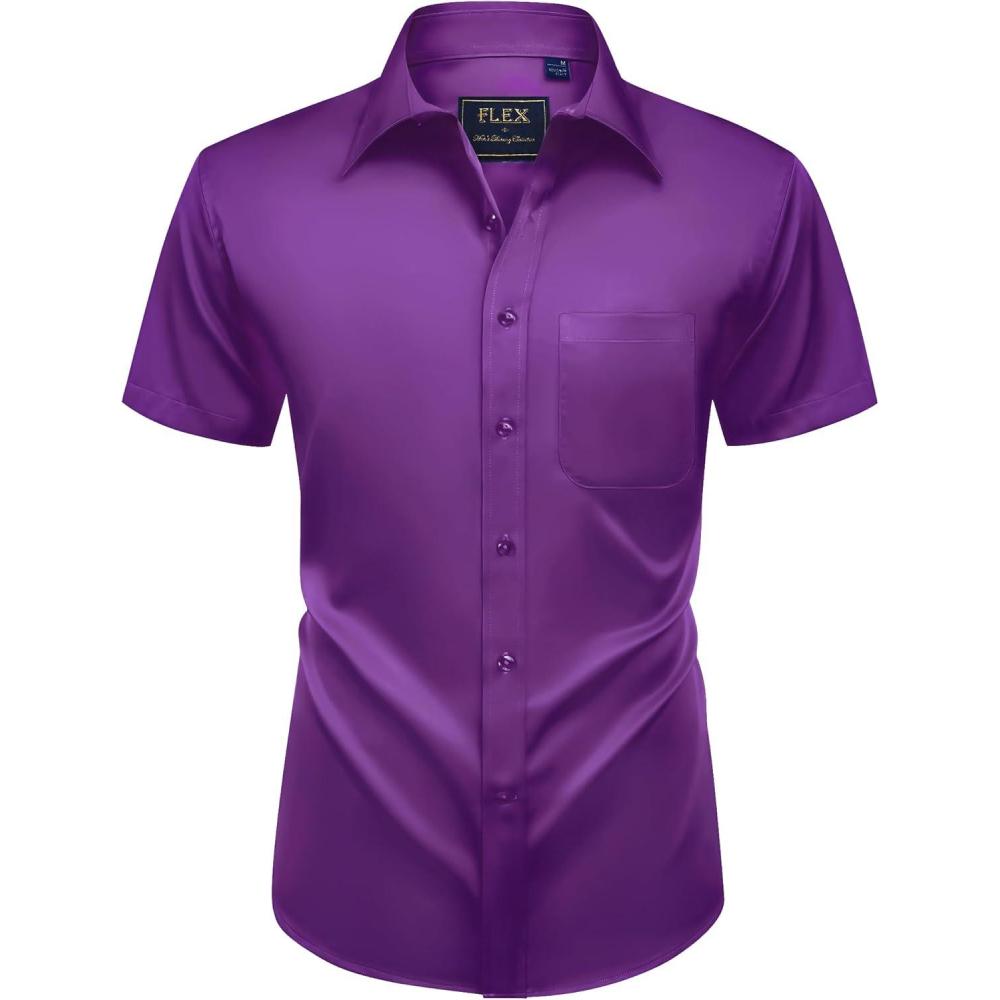 Alimens & Gentle Mens Short Sleeve Dress Shirts Wrinkle Free Solid Casual Button Down Shirts with Pocket(Dark Purple)