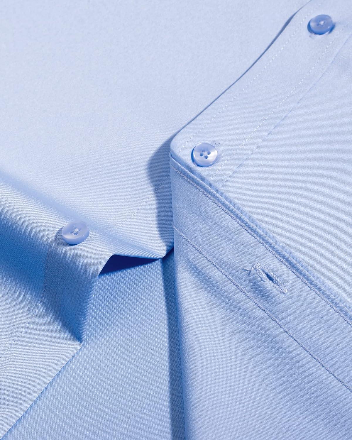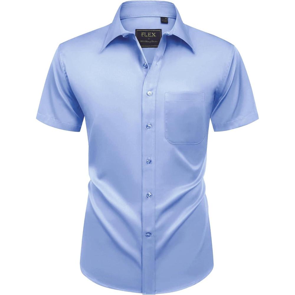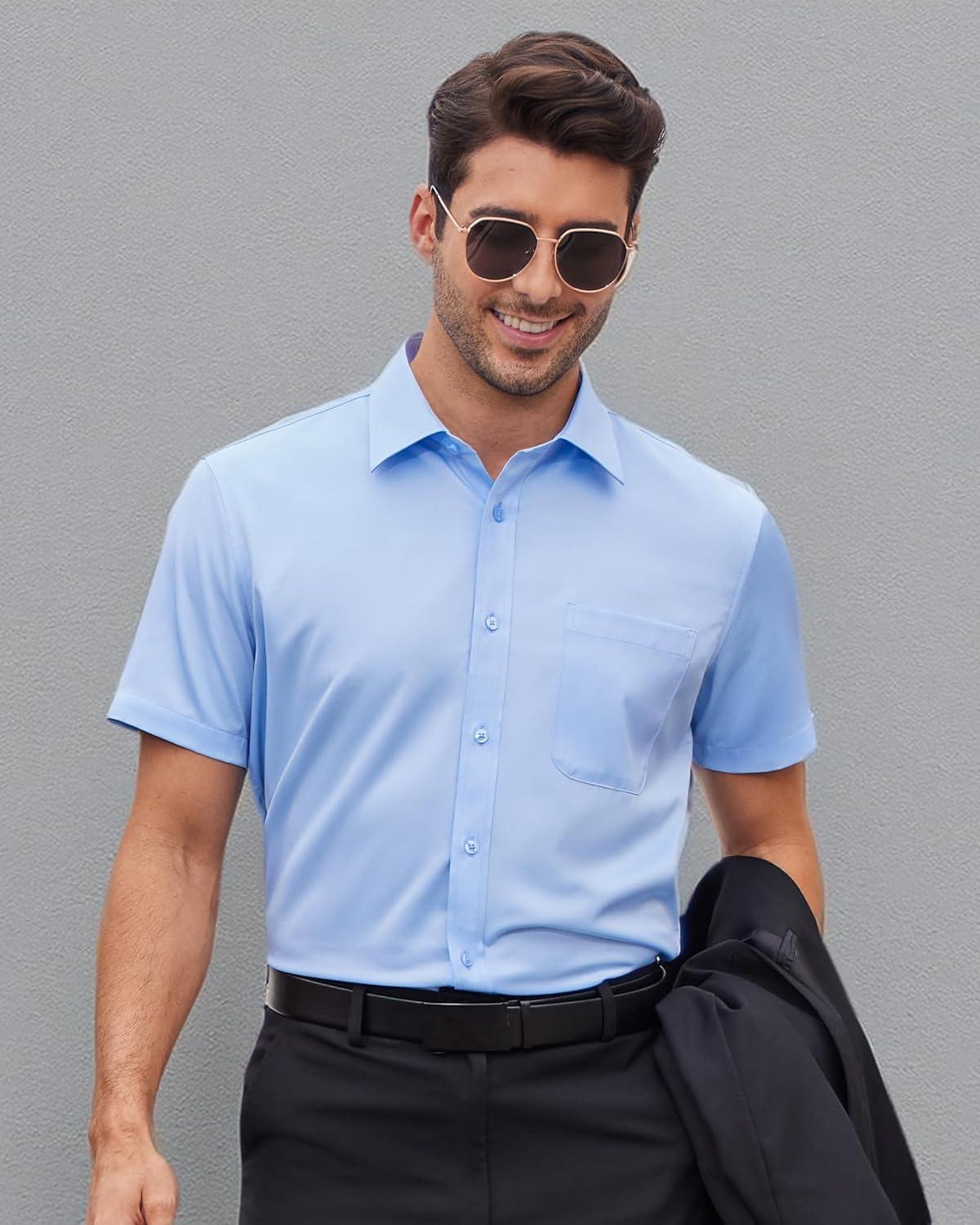 Alimens & Gentle Mens Short Sleeve Dress Shirts Wrinkle Free Solid Casual Button Down Shirts with Pocket(Light Blue)