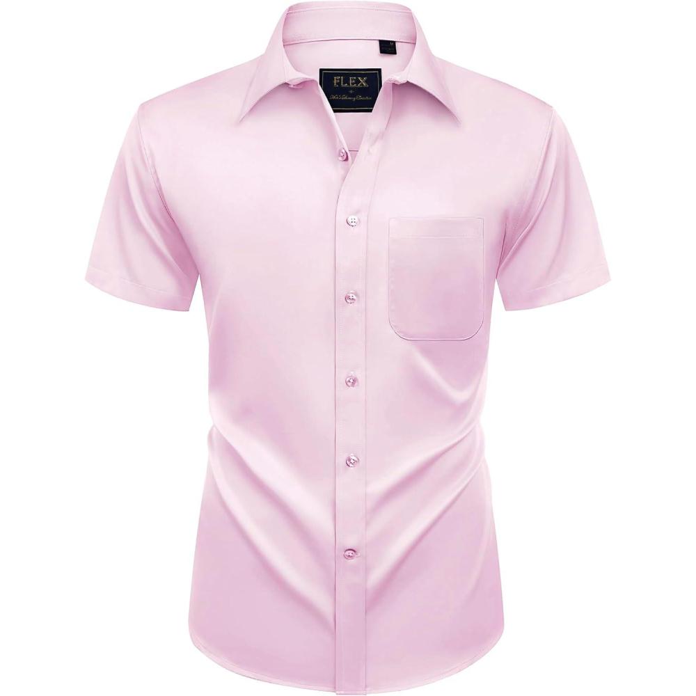 Alimens & Gentle Mens Short Sleeve Dress Shirts Wrinkle Free Solid Casual Button Down Shirts with Pocket(Light Pink)