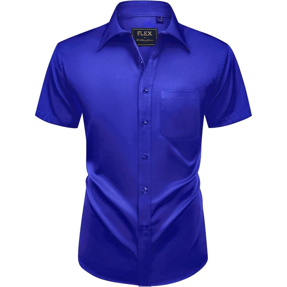 Alimens & Gentle Mens Short Sleeve Dress Shirts Wrinkle Free Solid Casual Button Down Shirts with Pocket(Royal Blue)