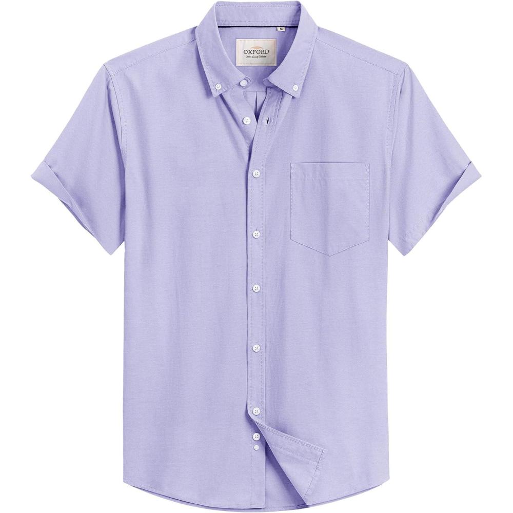 Alimens & Gentle Men’s Short Sleeve Oxford Shirt Regular Fit Button Down Collar Shirts with Pocket(Blue Purple)