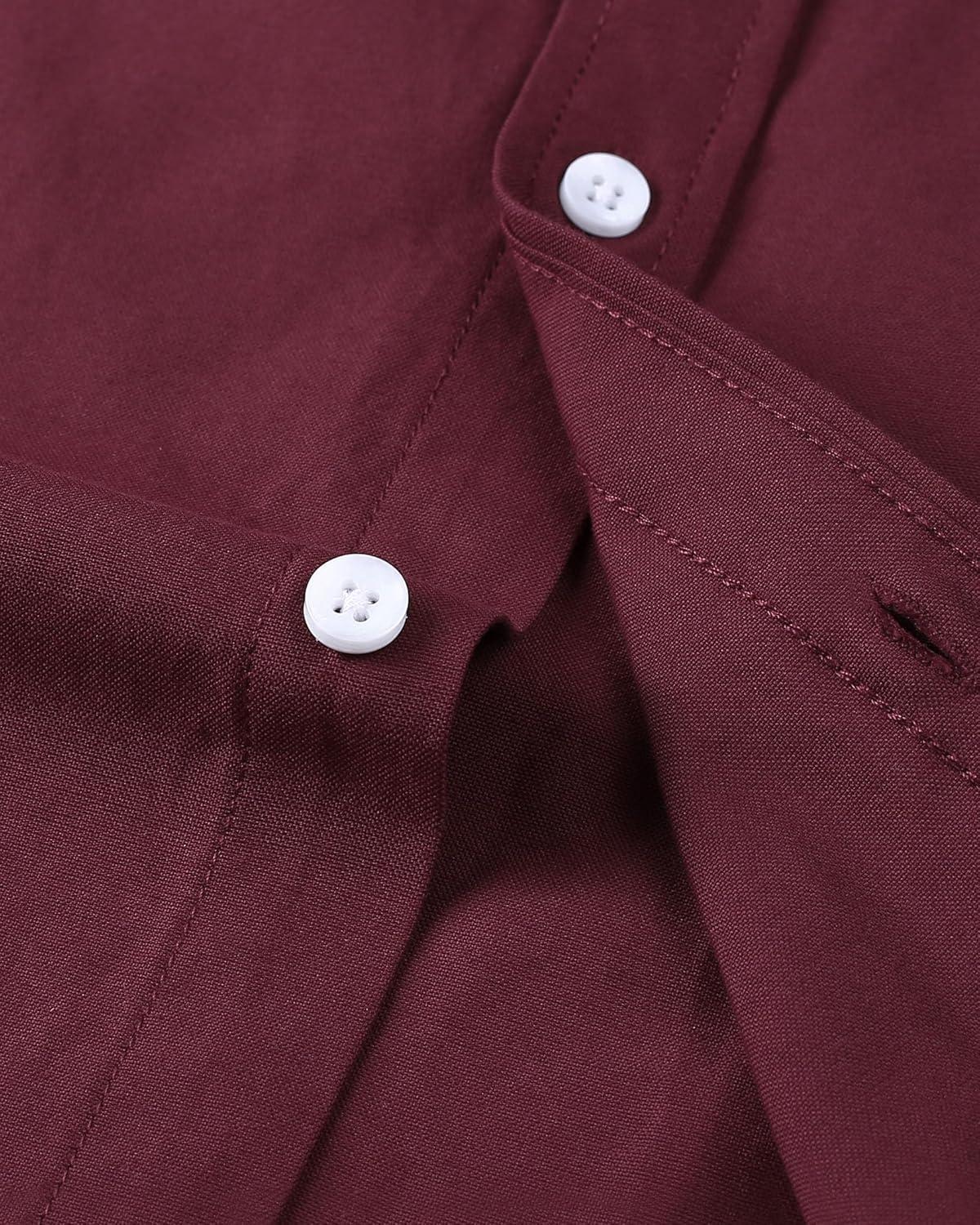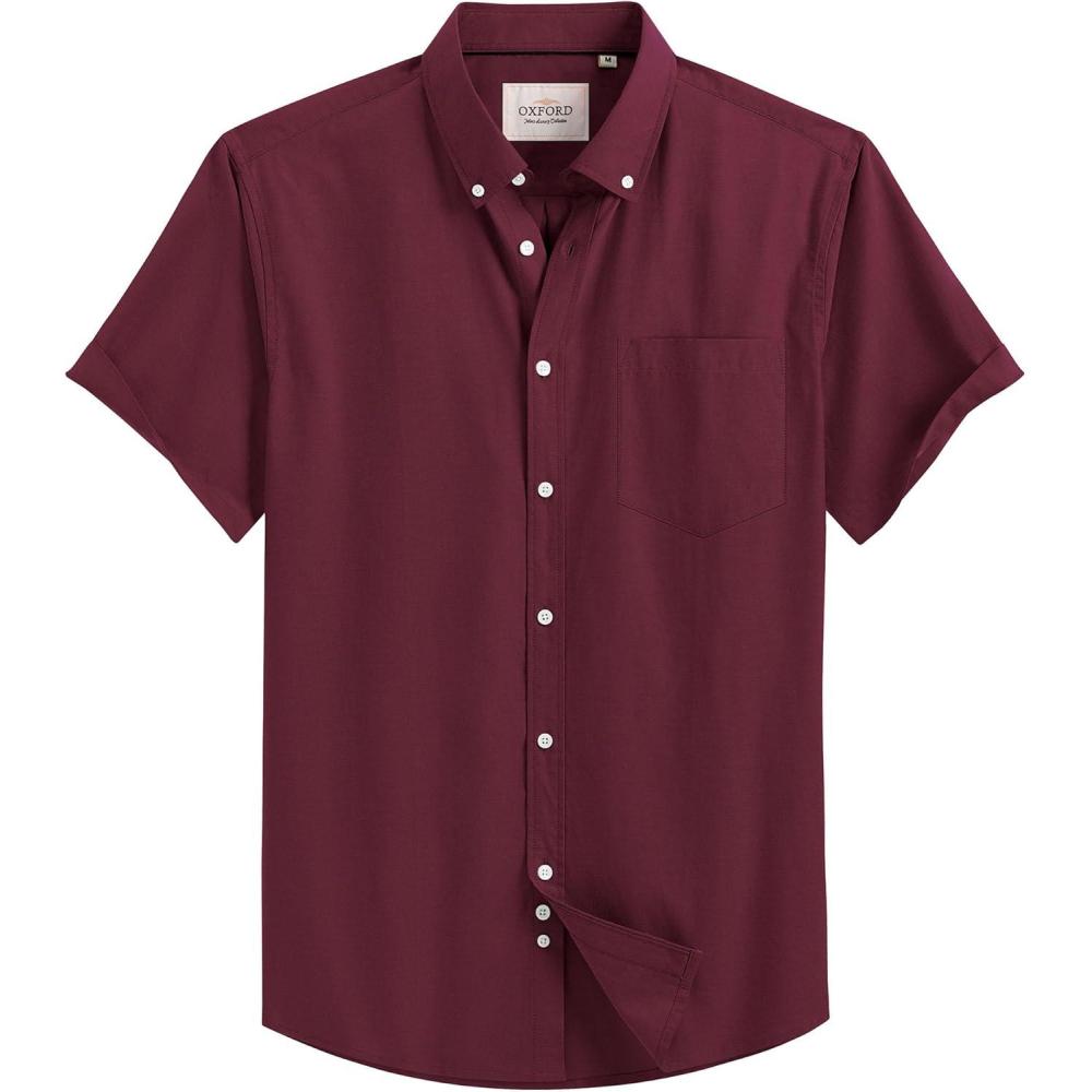 Alimens & Gentle Men’s Short Sleeve Oxford Shirt Regular Fit Button Down Collar Shirts with Pocket(Burgundy)