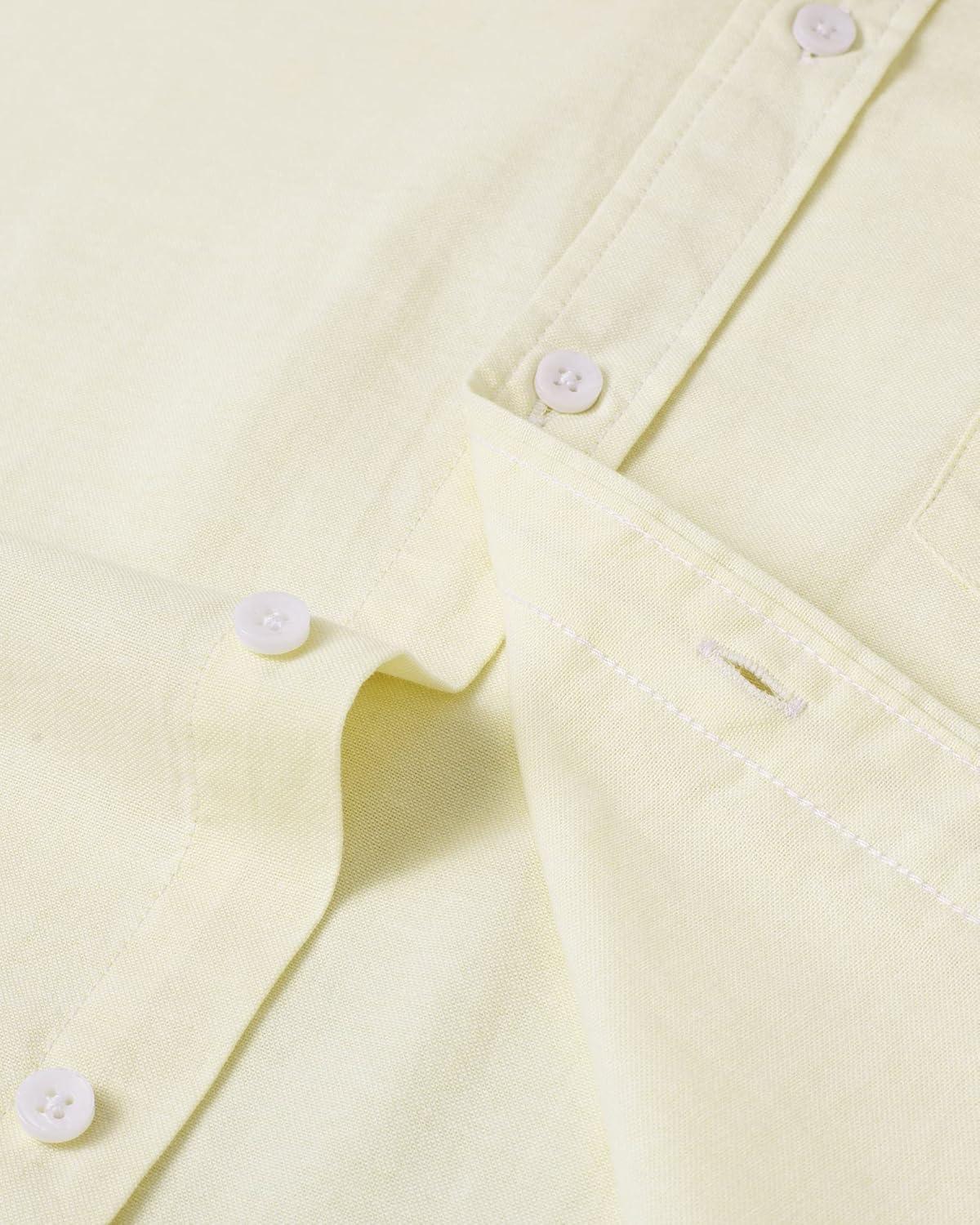 Alimens & Gentle Men’s Short Sleeve Oxford Shirt Regular Fit Button Down Collar Shirts with Pocket(Light Yellow)