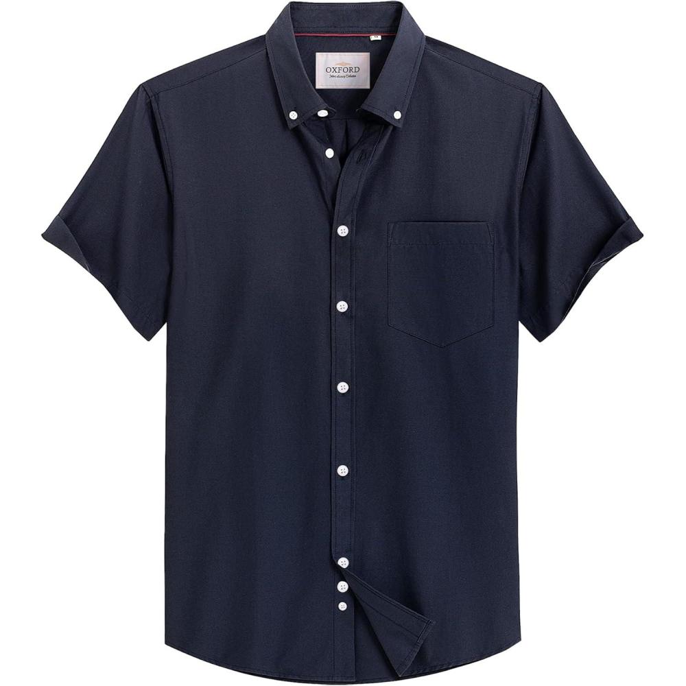 Alimens & Gentle Men’s Short Sleeve Oxford Shirt Regular Fit Button Down Collar Shirts with Pocket(Navy Blue)