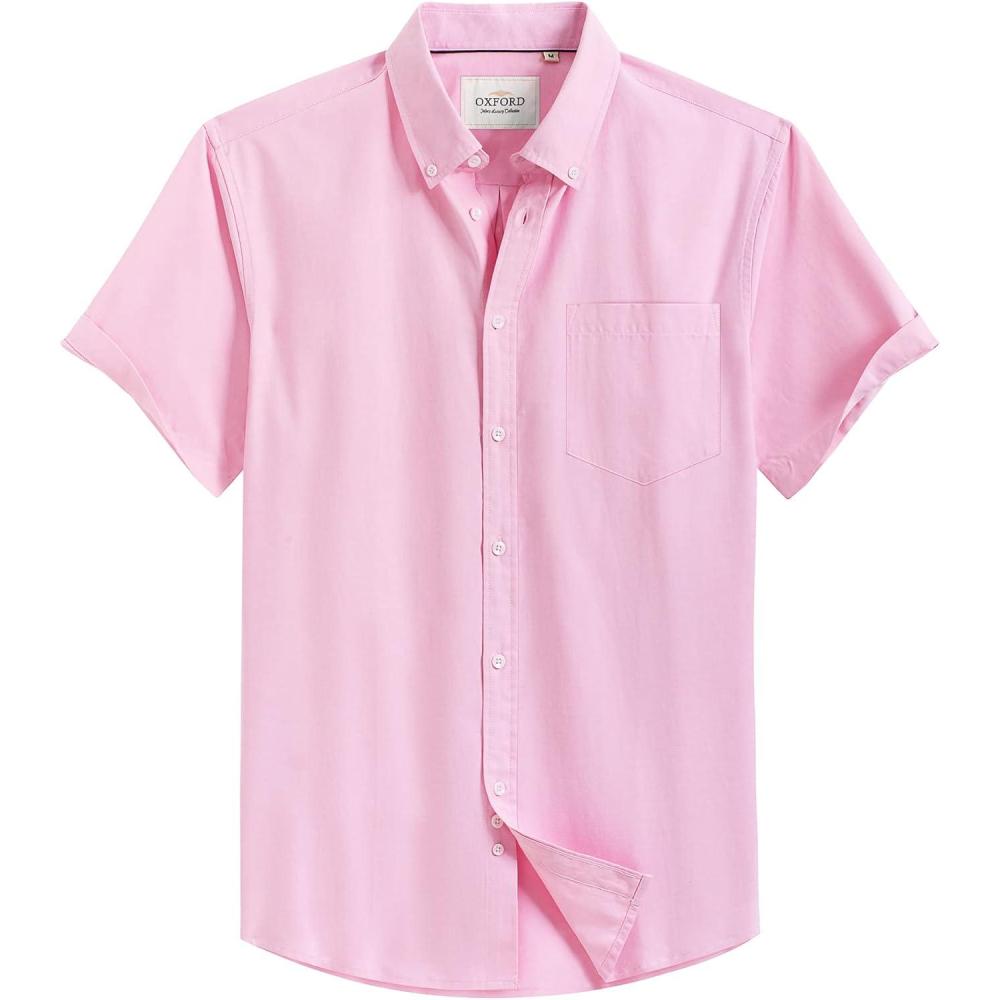 Alimens & Gentle Men’s Short Sleeve Oxford Shirt Regular Fit Button Down Collar Shirts with Pocket(Pink)
