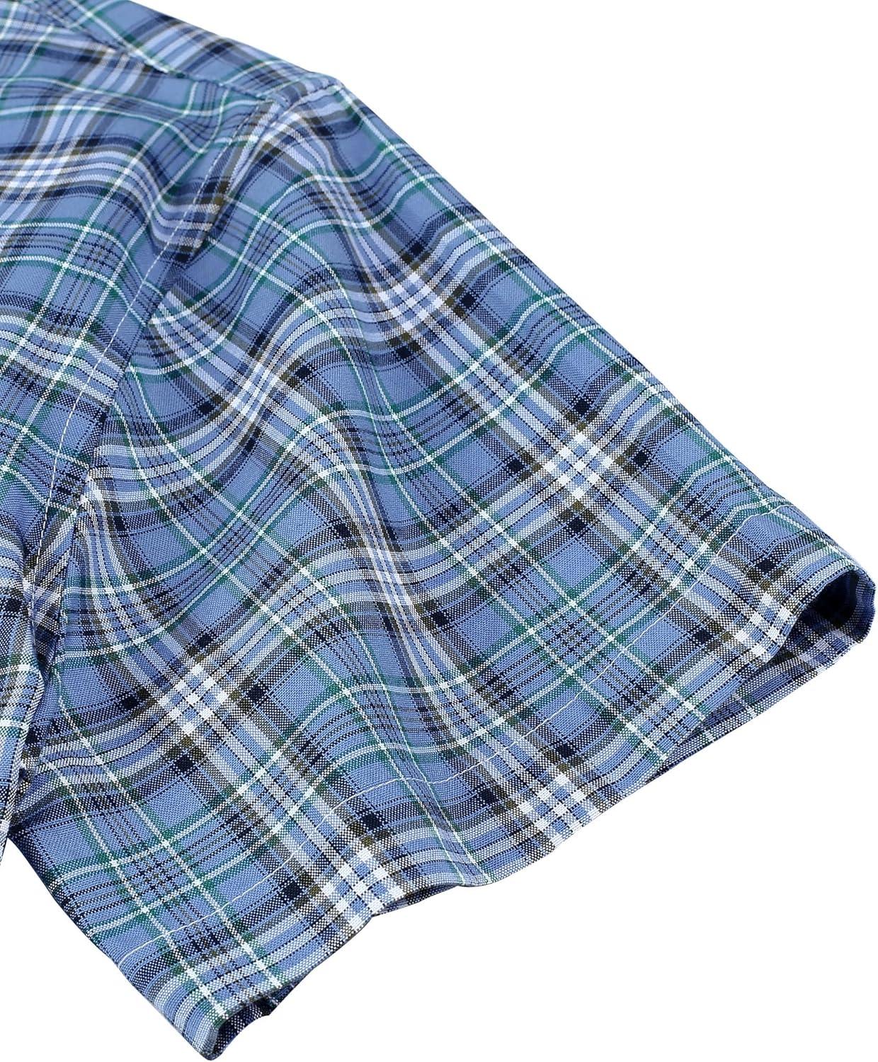 Alimens & Gentle Men’s Short Sleeve Oxford Shirt Regular Fit Button Down Collar Shirts with Pocket(Plaid Blue)