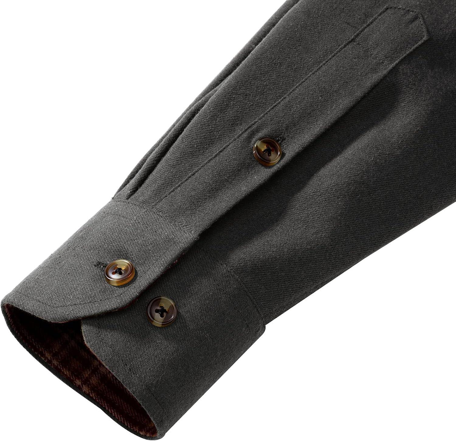 Alimens & Gentle Men’s Solid Flannel Shirt Work Long Sleeve Casual Button Down Shirts Outdoor Cotton Warm Shacket(Dark Grey)