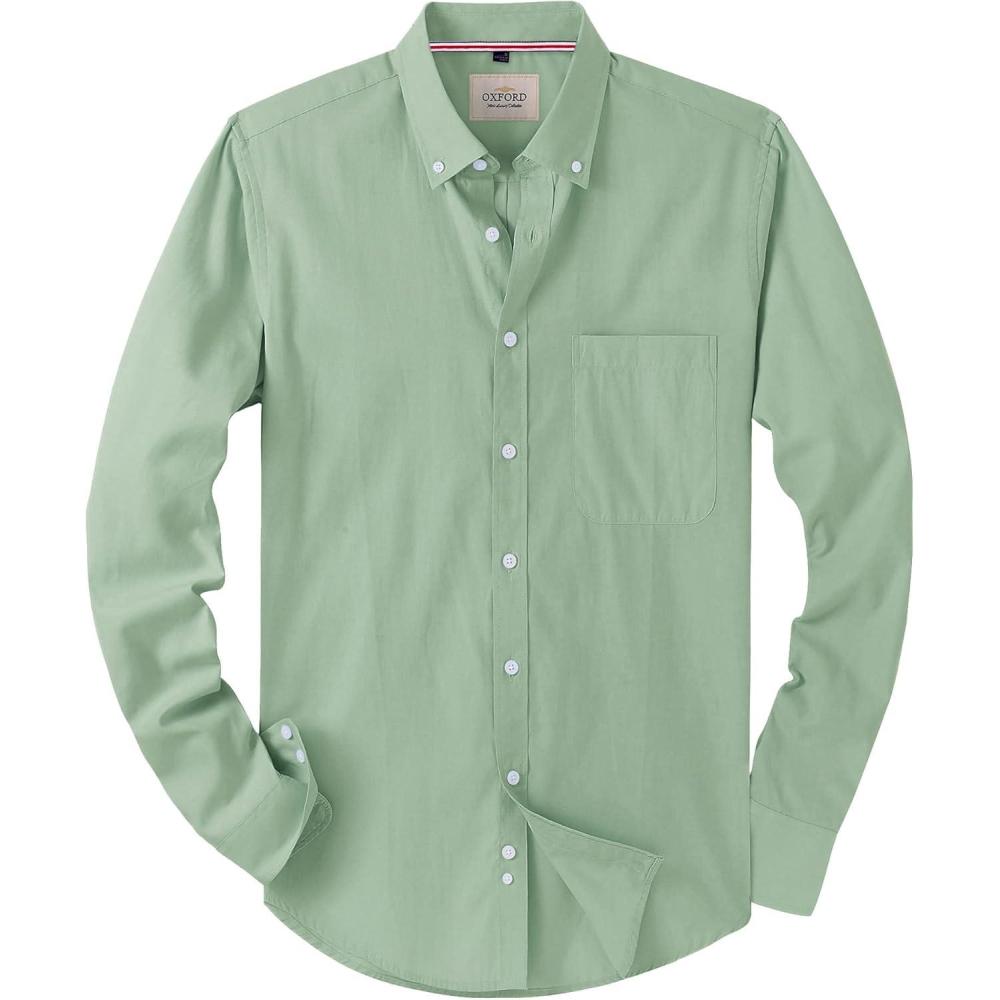Alimens & Gentle Mens Solid Oxford Shirt Long Sleeve Dress Shirt Work Casual Button Down Shirts with Pocket(Bean Green)