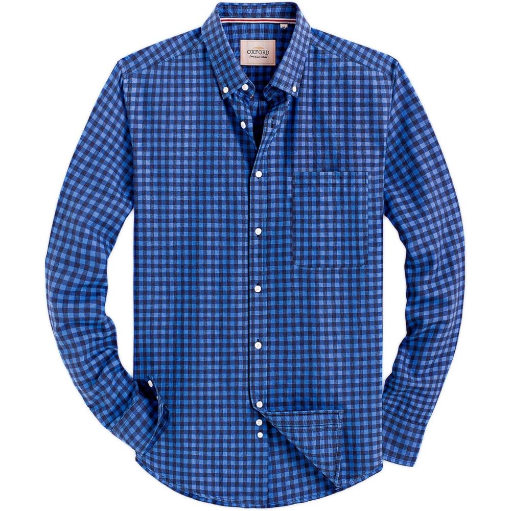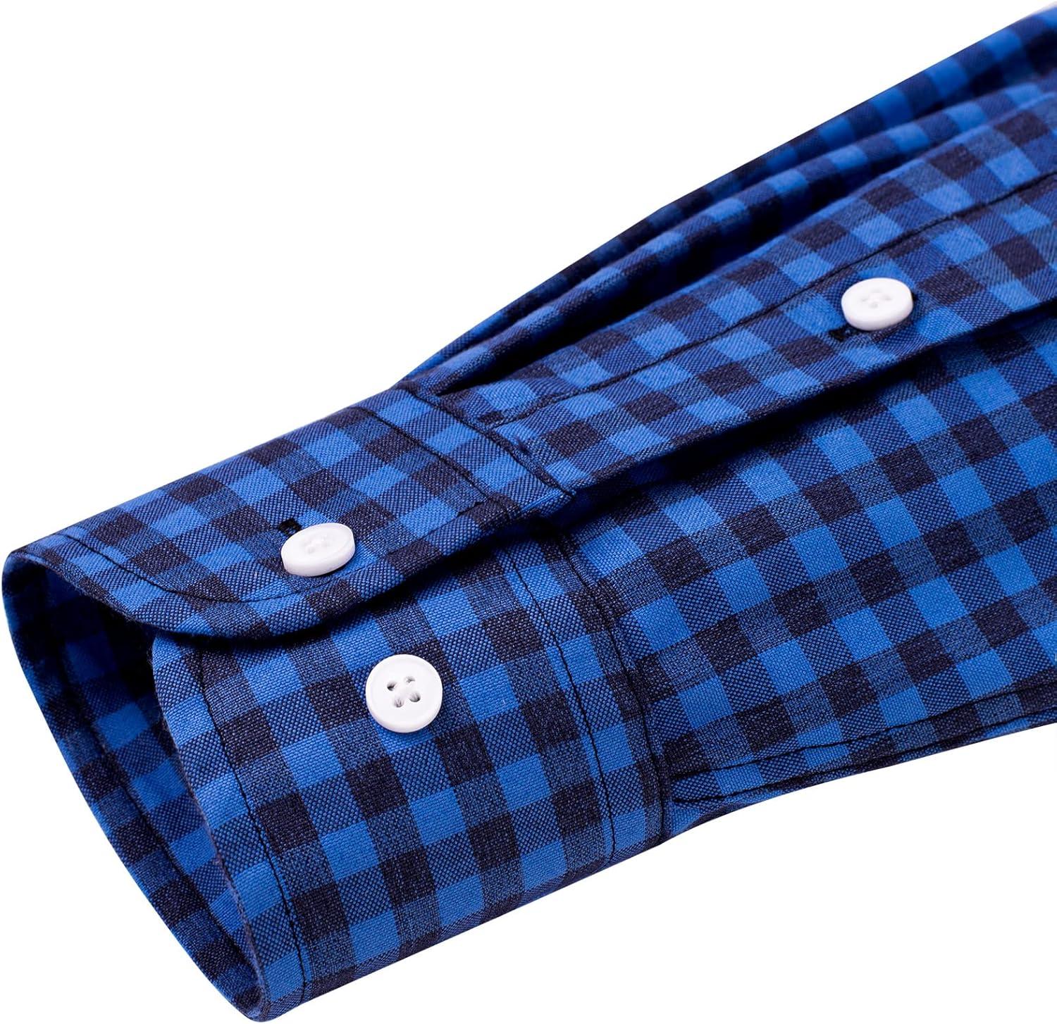 Alimens & Gentle Mens Solid Oxford Shirt Long Sleeve Dress Shirt Work Casual Button Down Shirts with Pocket(Plaid-blue Black)