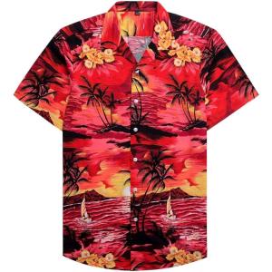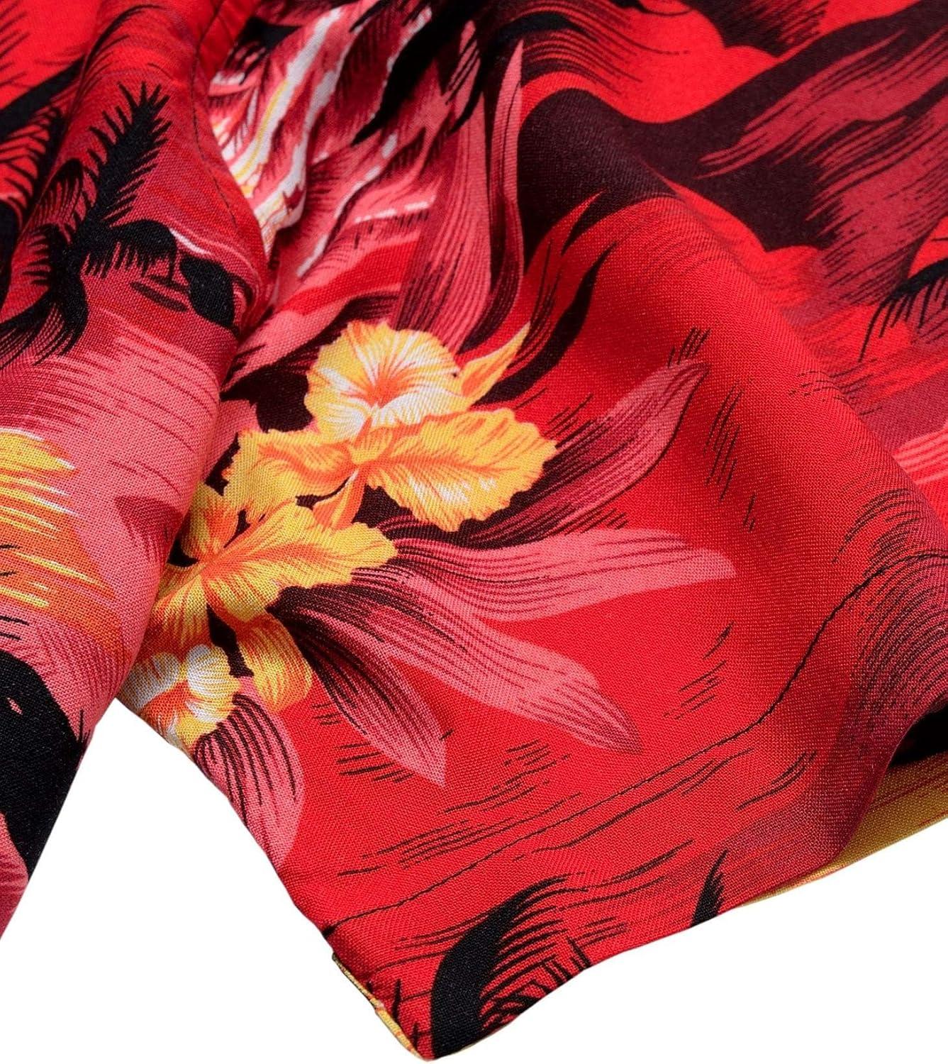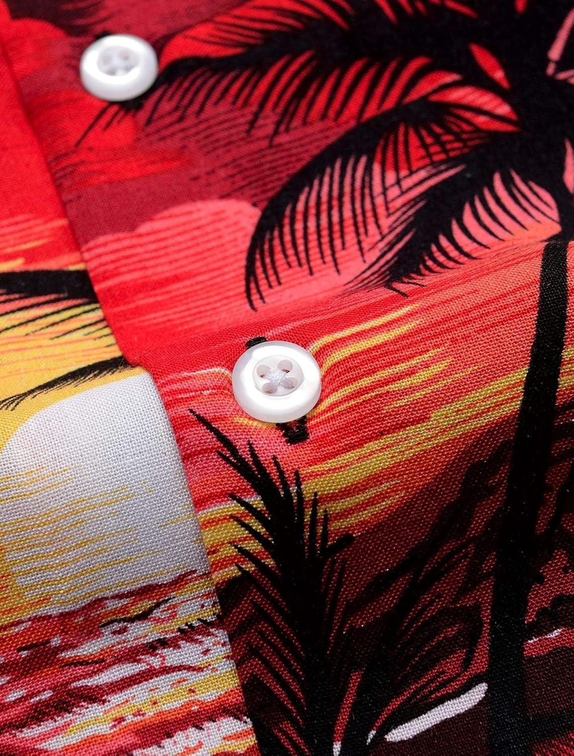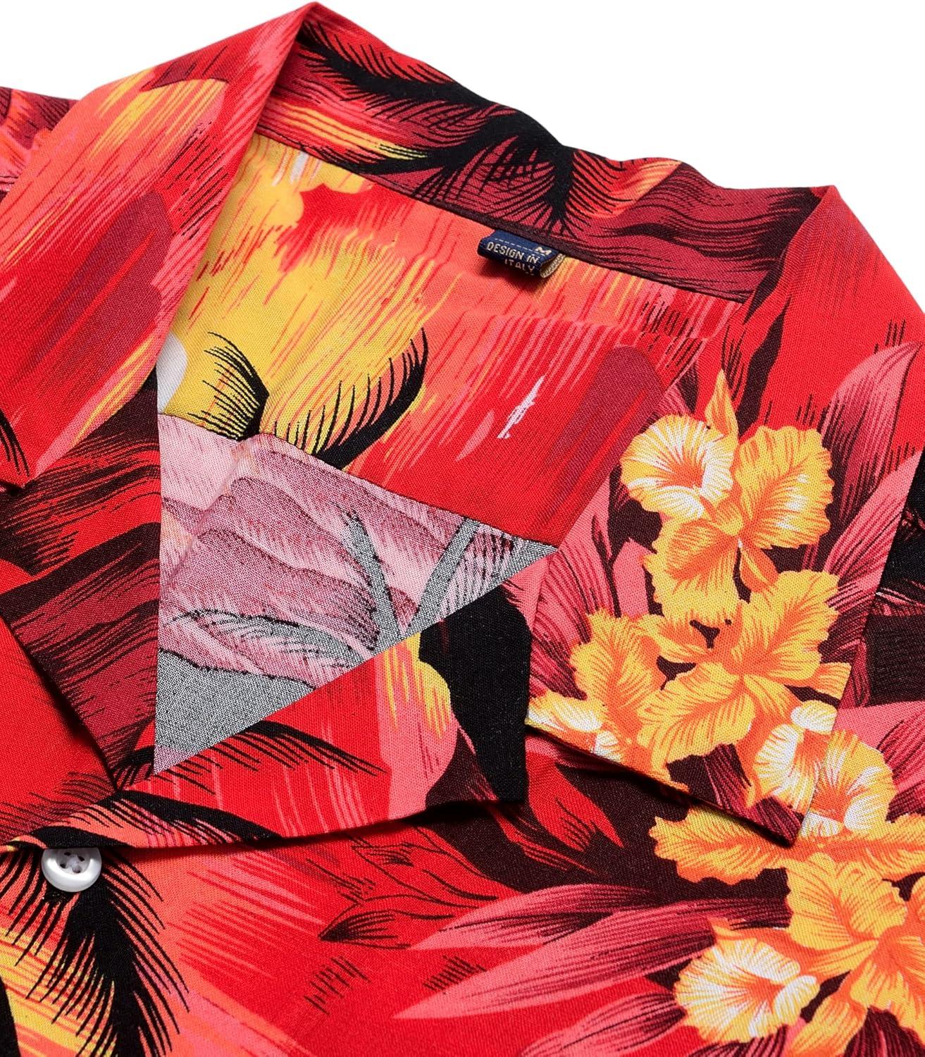 Alimens & Gentle Hawaiian Shirt for Men Summer Beach Casual Short Sleeve Button Down Shirts Printed Tropical Vacation Shirts(1609 Red)