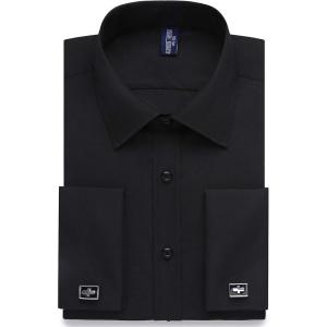 Alimens & Gentle French Cuff Regular Fit Dress Shirts (Cufflink Included)(Black)