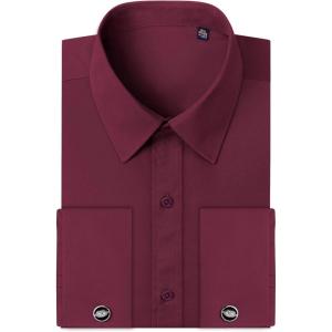 Alimens & Gentle French Cuff Regular Fit Dress Shirts (Cufflink Included)(Red)