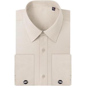 Alimens & Gentle French Cuff Regular Fit Dress Shirts (Cufflink Included)(Light Khaki)