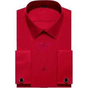 Alimens & Gentle French Cuff Regular Fit Dress Shirts (Cufflink Included)(Flex-red Flame)