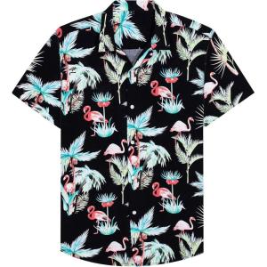 Alimens & Gentle Hawaiian Shirt for Men Summer Beach Casual Short Sleeve Button Down Shirts Printed Tropical Vacation Shirts(Black Green)