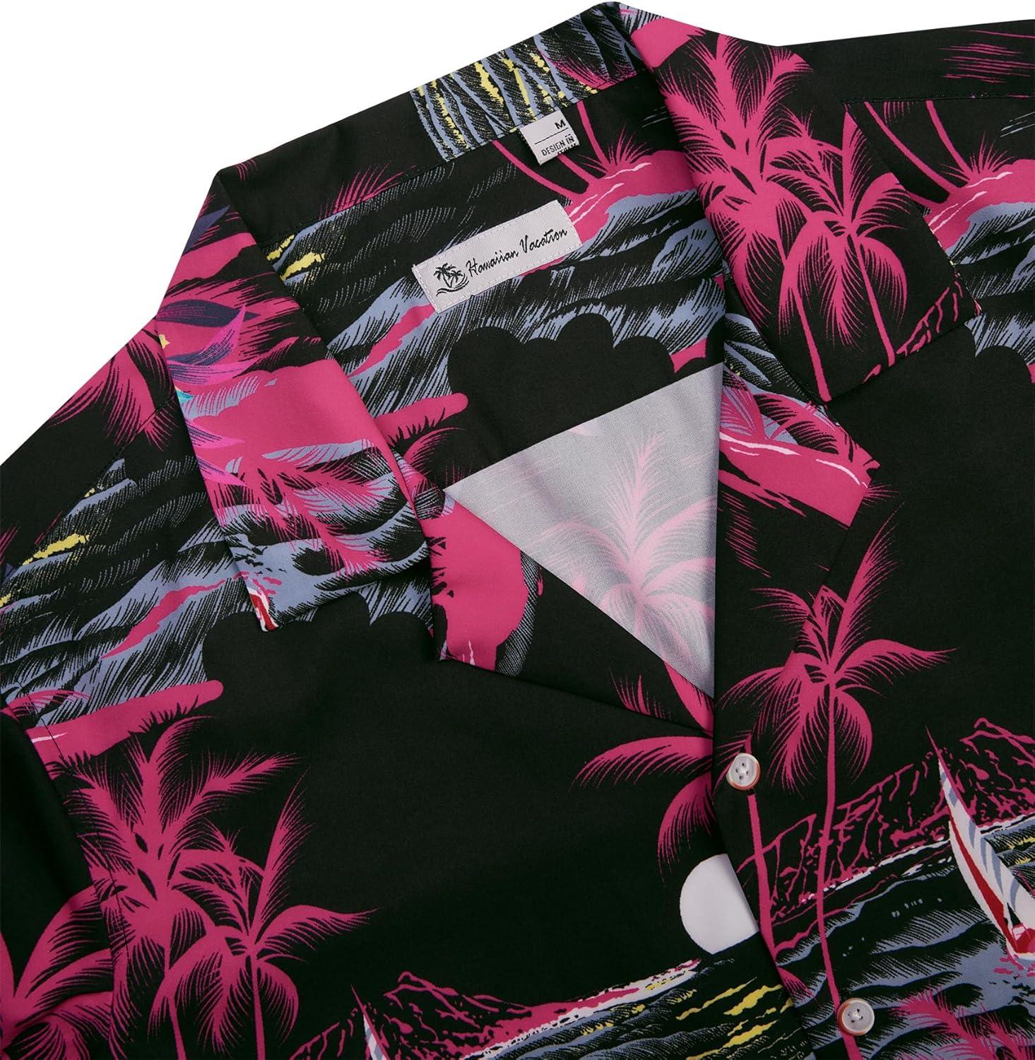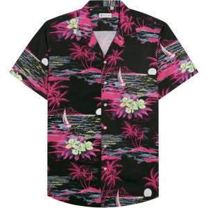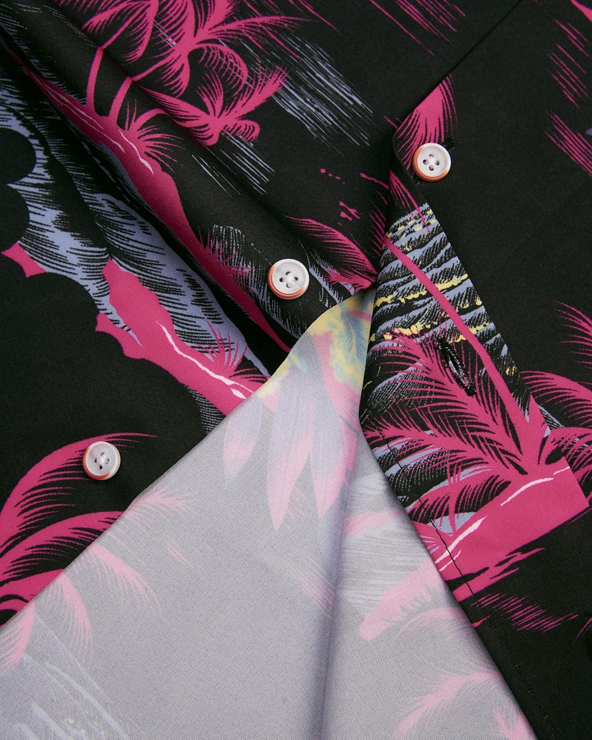 Alimens & Gentle Hawaiian Shirt for Men Summer Beach Casual Short Sleeve Button Down Shirts Printed Tropical Vacation Shirts(Rosy Black Beach)