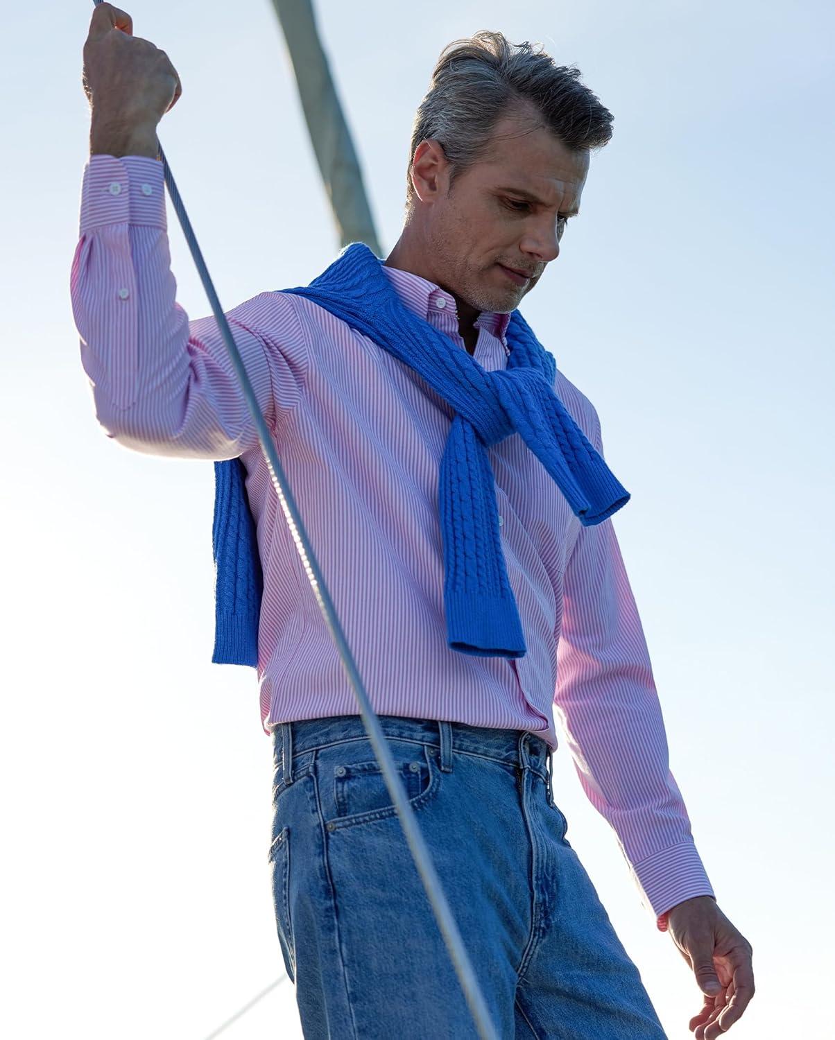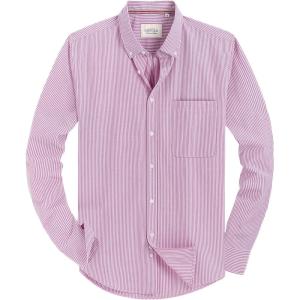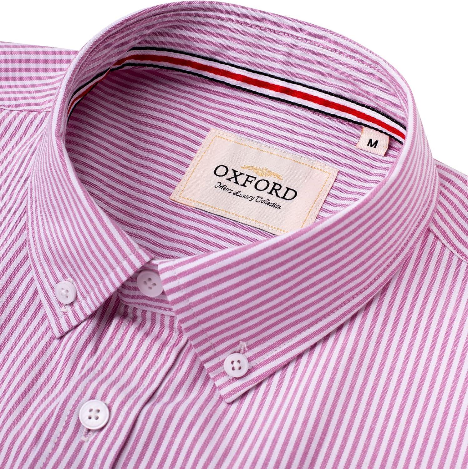 • Alimens & Gentle Mens Solid Oxford Shirt Long Sleeve Dress Shirt Work Casual Button Down Shirts with Pocket(Striped-pink)