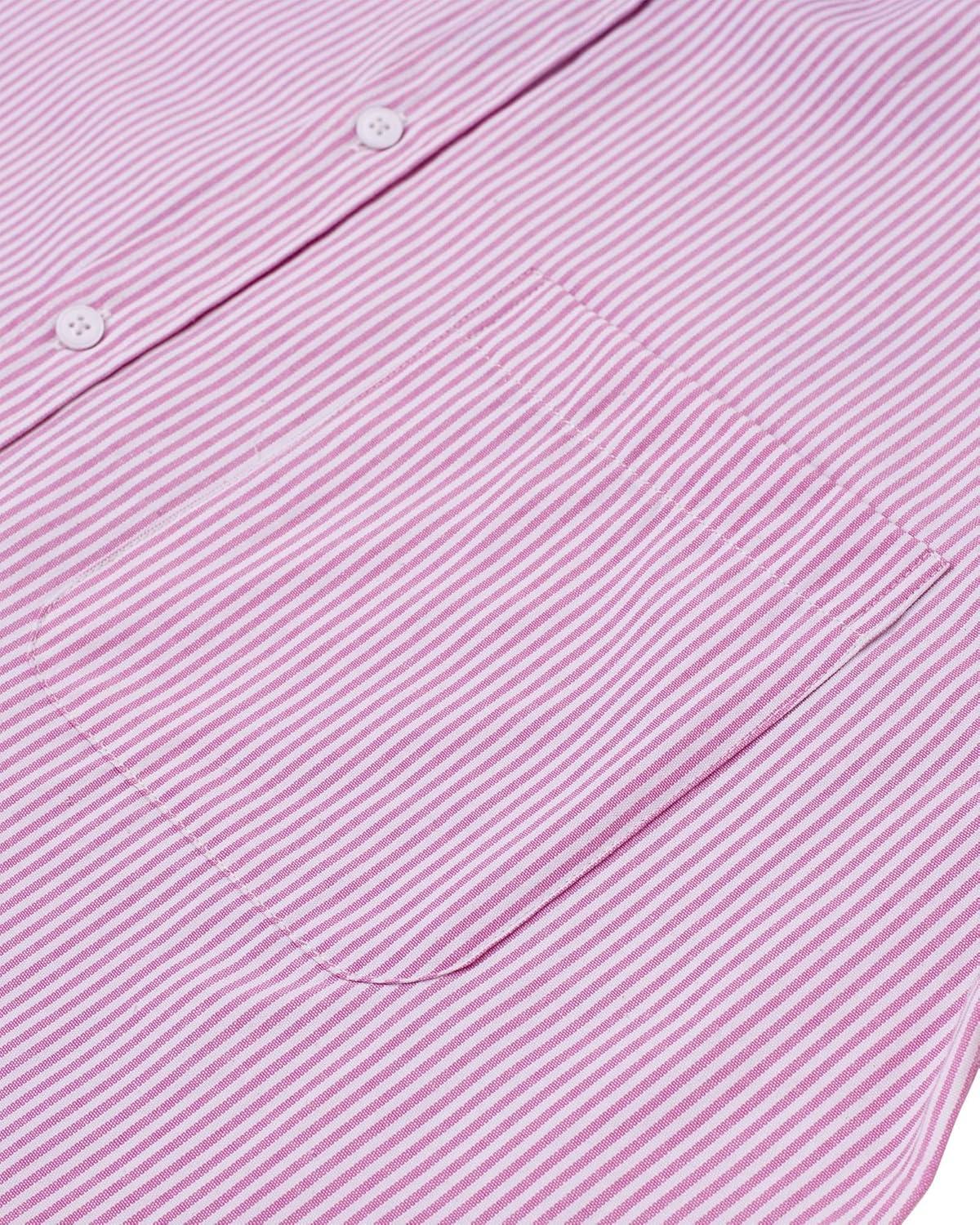 Alimens & Gentle Mens Solid Oxford Shirt Long Sleeve Dress Shirt Work Casual Button Down Shirts with Pocket(Striped-pink)