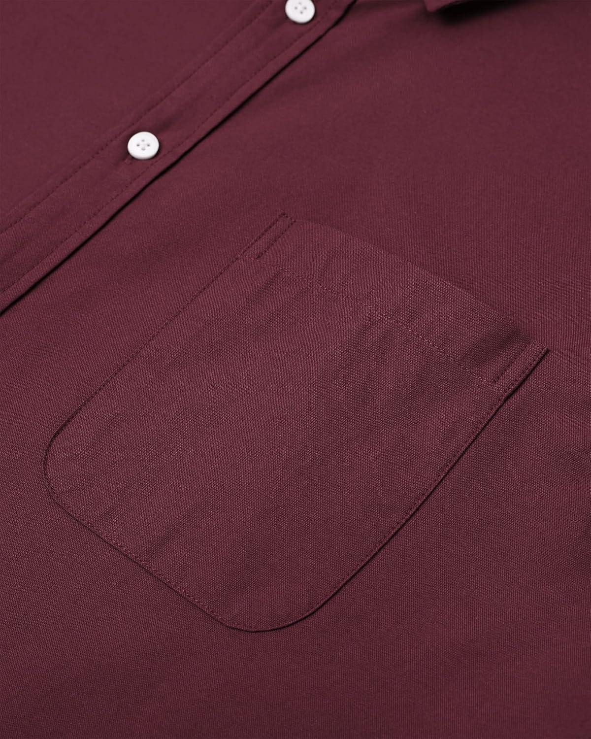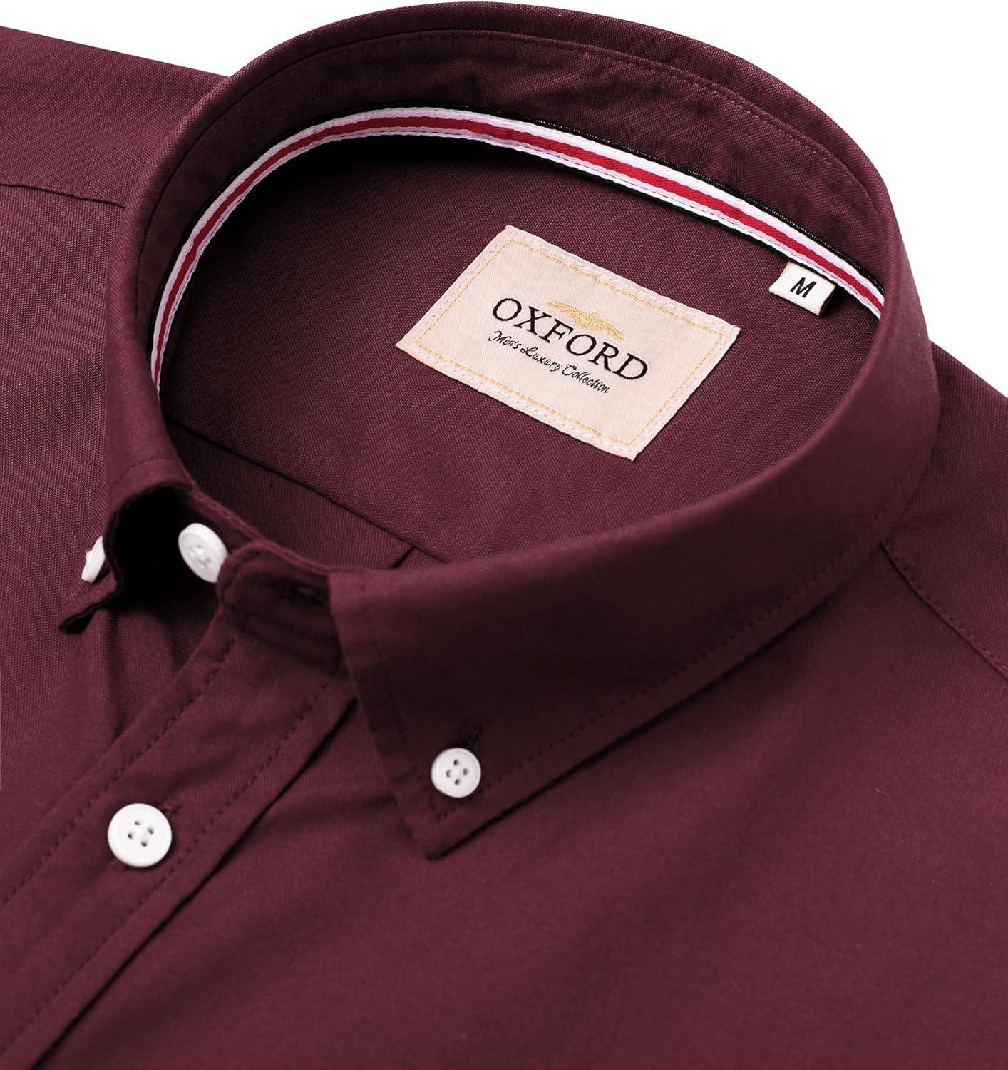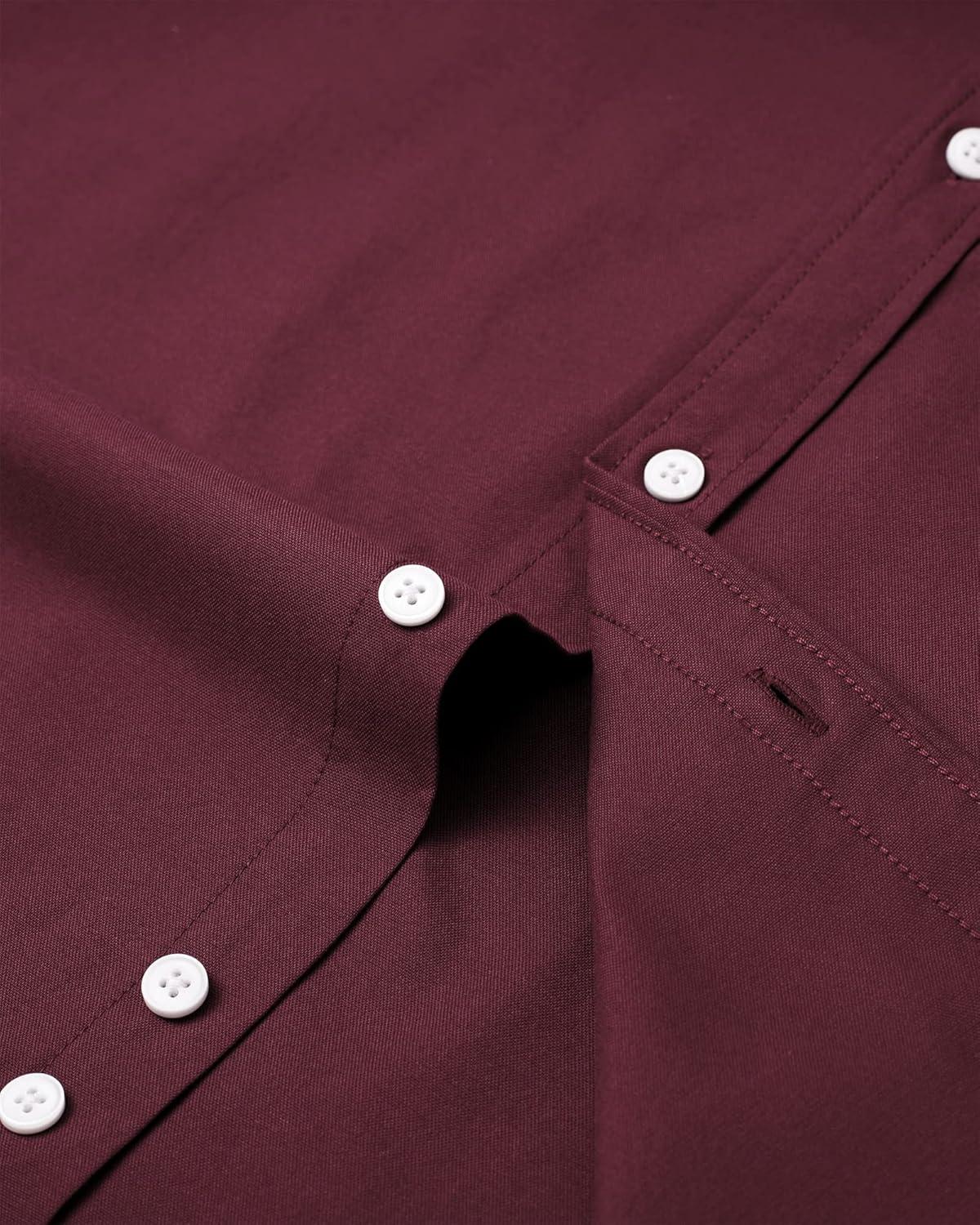 • Alimens & Gentle Mens Solid Oxford Shirt Long Sleeve Dress Shirt Work Casual Button Down Shirts with Pocket(Wine Red)