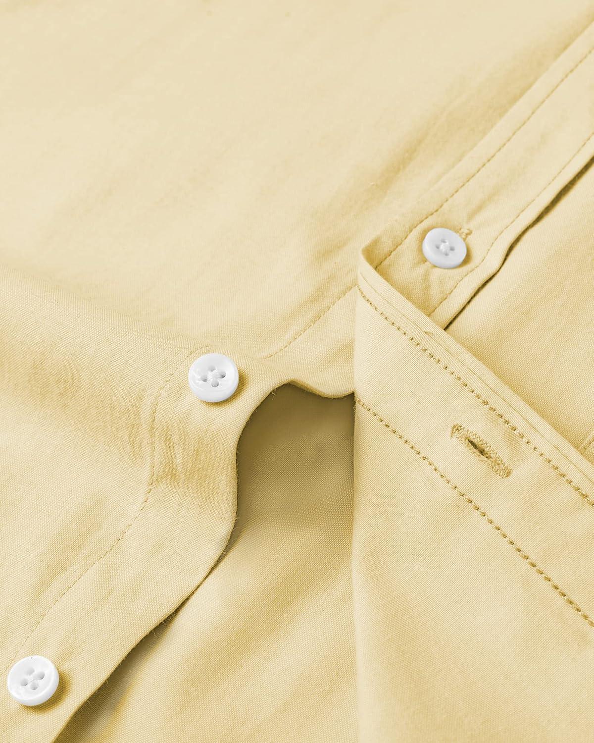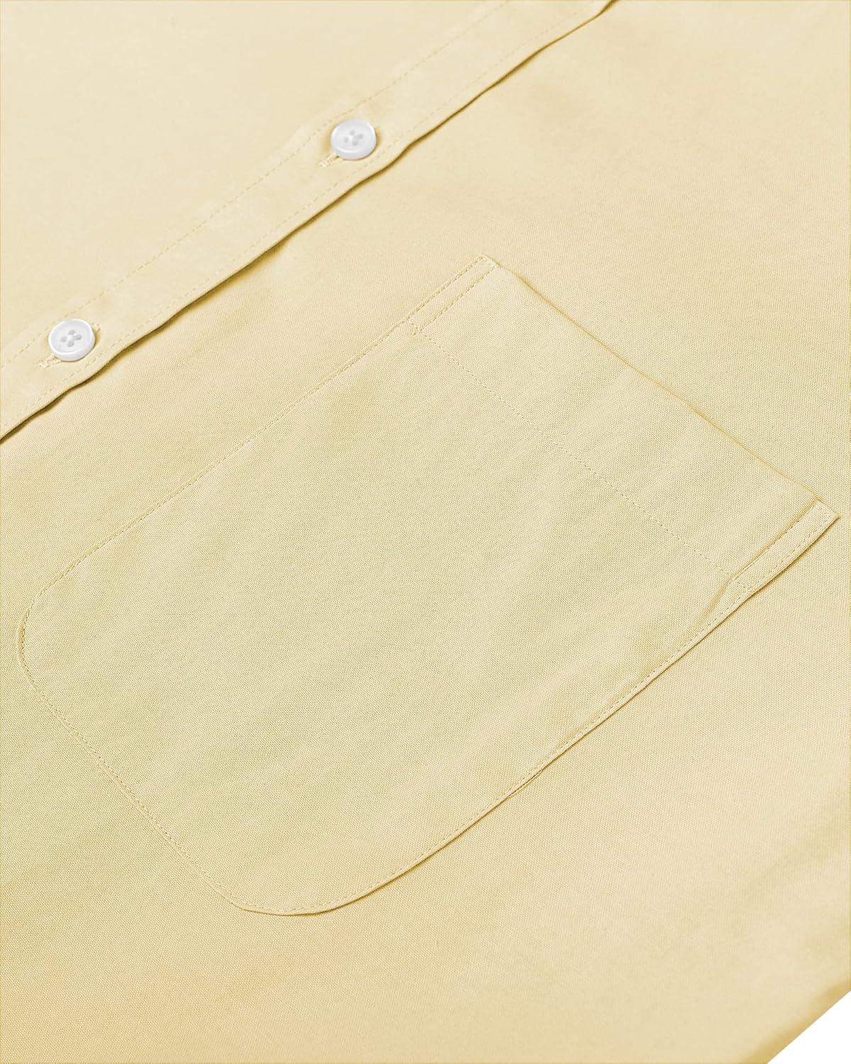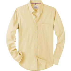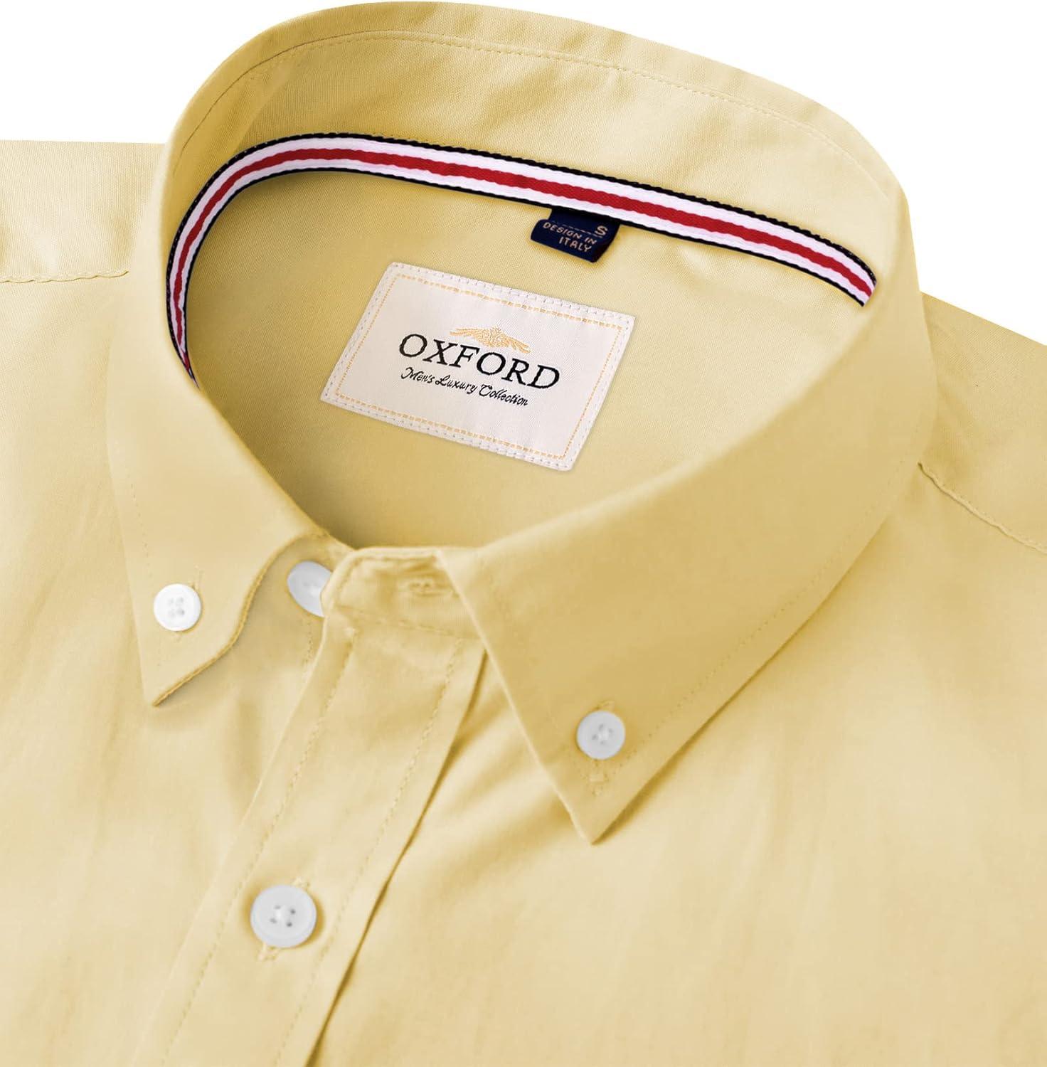 • Alimens & Gentle Mens Solid Oxford Shirt Long Sleeve Dress Shirt Work Casual Button Down Shirts with Pocket(Yellow)