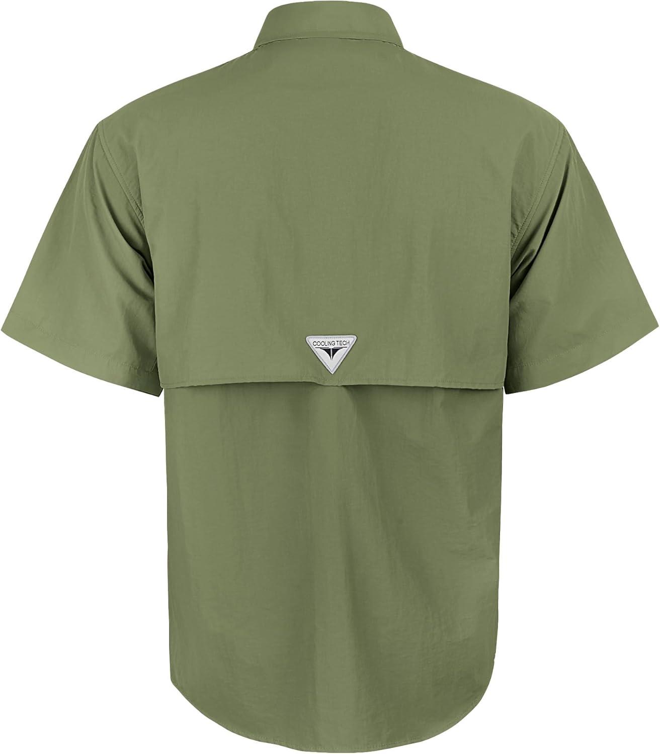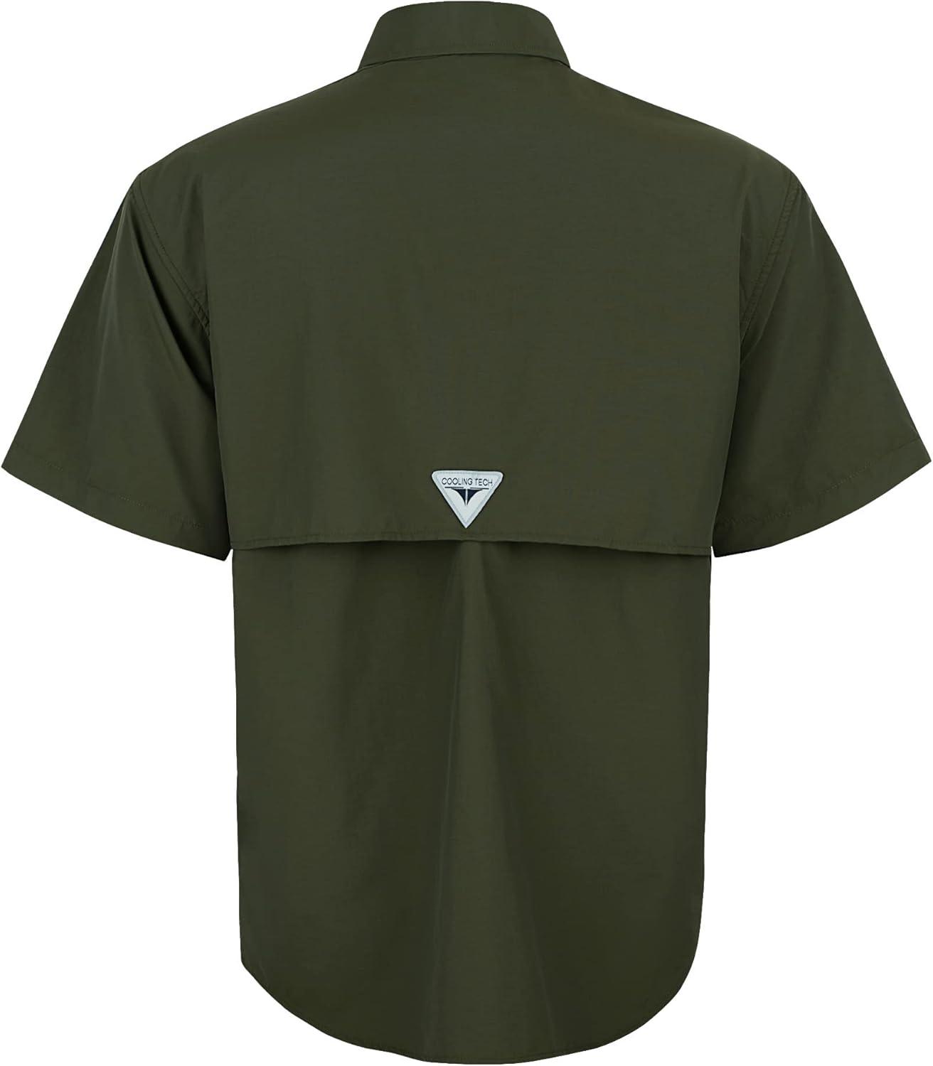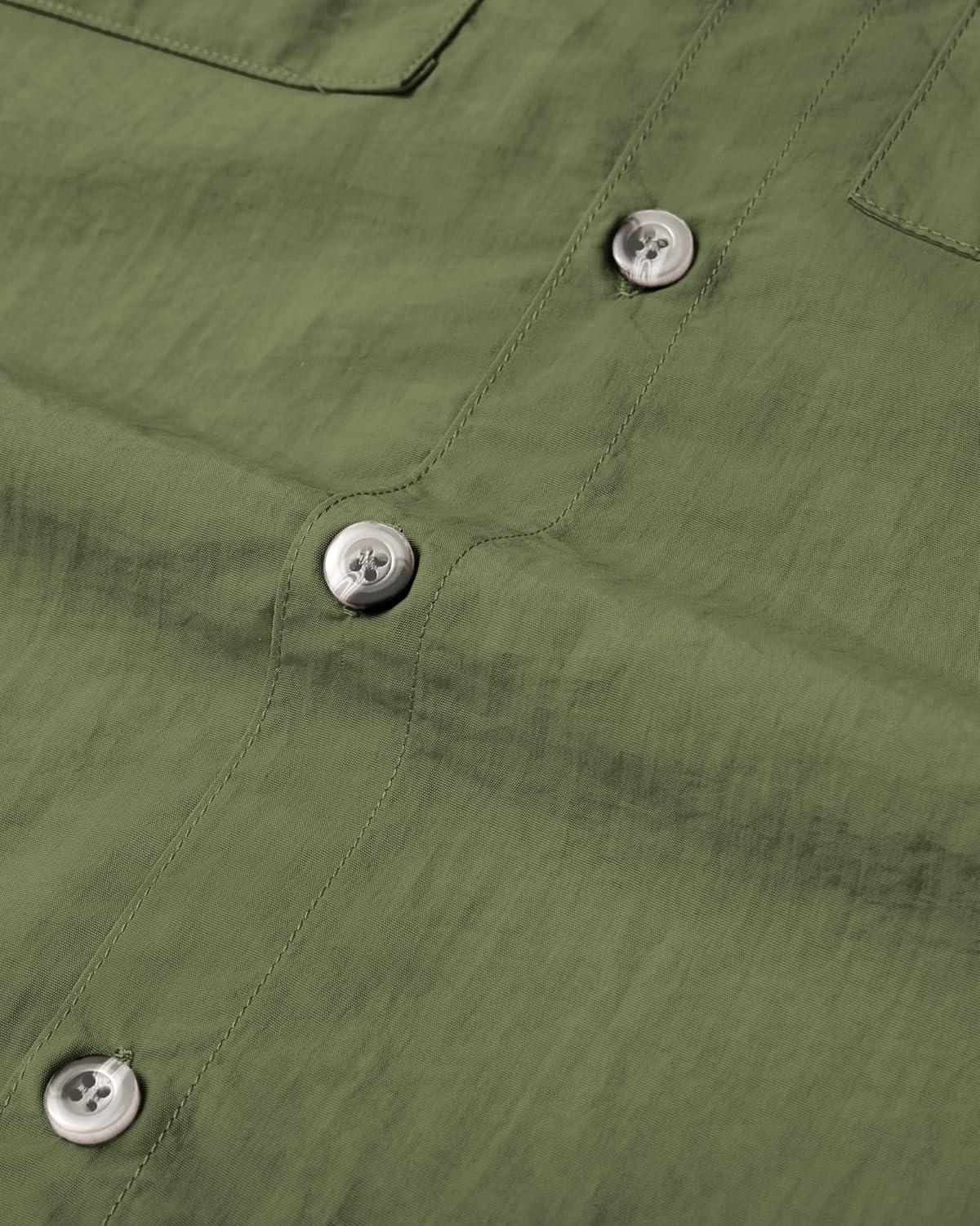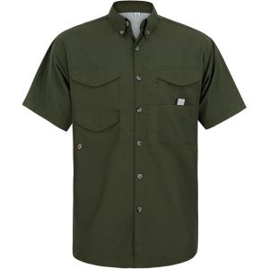 • Alimens & Gentle Short Sleeve Fishing Shirt Wicking Fabric Sun Protection Casual Button Down Shirts(Army Green)