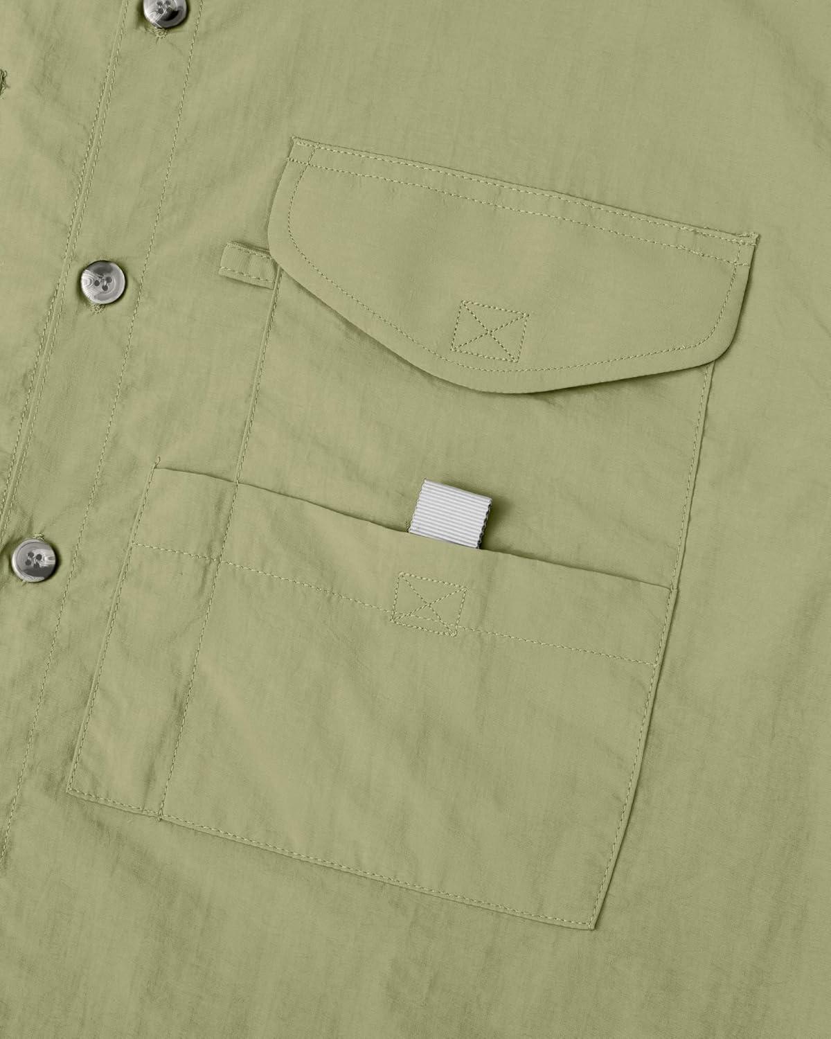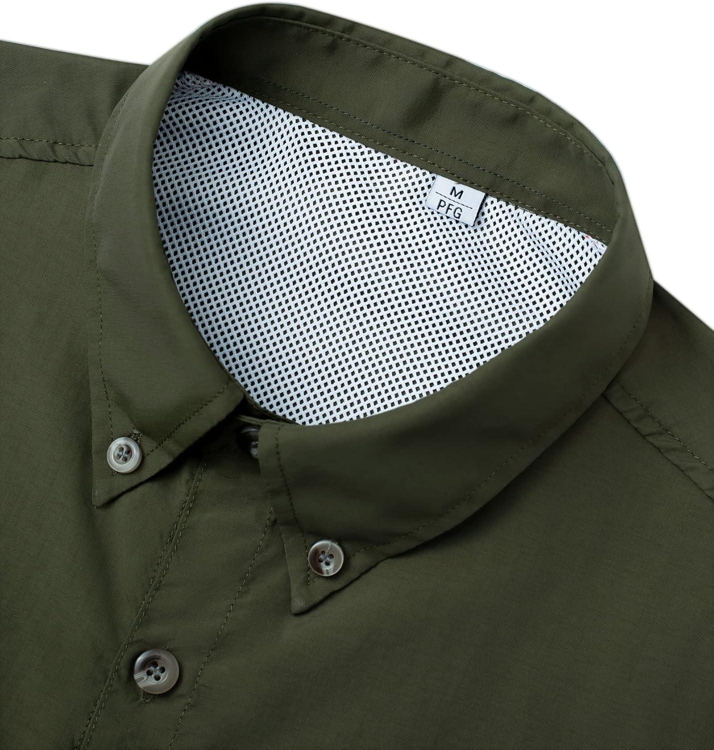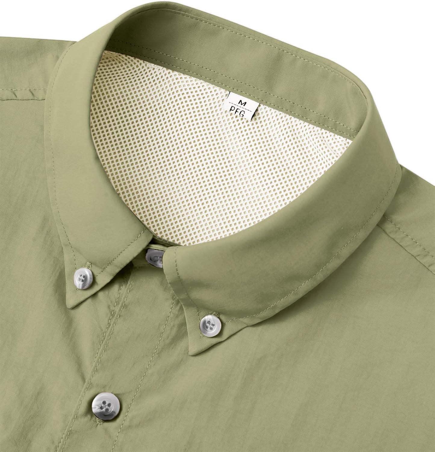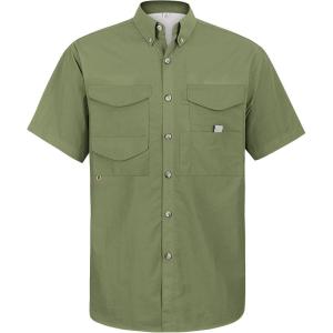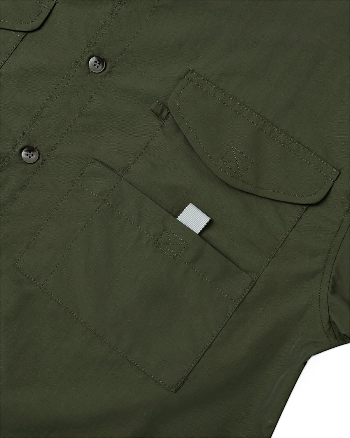 • Alimens & Gentle Short Sleeve Fishing Shirt Wicking Fabric Sun Protection Casual Button Down Shirts(Army Green)