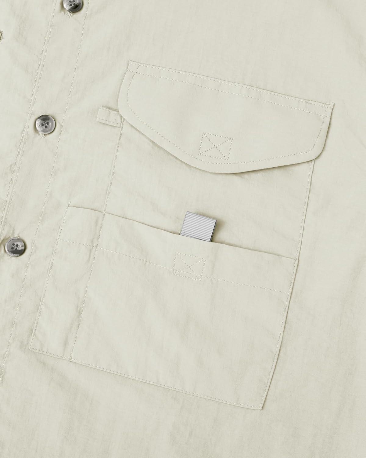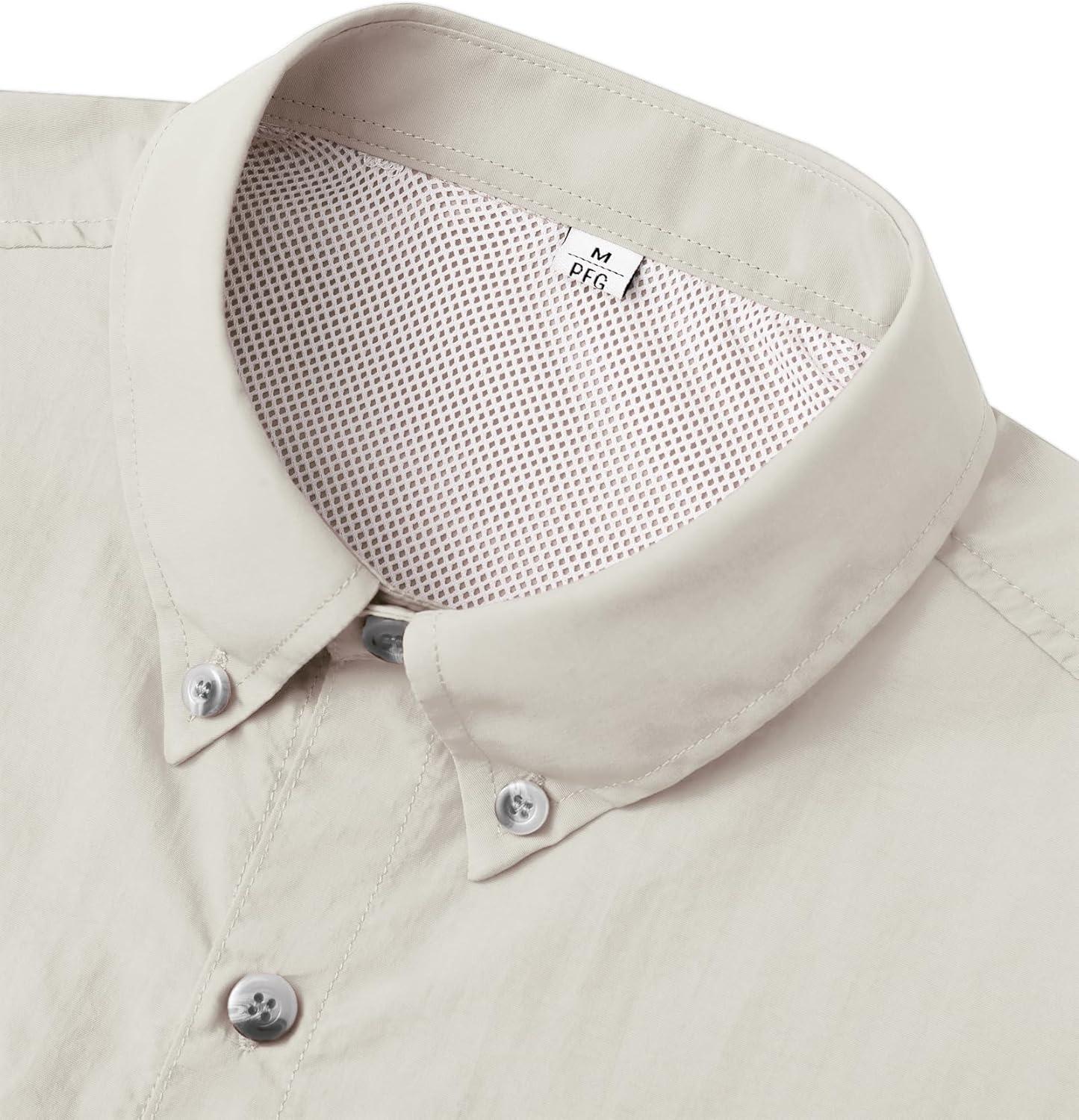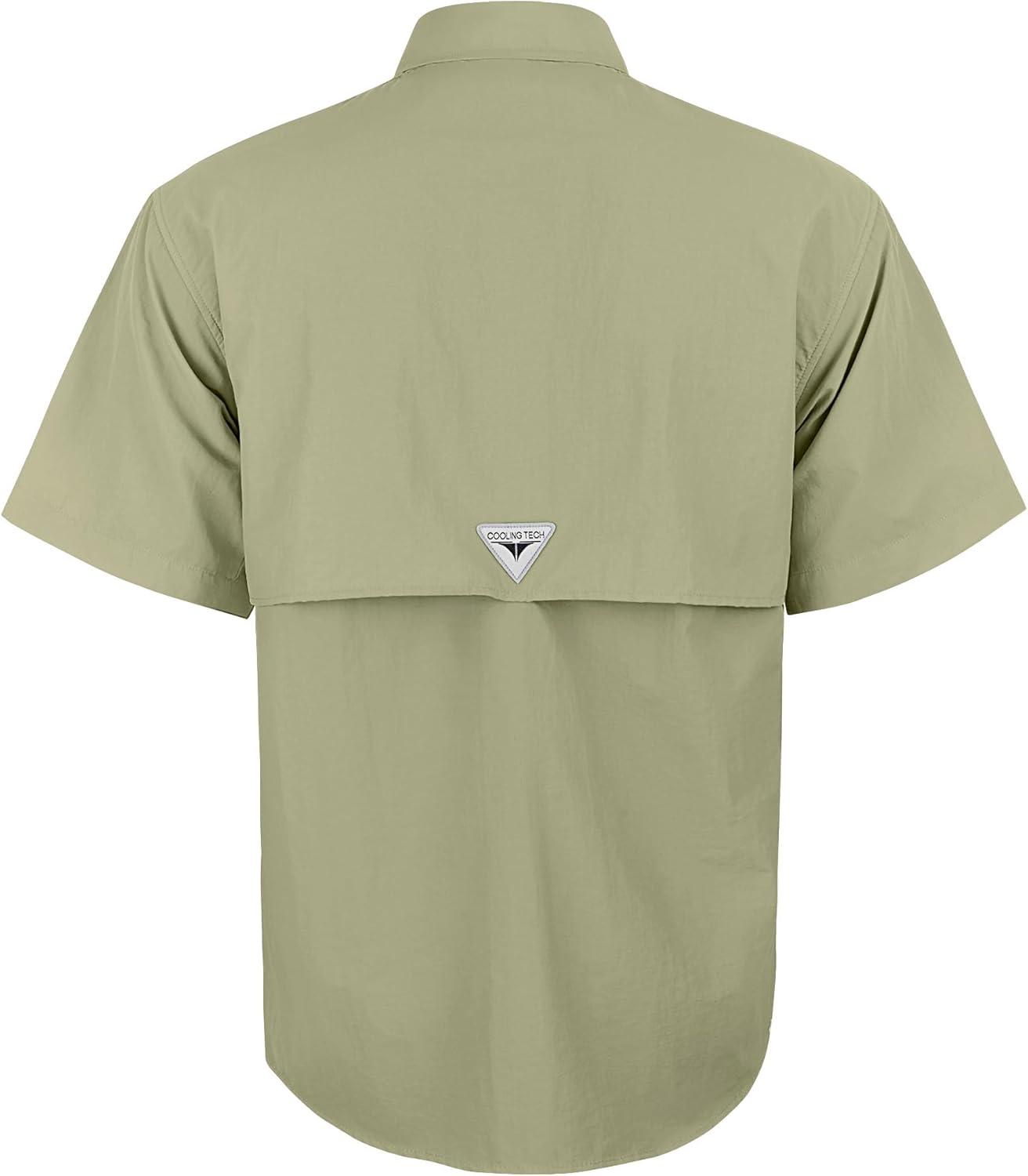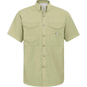 • Alimens & Gentle Short Sleeve Fishing Shirt Wicking Fabric Sun Protection Casual Button Down Shirts(Beige)